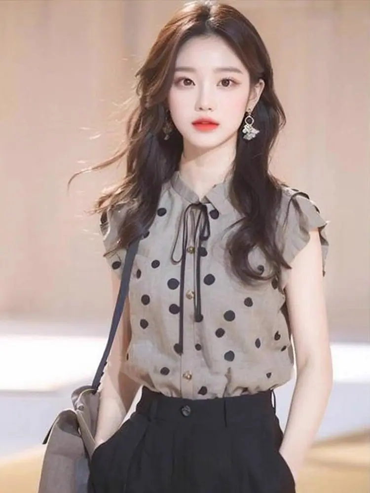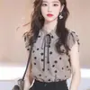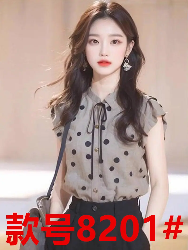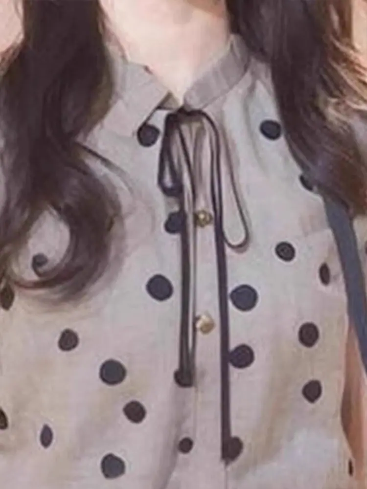 Camisa de Manga Corta con Estampado de Lunares de Ola Estilo Nacional Chino Nuevo para Mujer, Diseño Nicho de Verano, Hermosa Camisa Pequeña Top