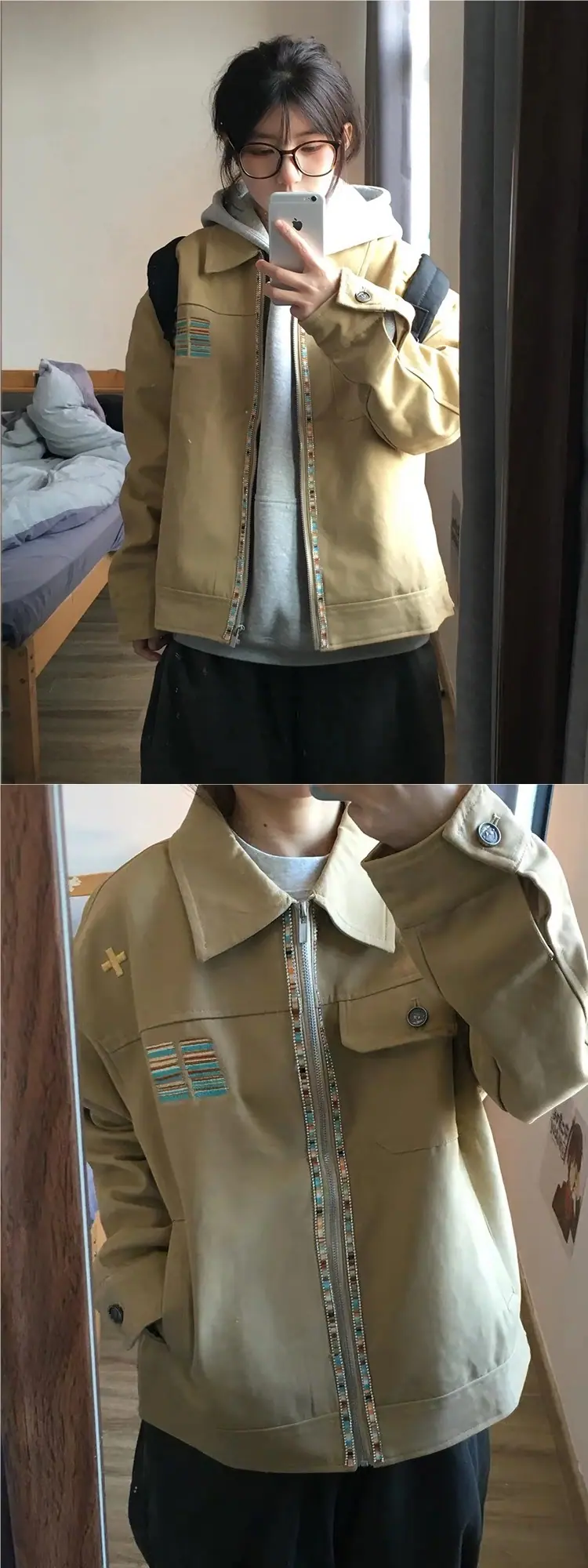 2025 Principios de Otoño Nuevo Chaqueta Holgada Retro Corta con Sentido del Diseño Nicho para Hombre y Mujer Primavera Ropa de Trabajo
