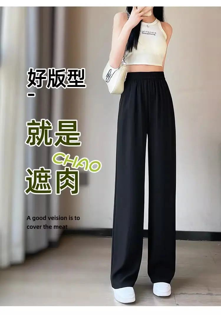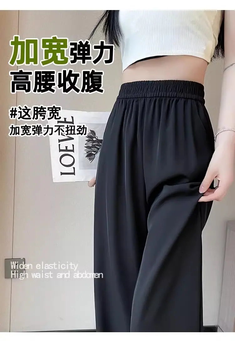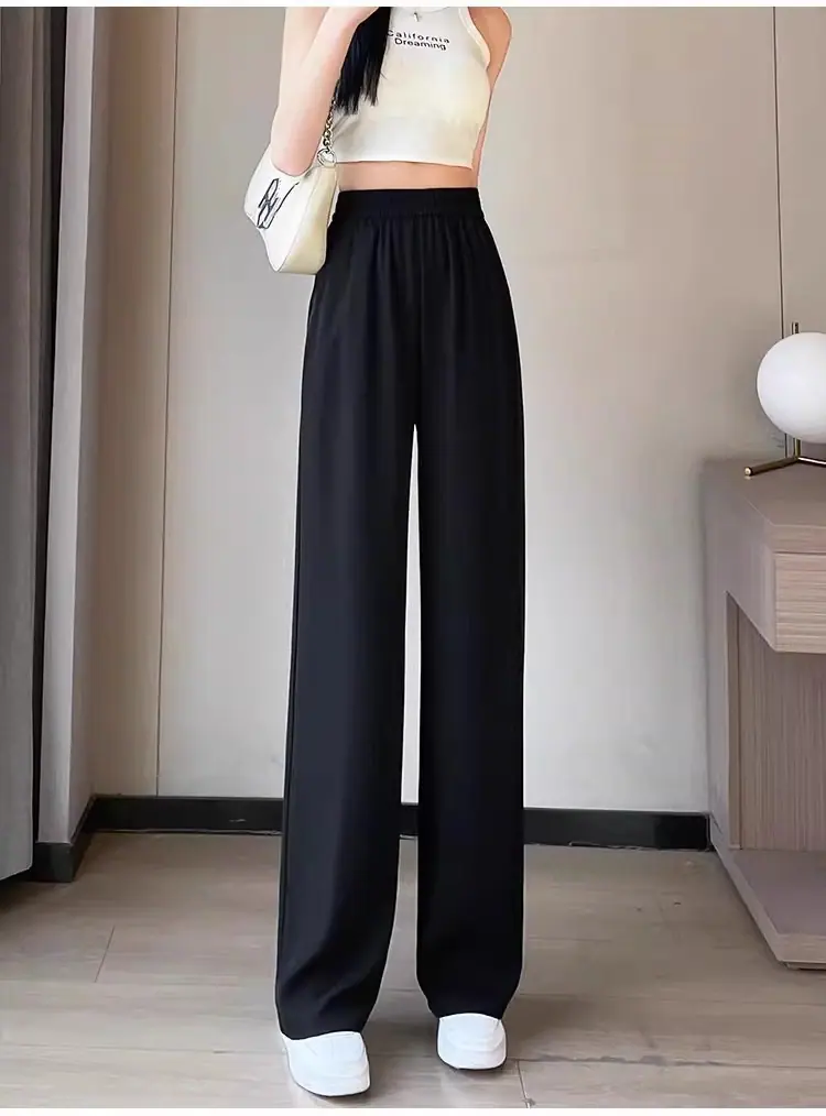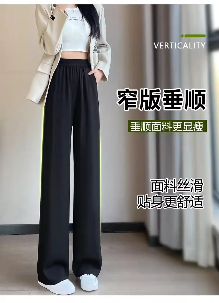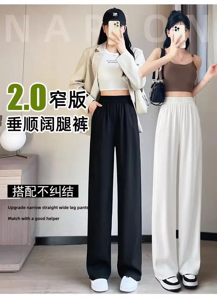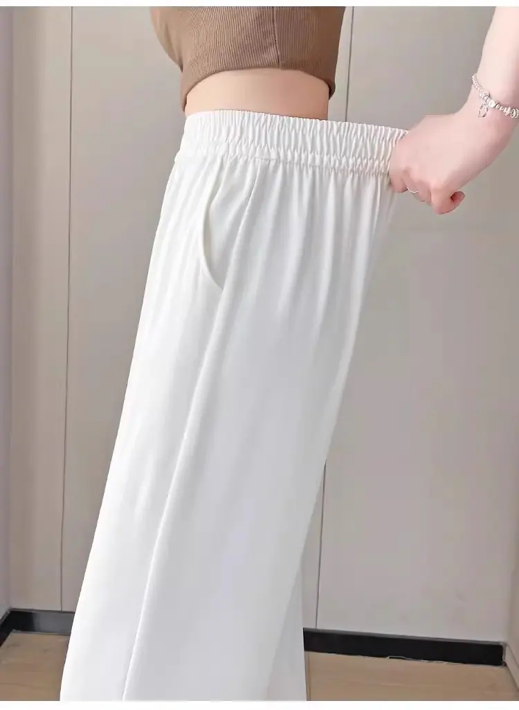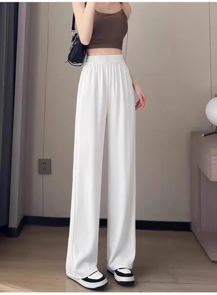 Pantalones de Pierna Ancha Estrechos de Seda Helada para Mujer Verano Delgados 2025 Nuevos Pantalones Sueltos Casuales Cortos Rectos