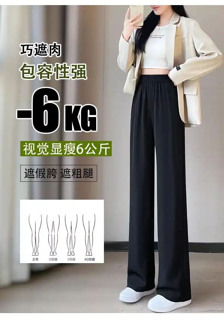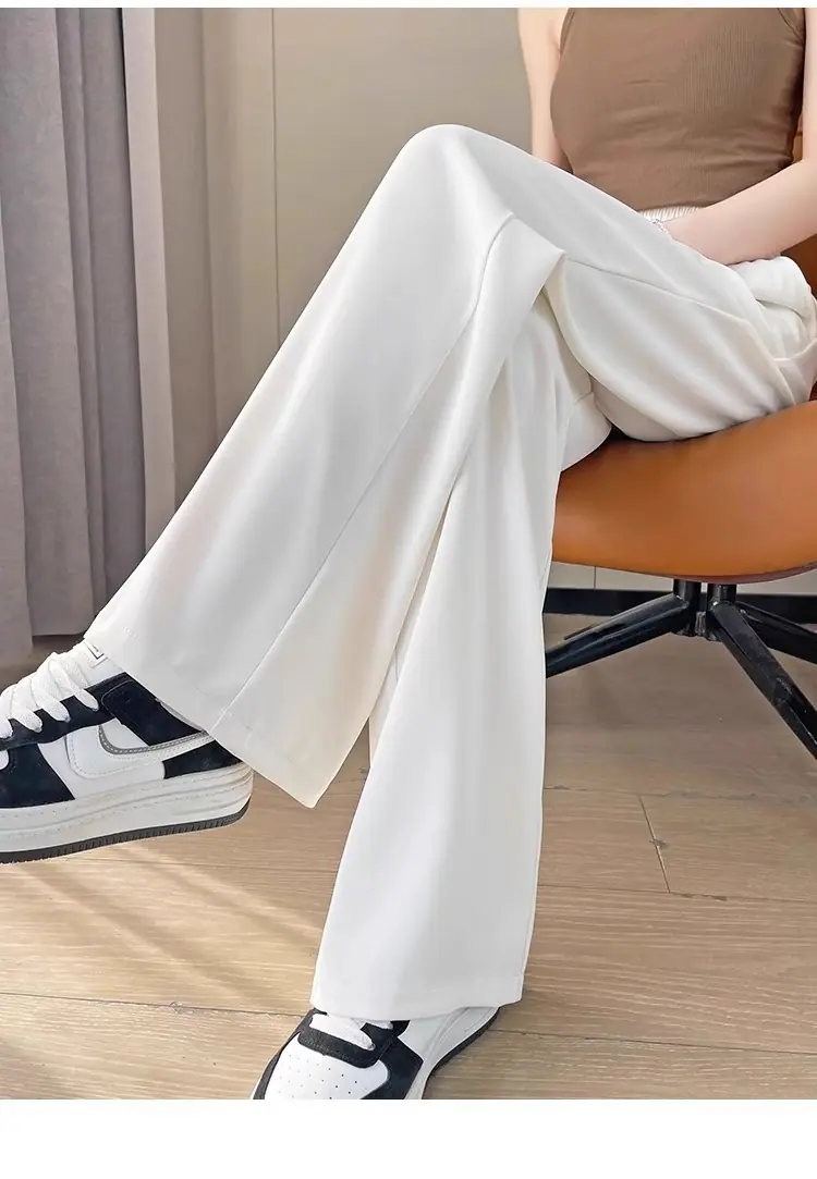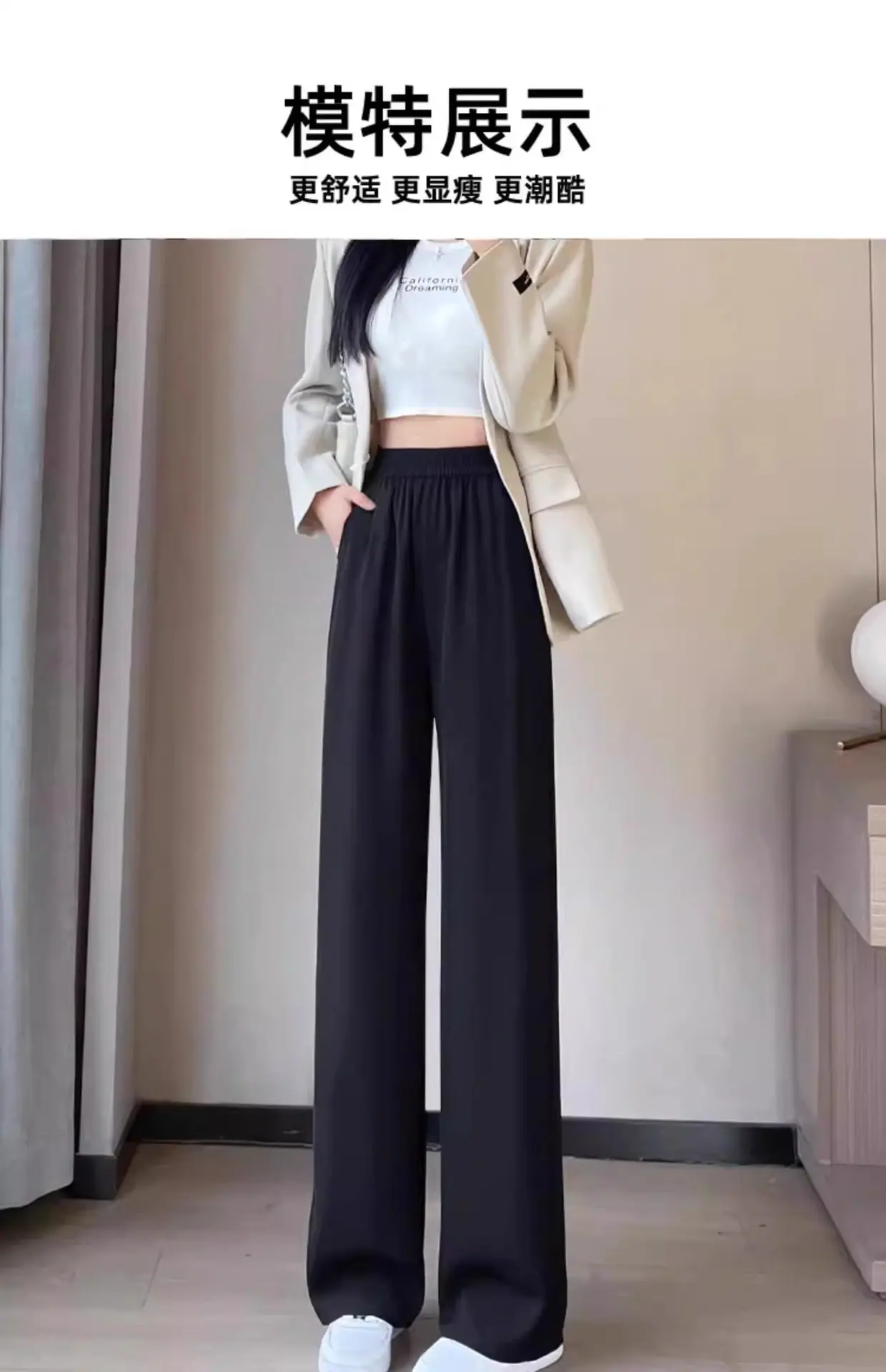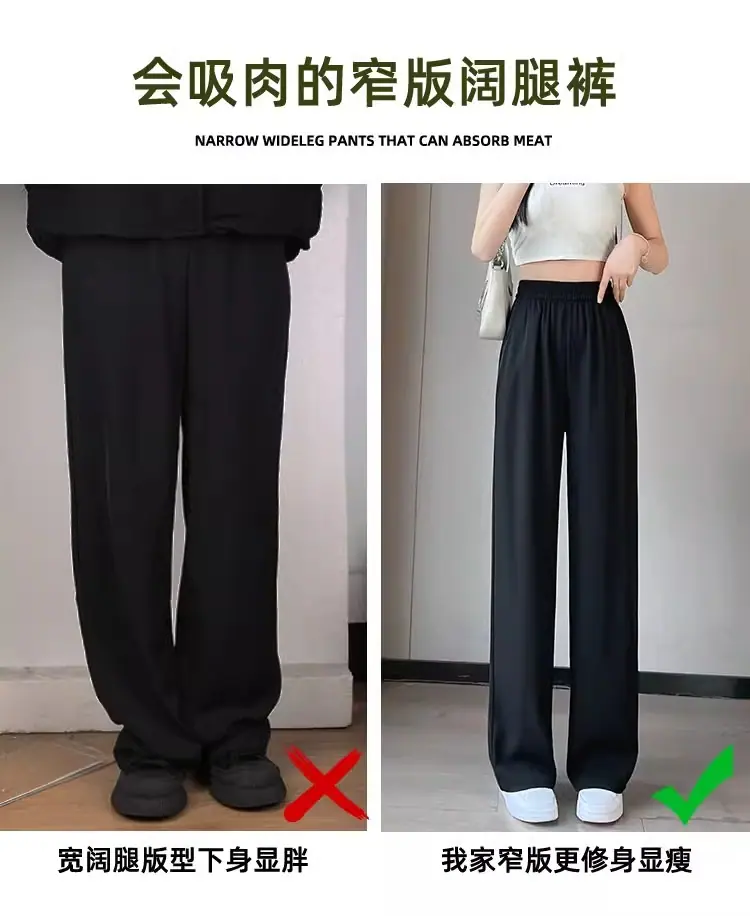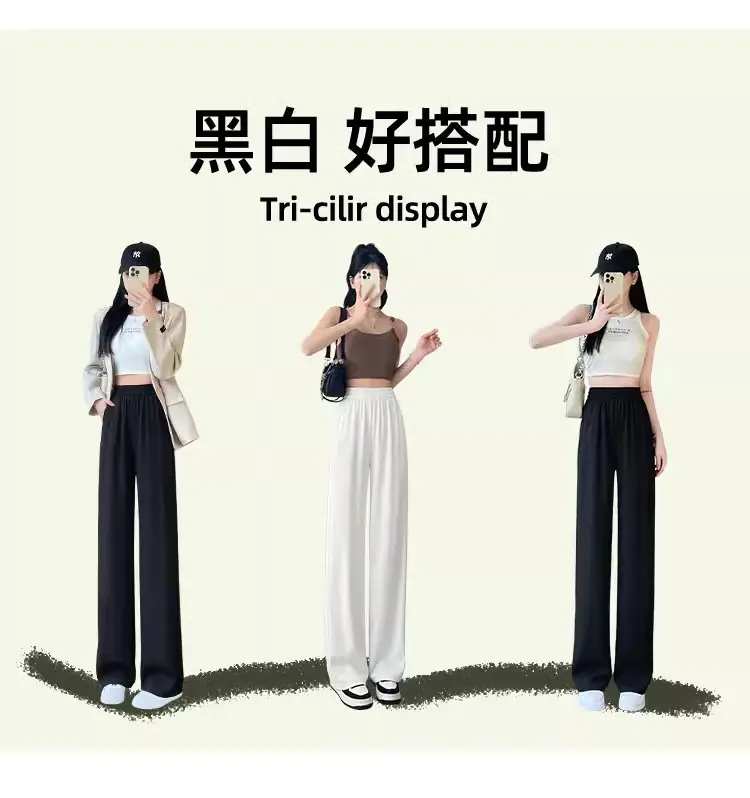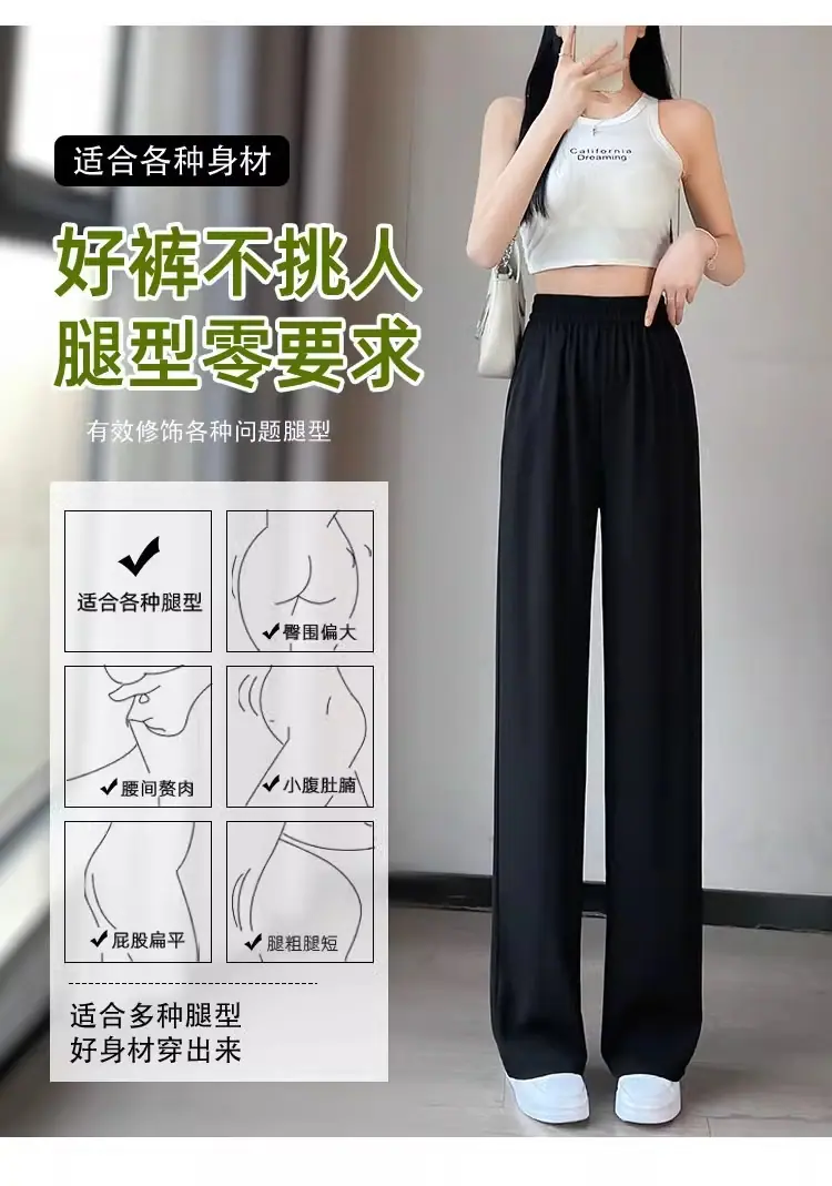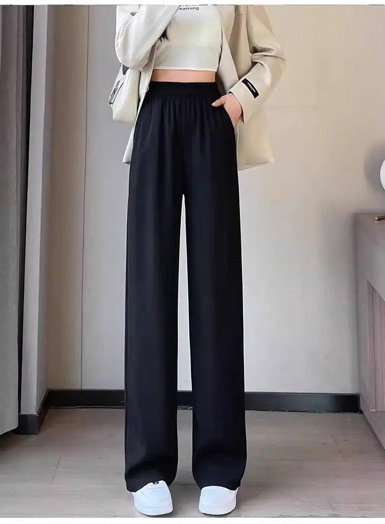 Pantalones de Pierna Ancha Estrechos de Seda Helada para Mujer Verano Delgados 2025 Nuevos Pantalones Sueltos Casuales Cortos Rectos