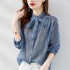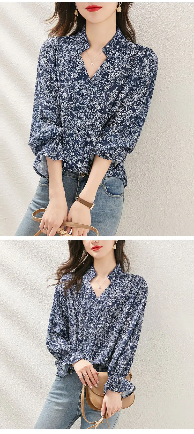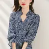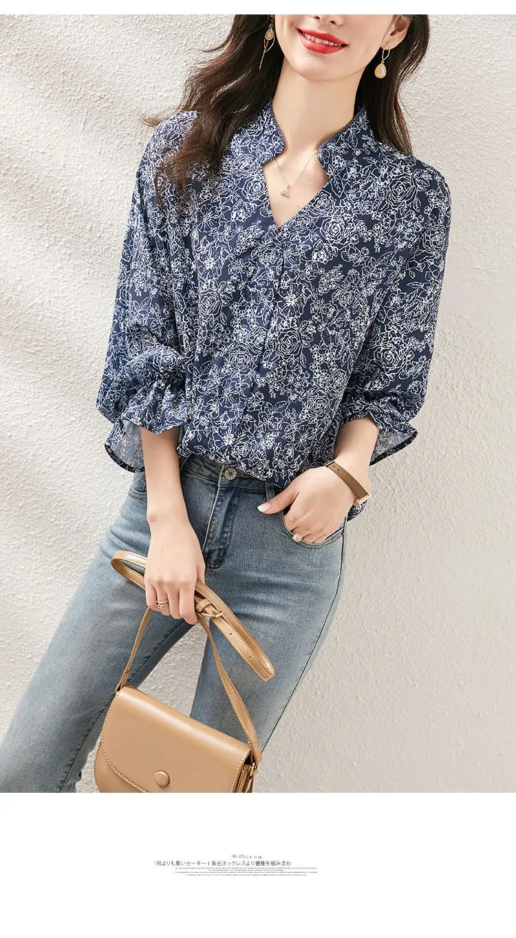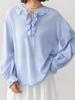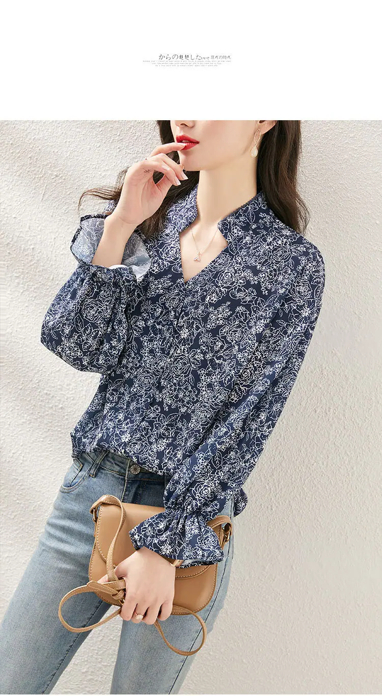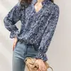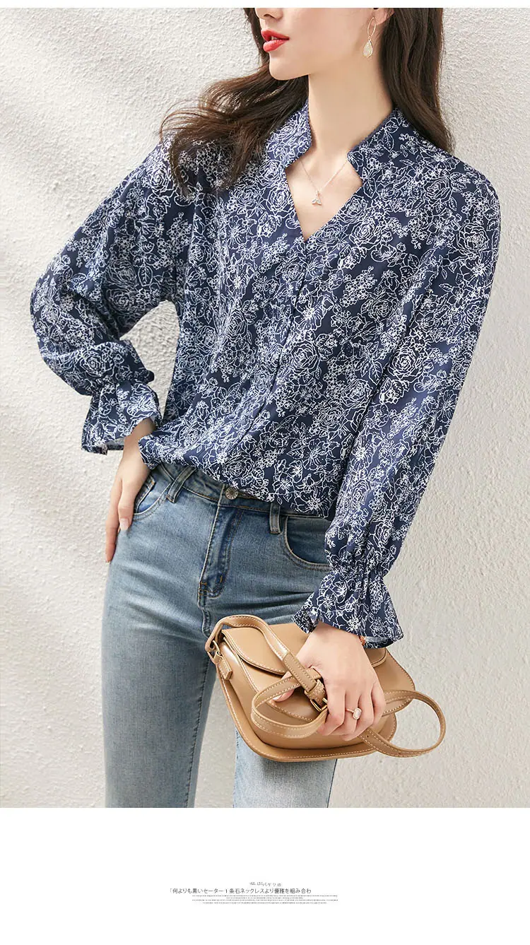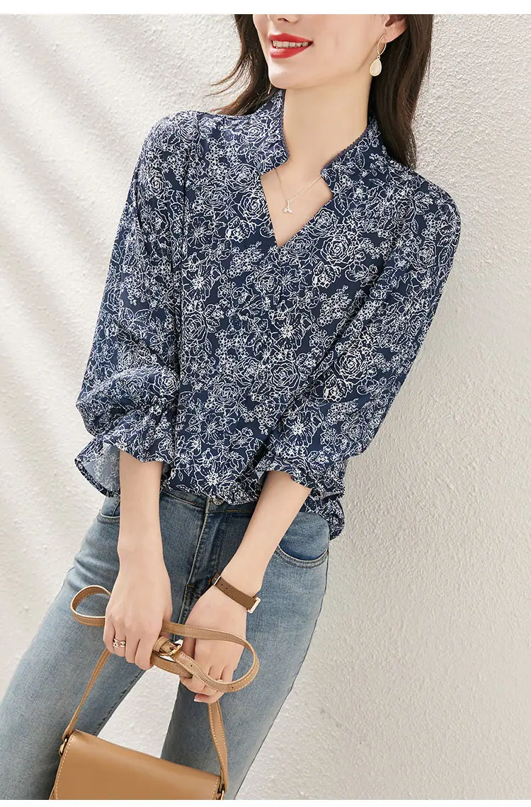 Camisa de manga larga para mujer de tiro real otoño 2025 nueva camisa de moda estilo otoñal temperamento holgada cuello en V manga farol top