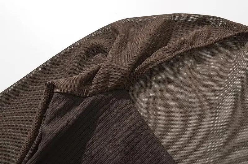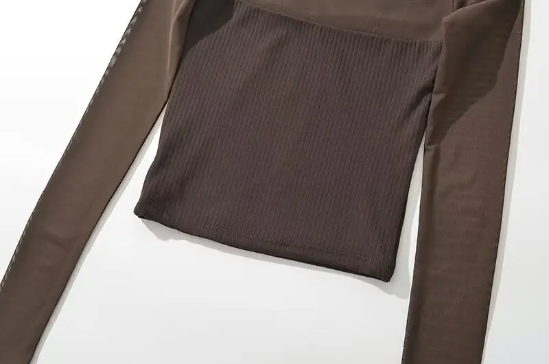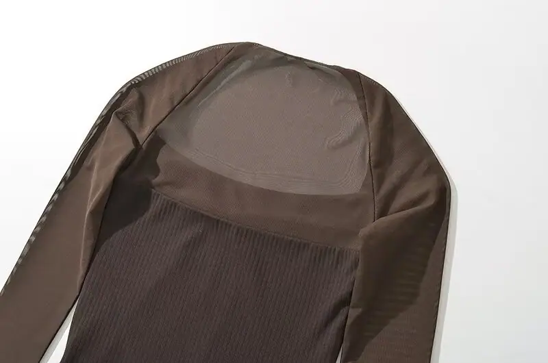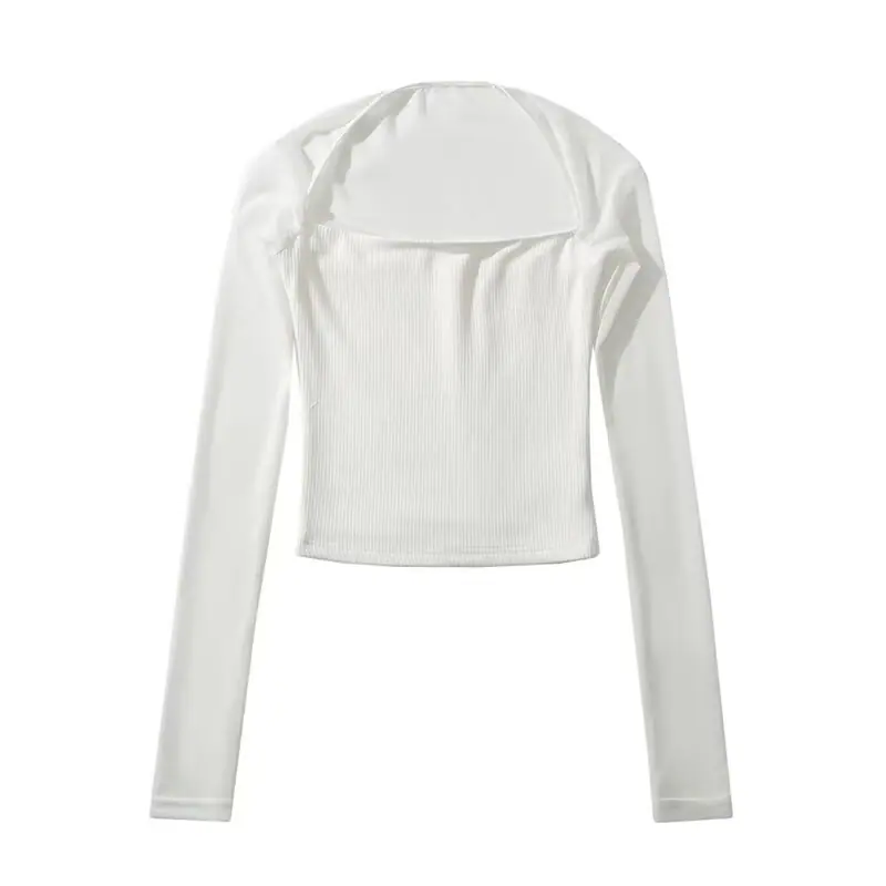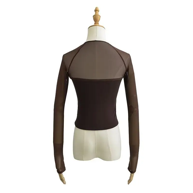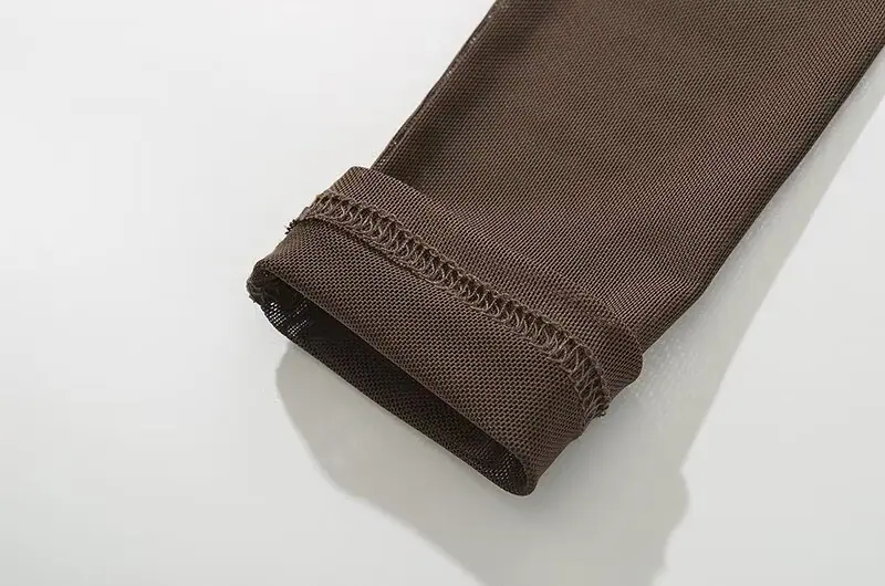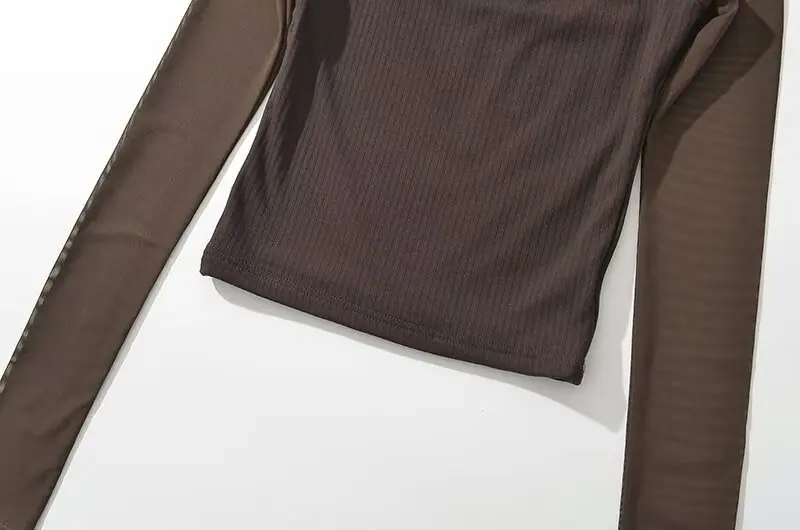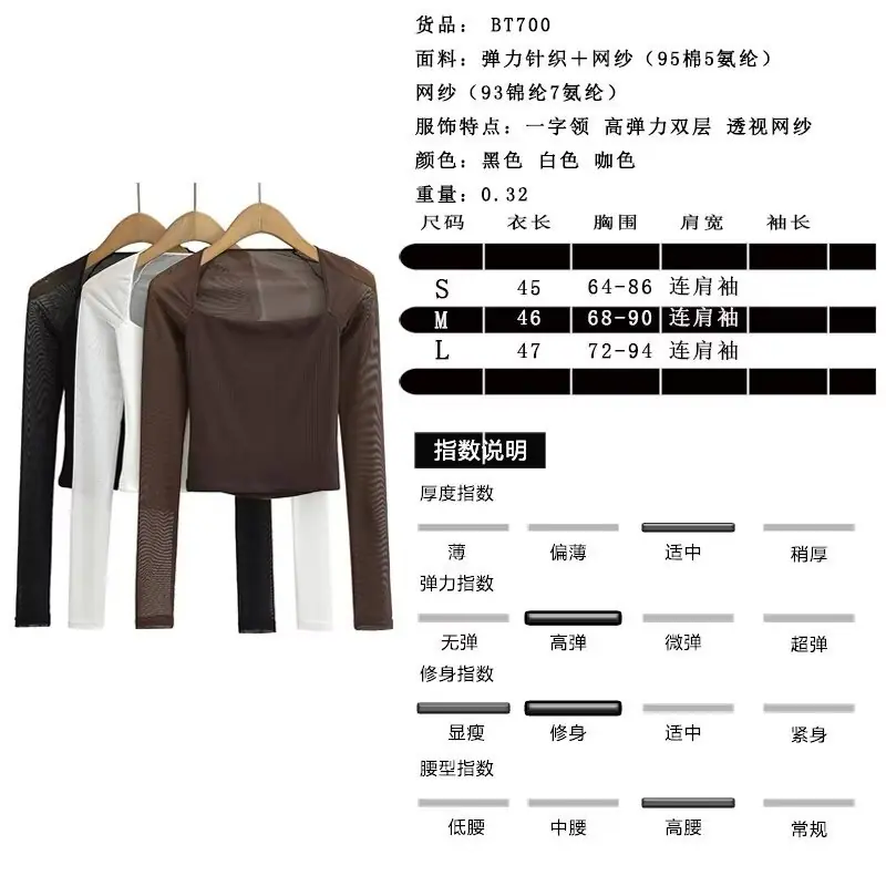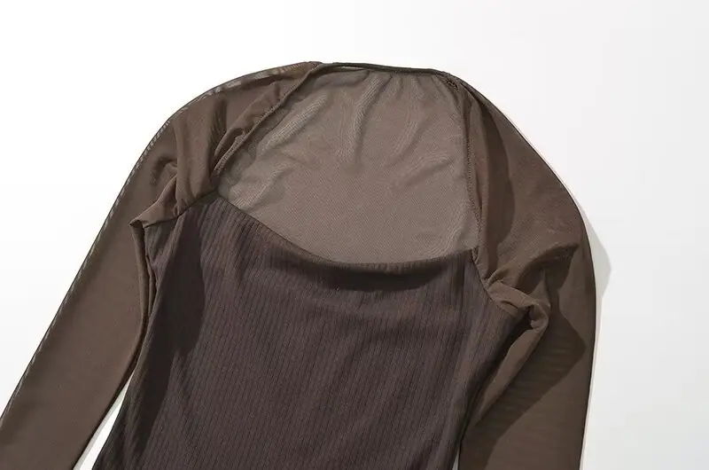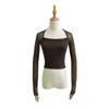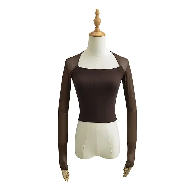 Compra Estilo Americano Retro Sexy Costuras de Malla Ajustada Camiseta Corta para Mujer Spice Girl Cuello Cuadrado Perspectiva Color Sólido Base Top Deseo Puro al por mayor en Joom.pro