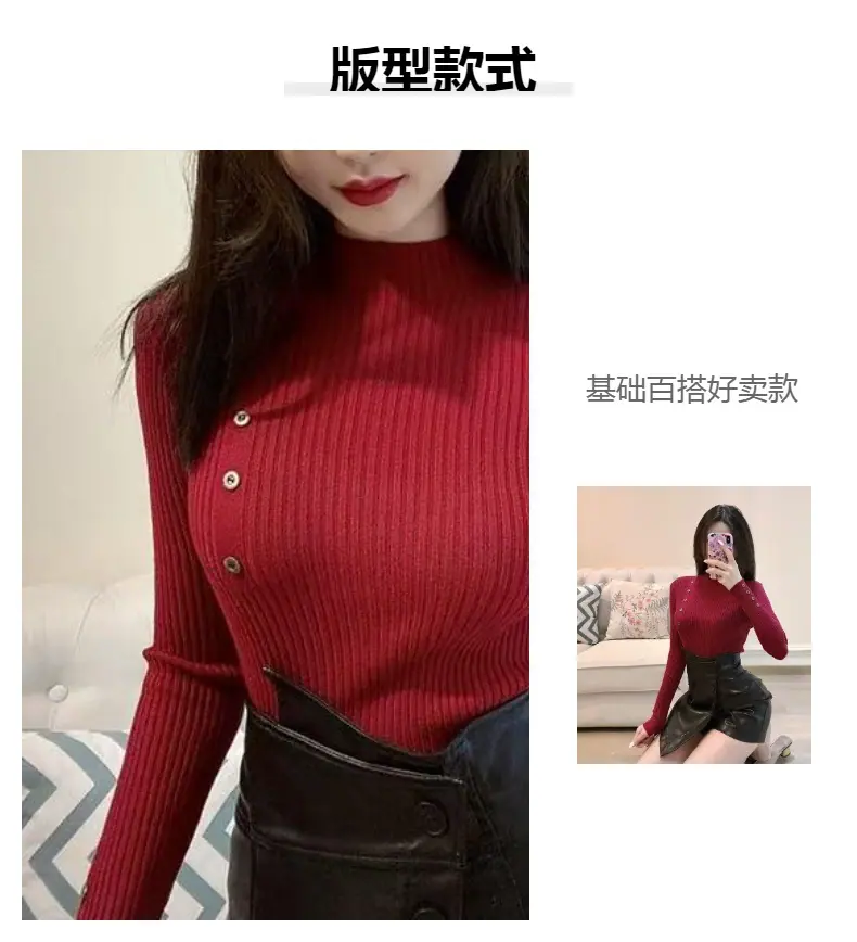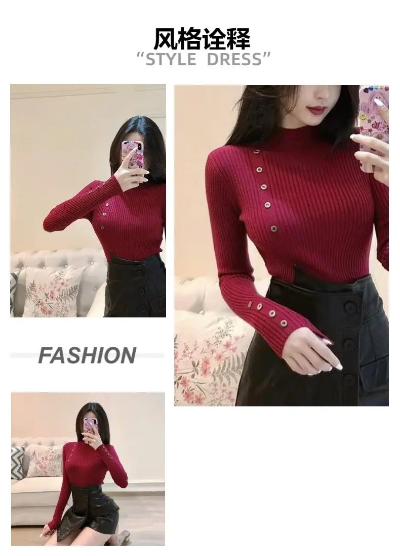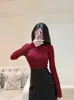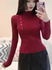 Camisetas básicas de punto de primavera, otoño e invierno, tops delgados y versátiles, suéteres finos de manga larga para mujer, ropa para mujer de cuello alto medio