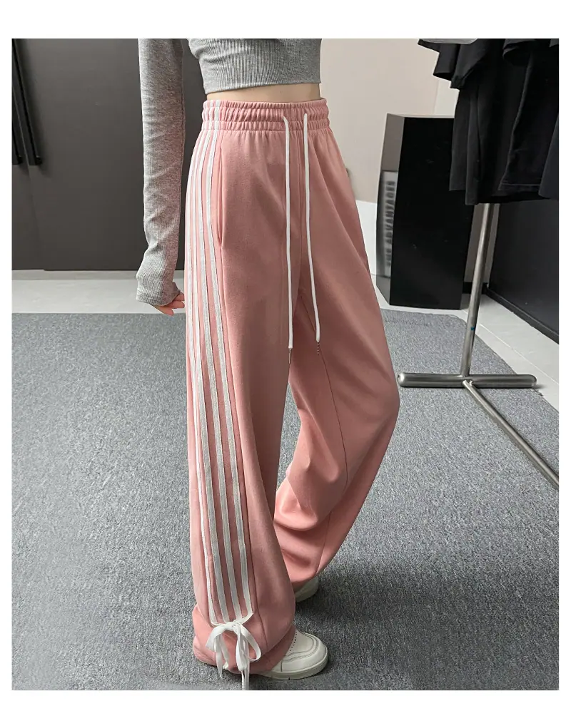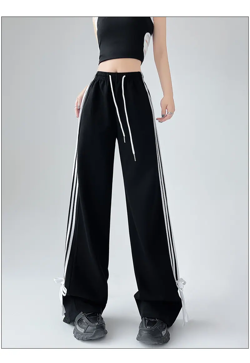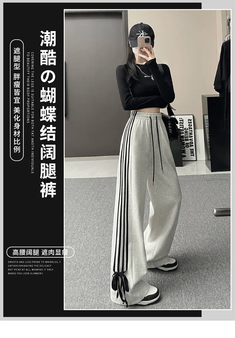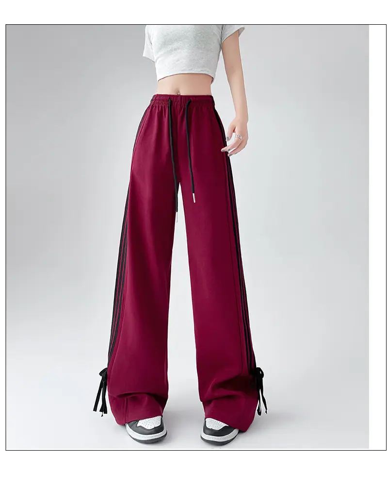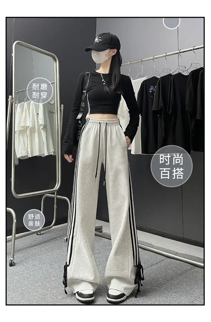 Pantalones de Pierna Ancha de Diseño Holgado de Cintura Alta Nuevos de Primavera/Verano para Mujer Estilo Holgazán con Caída Lazo Pantalones Deportivos Casuales