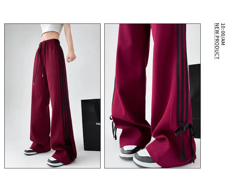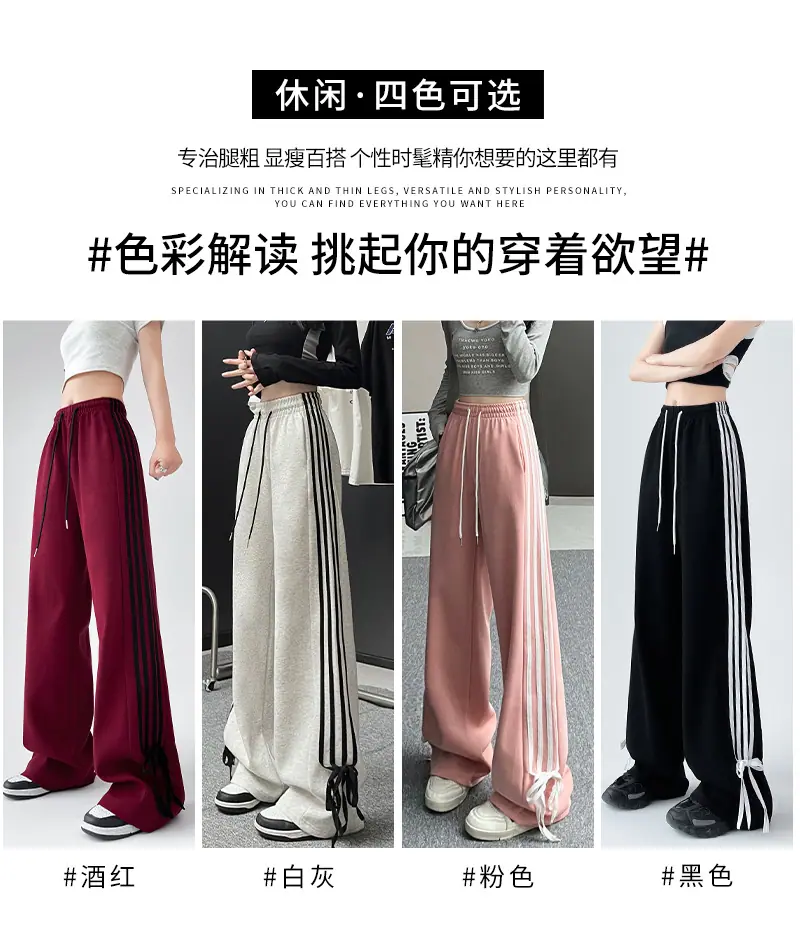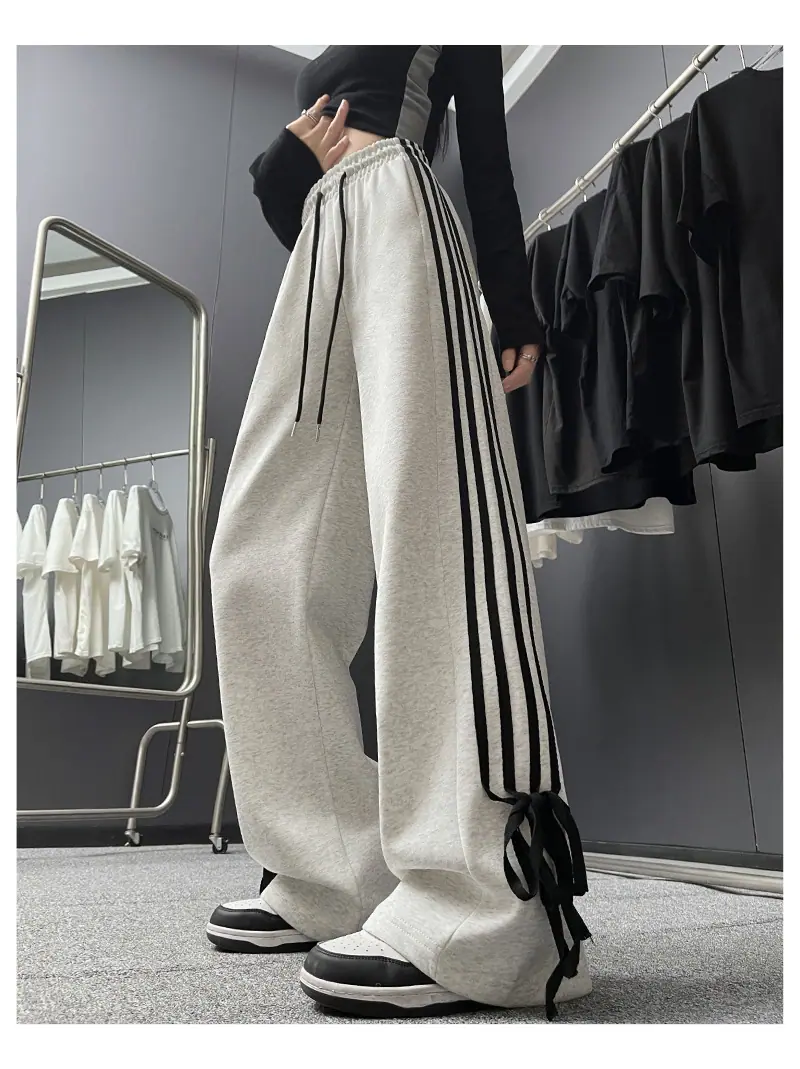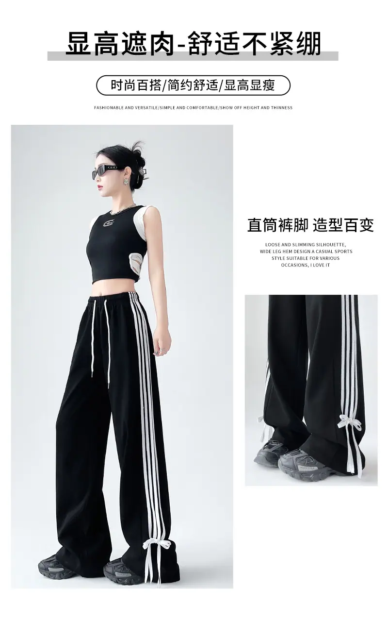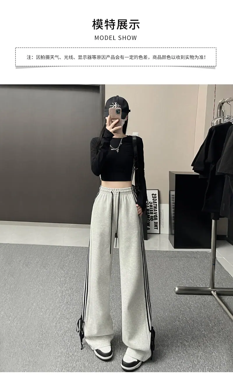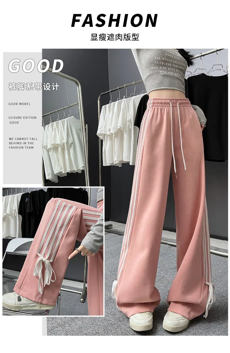 Pantalones de Pierna Ancha de Diseño Holgado de Cintura Alta Nuevos de Primavera/Verano para Mujer Estilo Holgazán con Caída Lazo Pantalones Deportivos Casuales