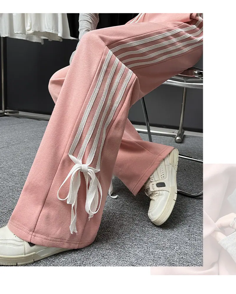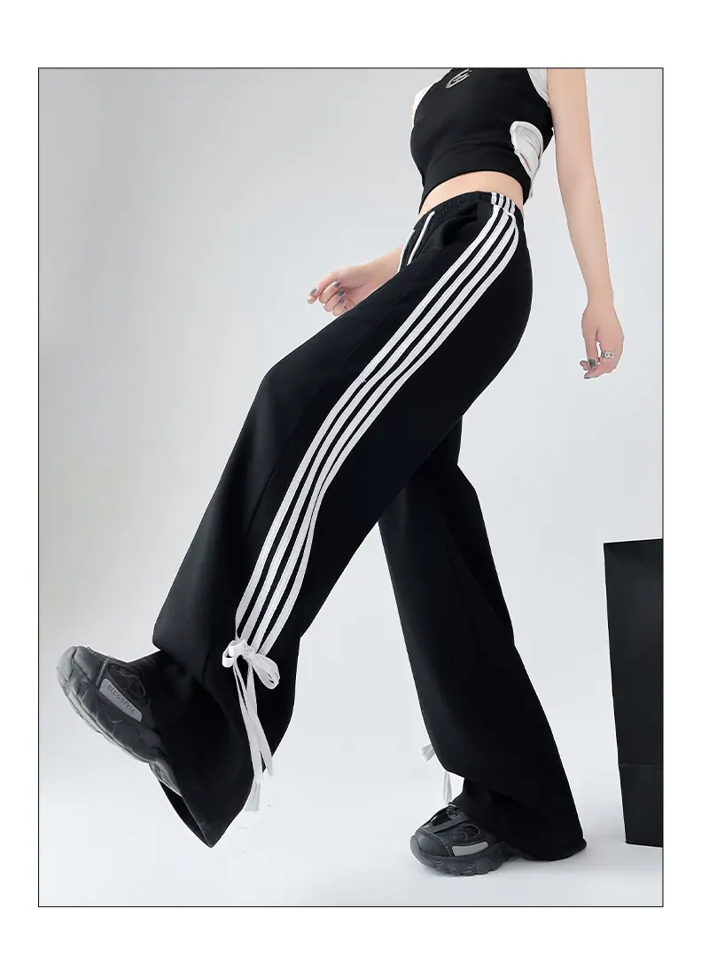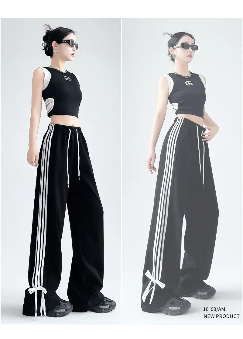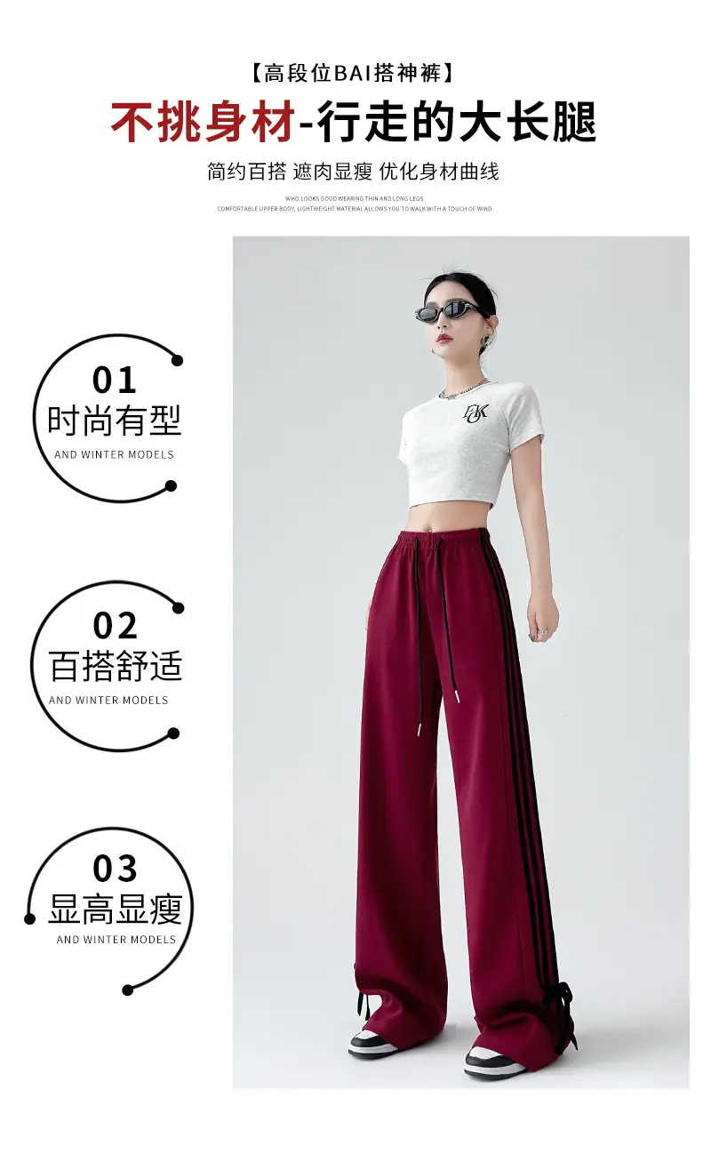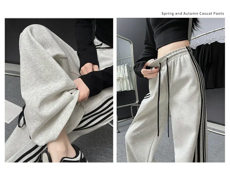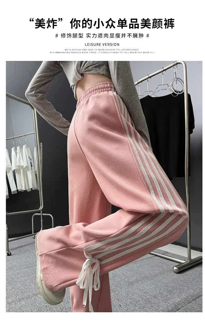 Pantalones de Pierna Ancha de Diseño Holgado de Cintura Alta Nuevos de Primavera/Verano para Mujer Estilo Holgazán con Caída Lazo Pantalones Deportivos Casuales