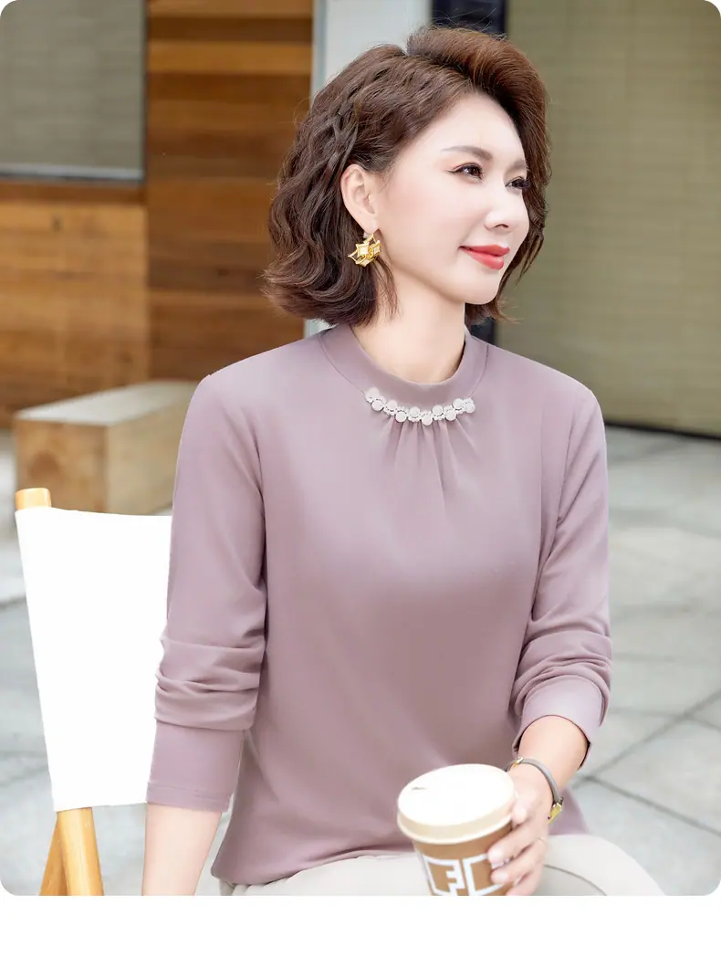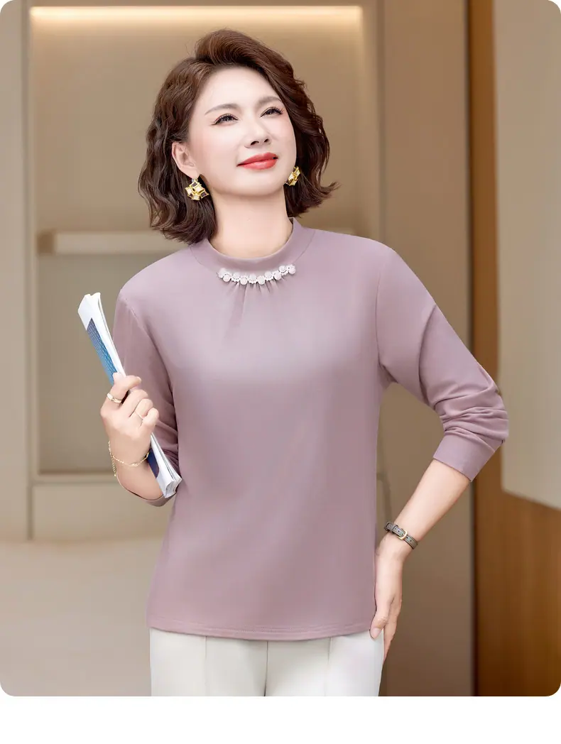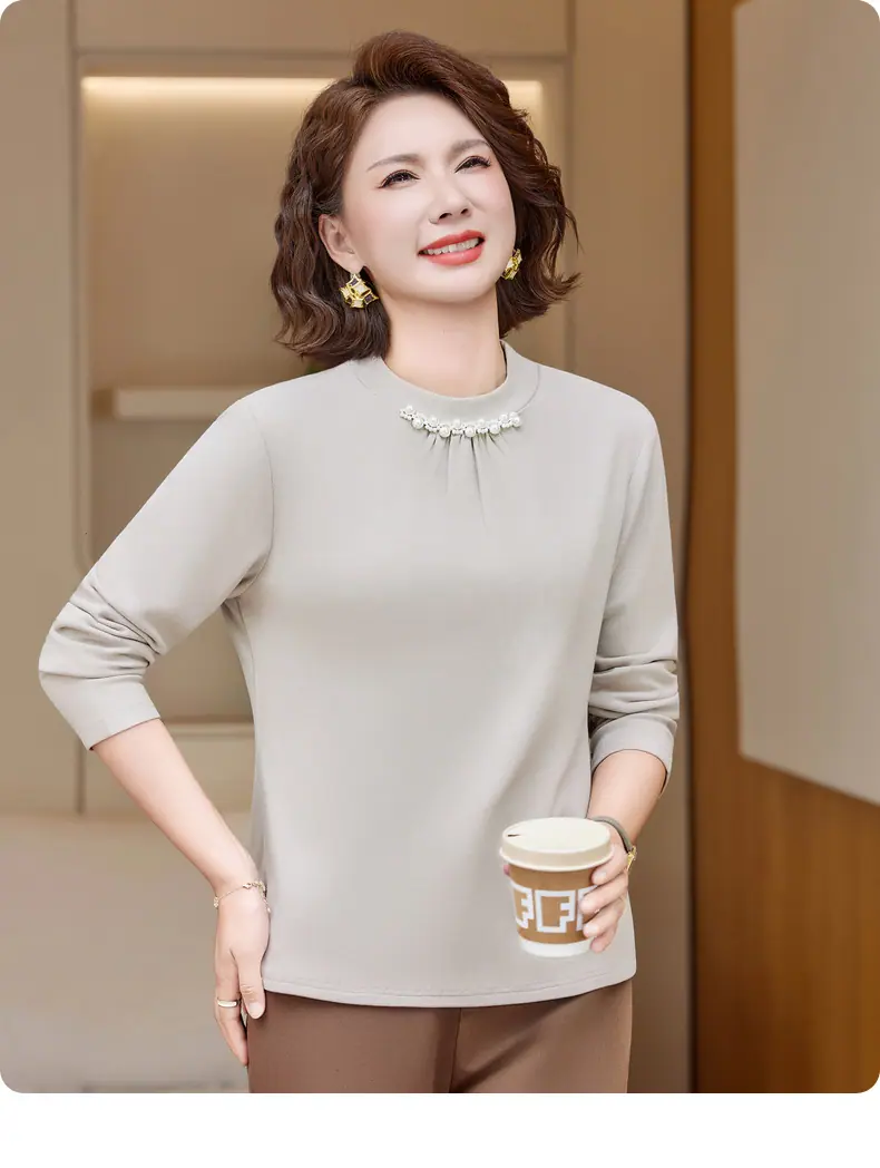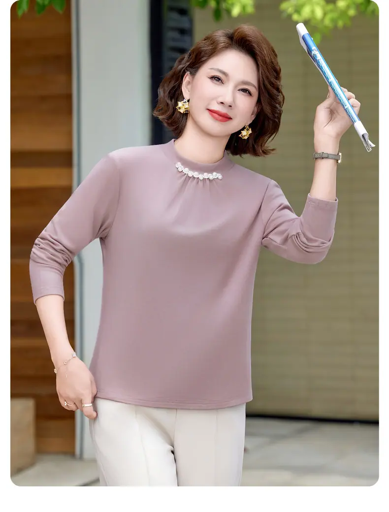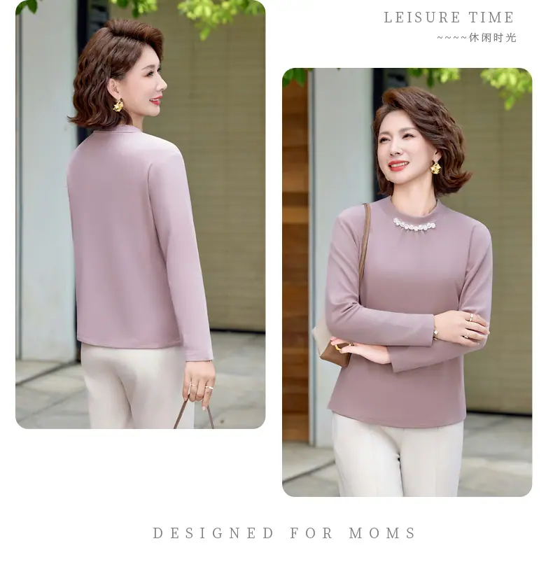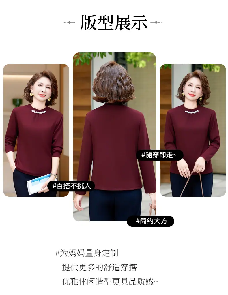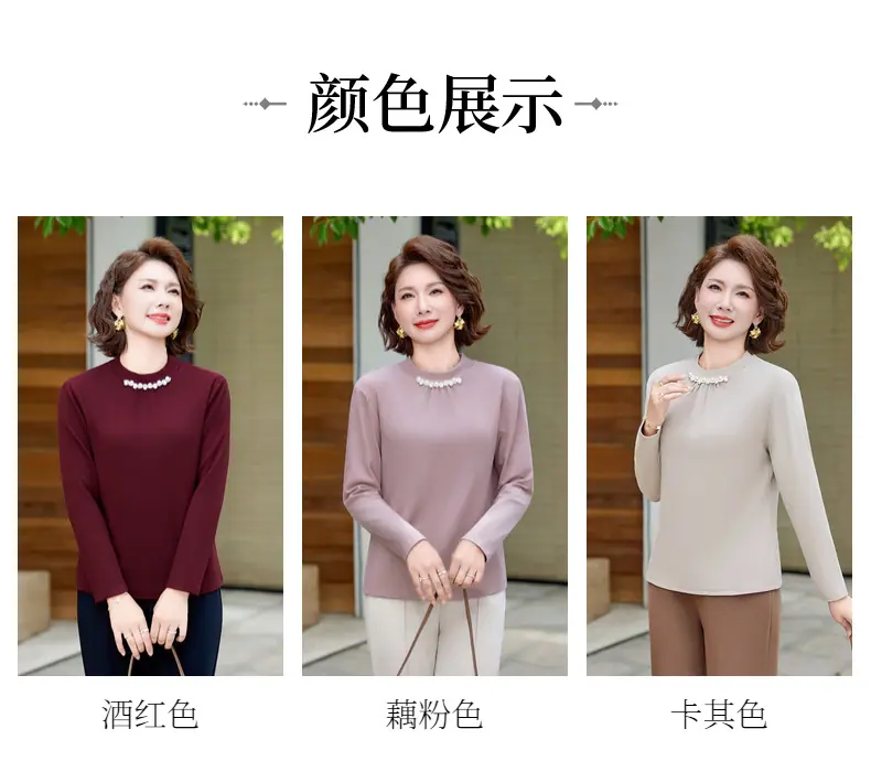 Compra Camiseta Base de Moda Otoño e Invierno para Mamá 40 50 Mujeres de Mediana Edad y Mayores Suéter Top Holgado Talla Grande al por mayor en Joom.pro