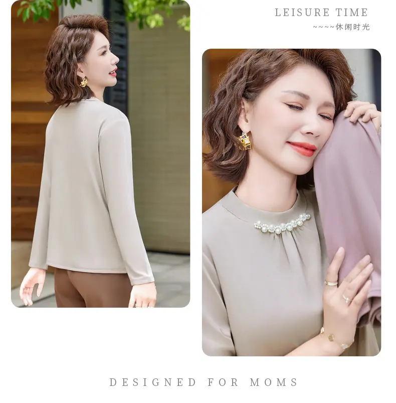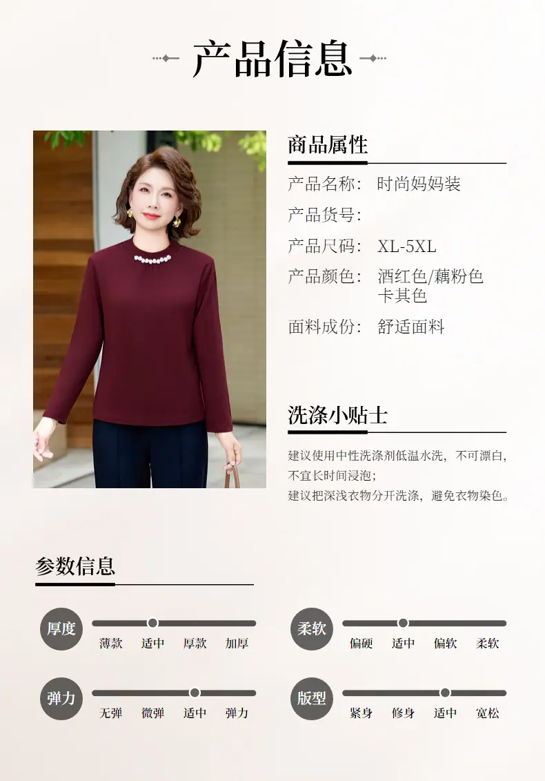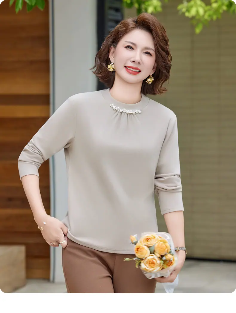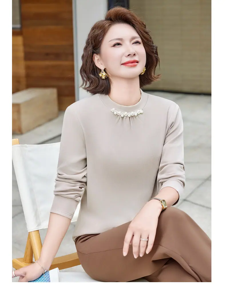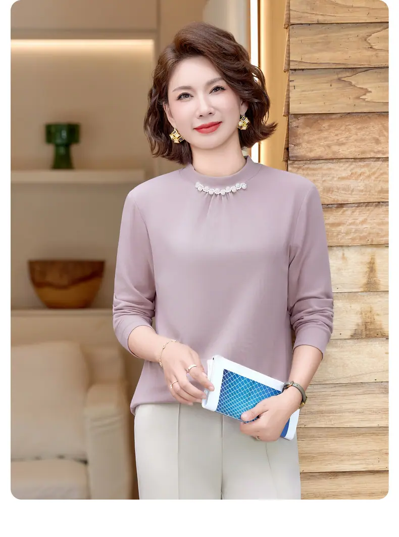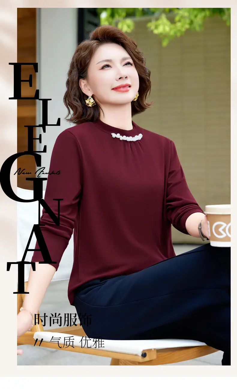 Compra Camiseta Base de Moda Otoño e Invierno para Mamá 40 50 Mujeres de Mediana Edad y Mayores Suéter Top Holgado Talla Grande al por mayor en Joom.pro