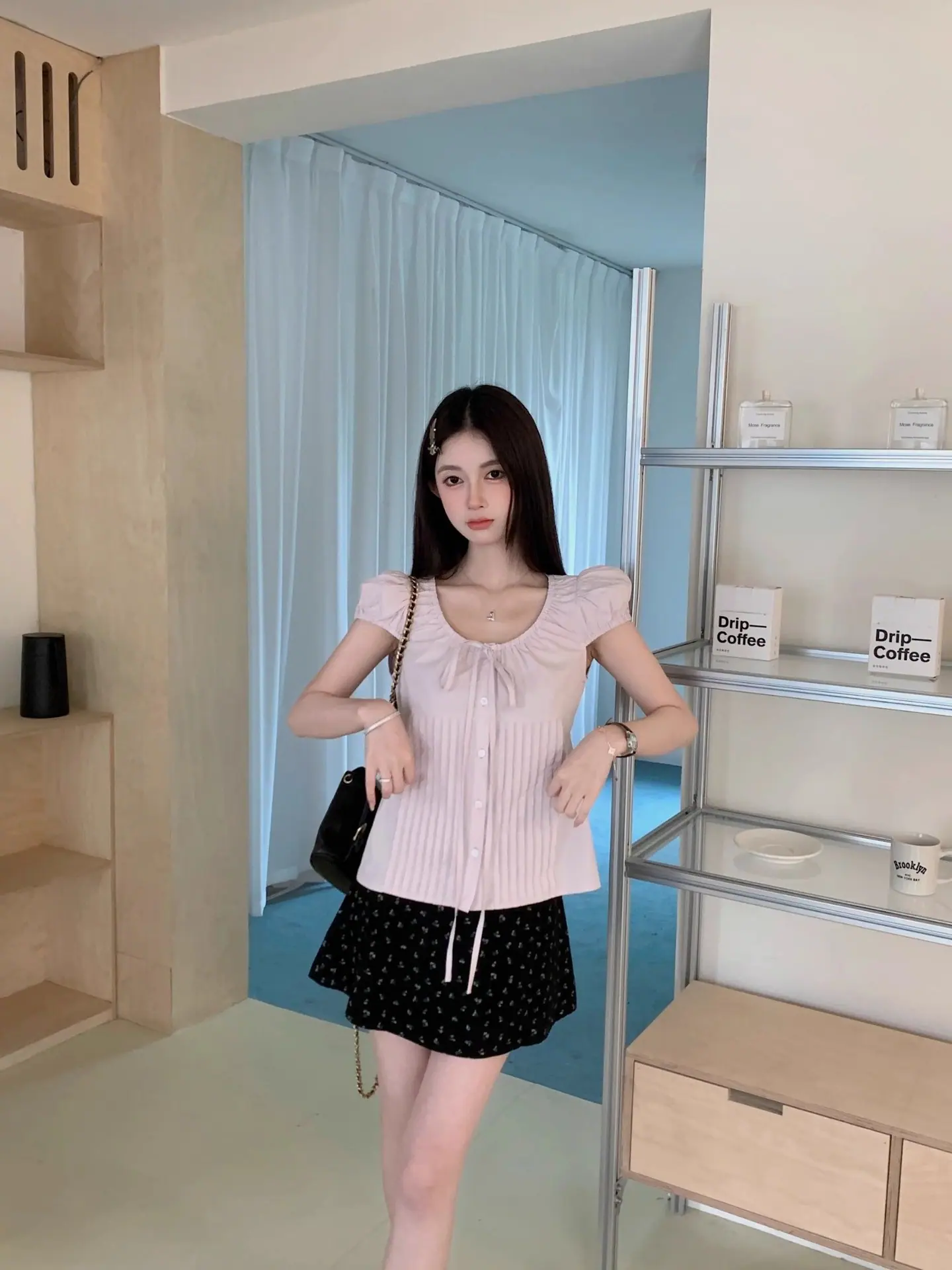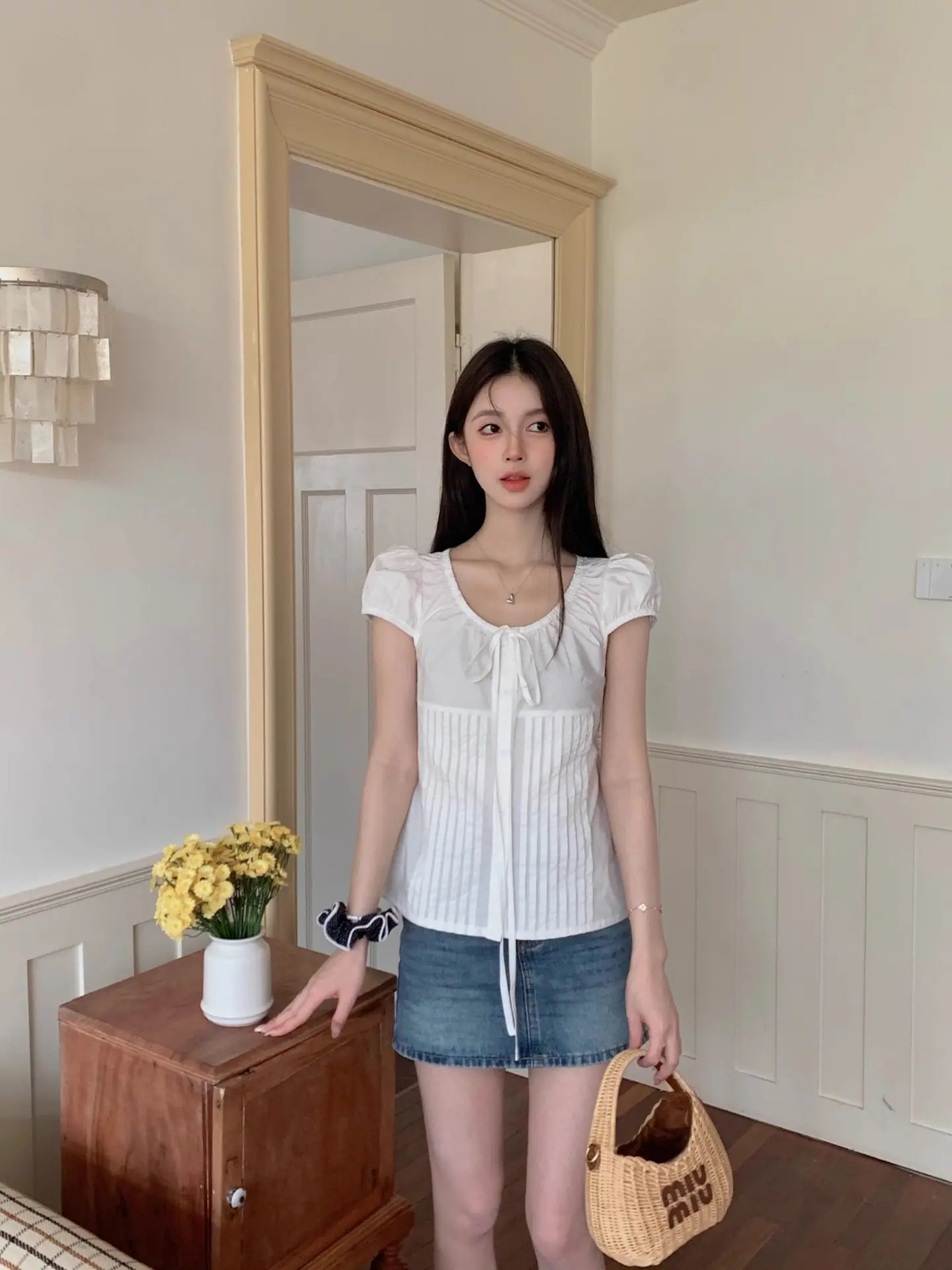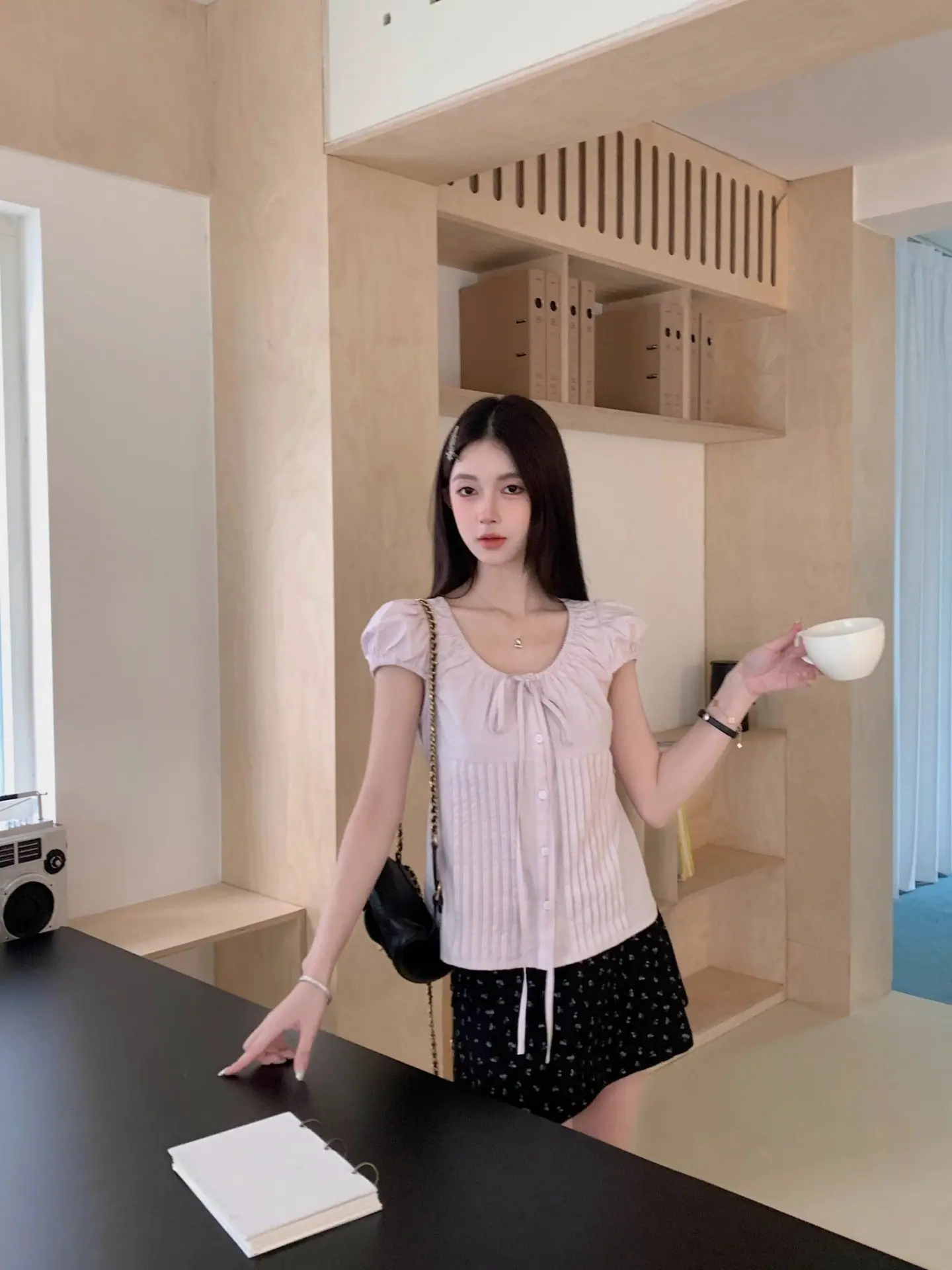 Compra Camisa nueva con cordones, manga corta abullonada, botonadura simple, estilo fino de verano, corte recto, top adelgazante para mujer 2025 al por mayor en Joom.pro