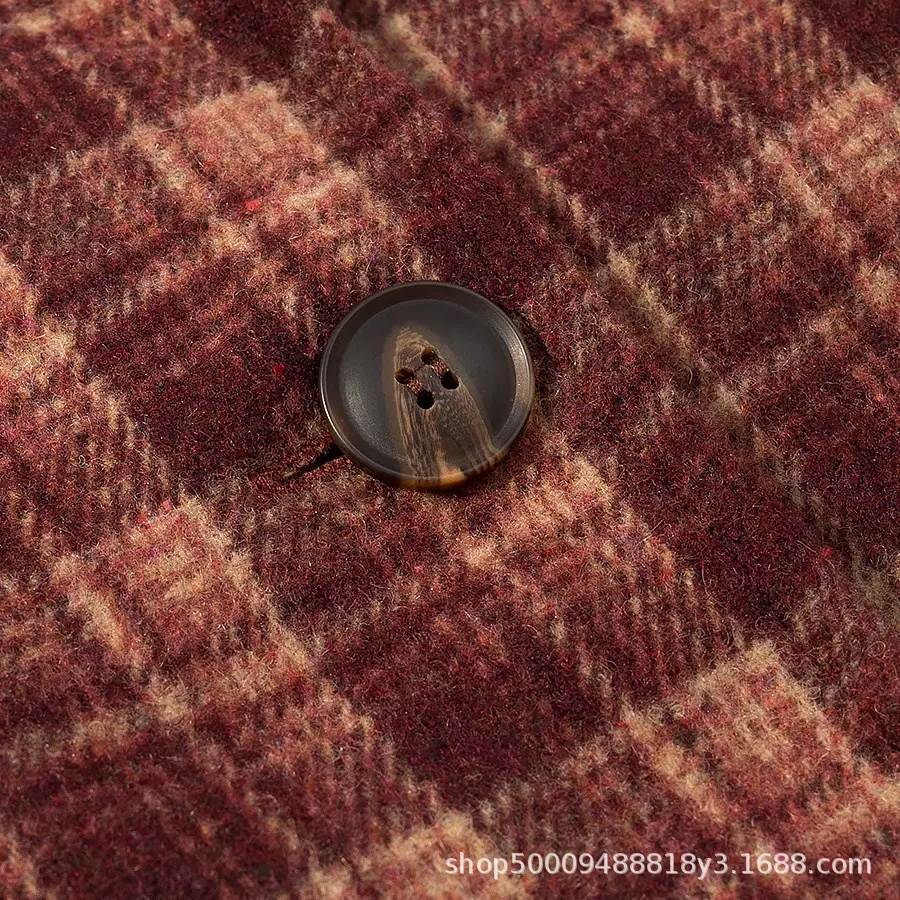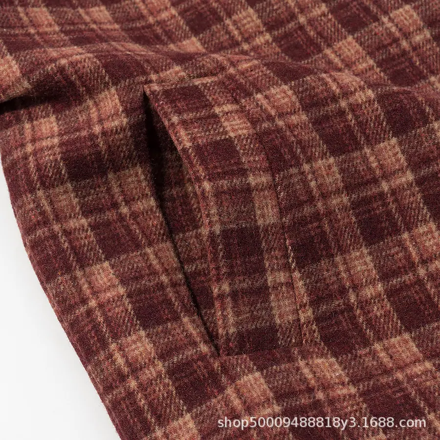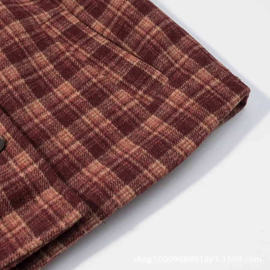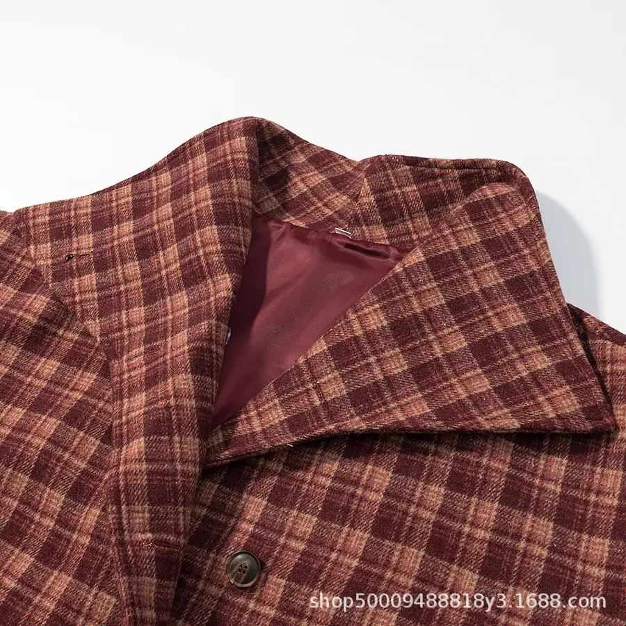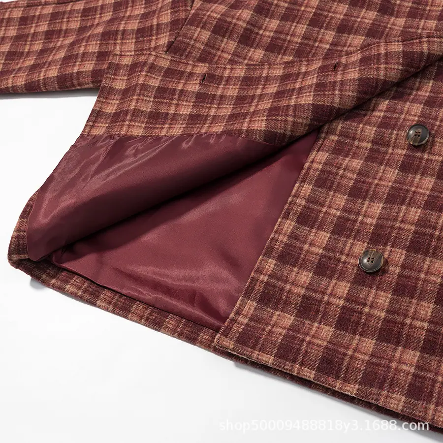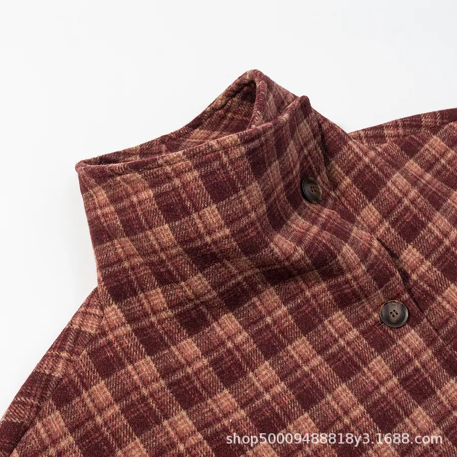 Comercio exterior transfronterizo otoño 2025 nuevo estilo europeo y americano moda temperamento cuello alto manga larga cuadros abrigo corto de lana
