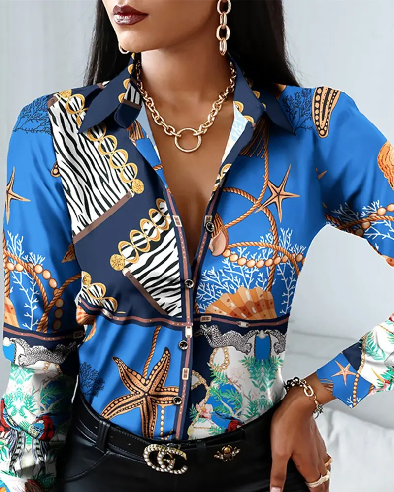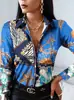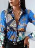 Comercio Exterior Europeo y Americano Nuevo Otoño Tops Estampados para Mujer Camisas de Manga Larga Camisa Temperamento
