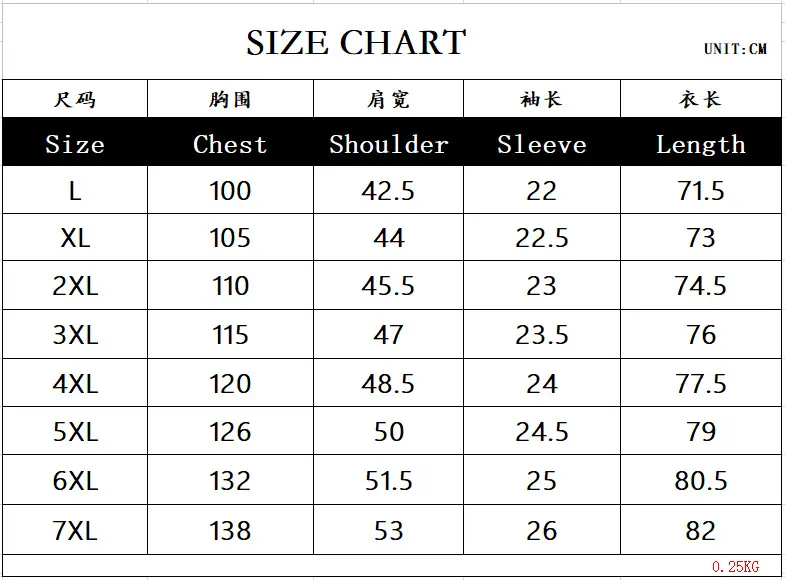 L, XL, 2XL, 3XL, 4XL, 5XL, 6XL, 7XL