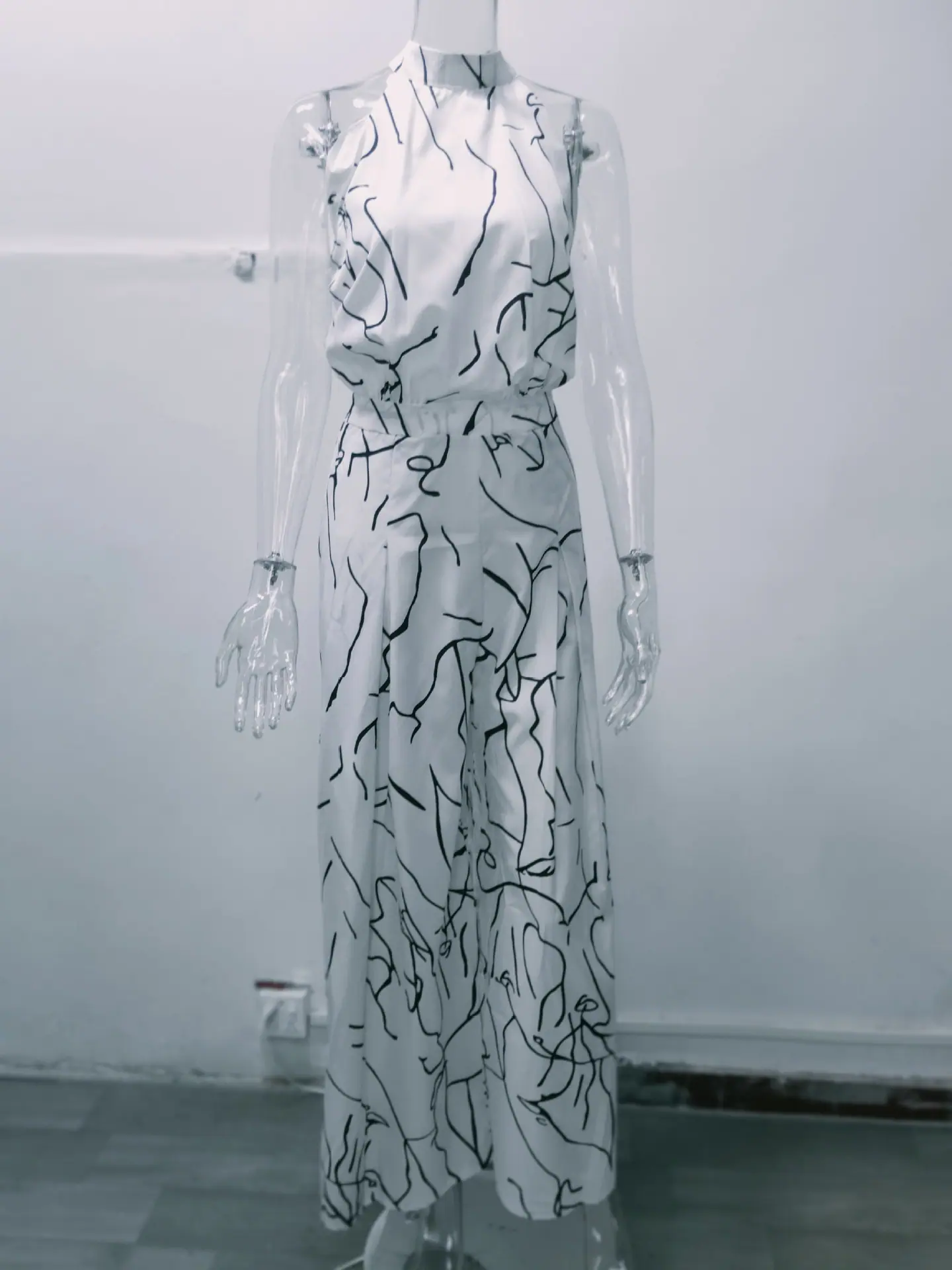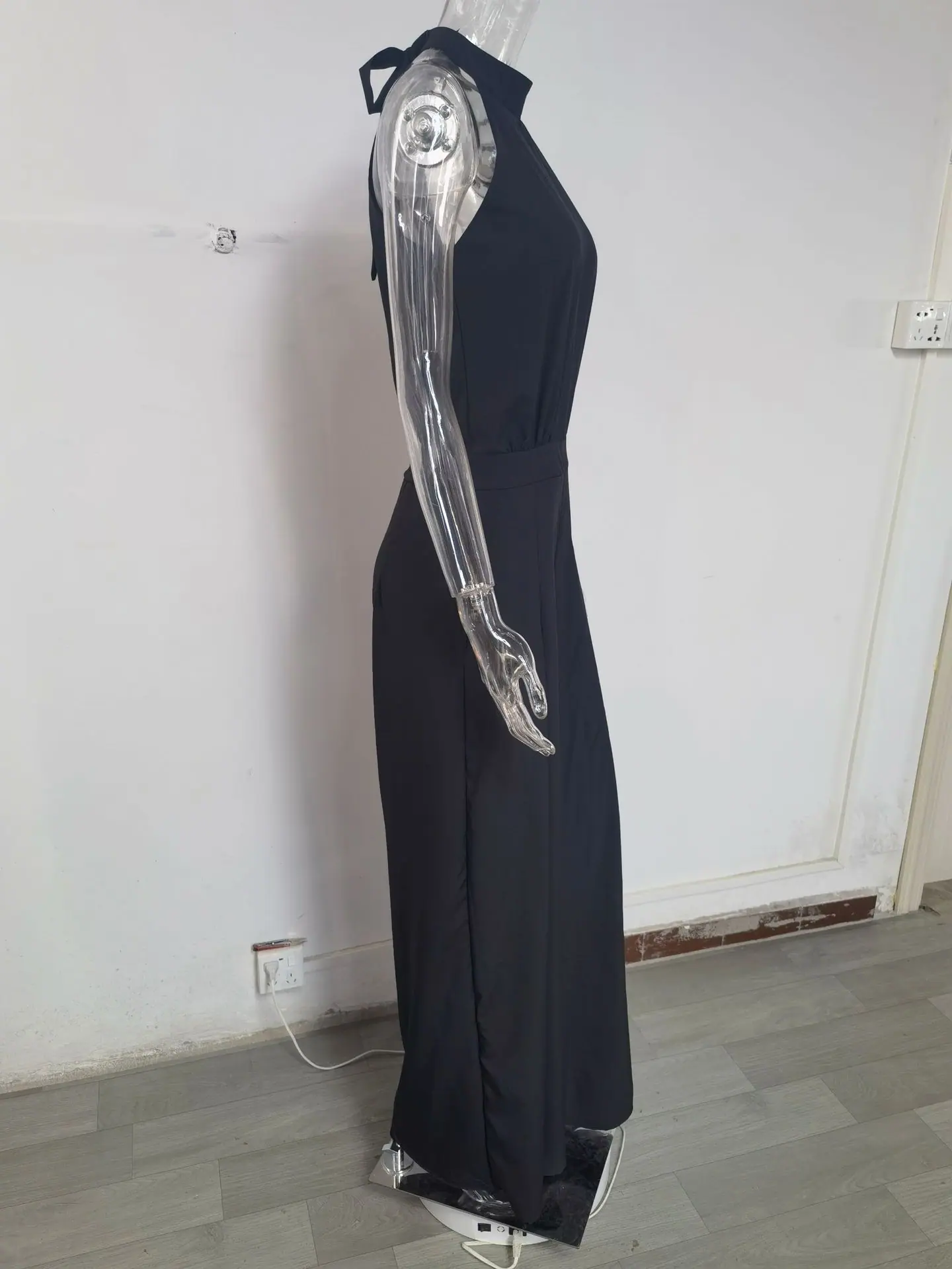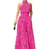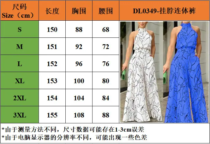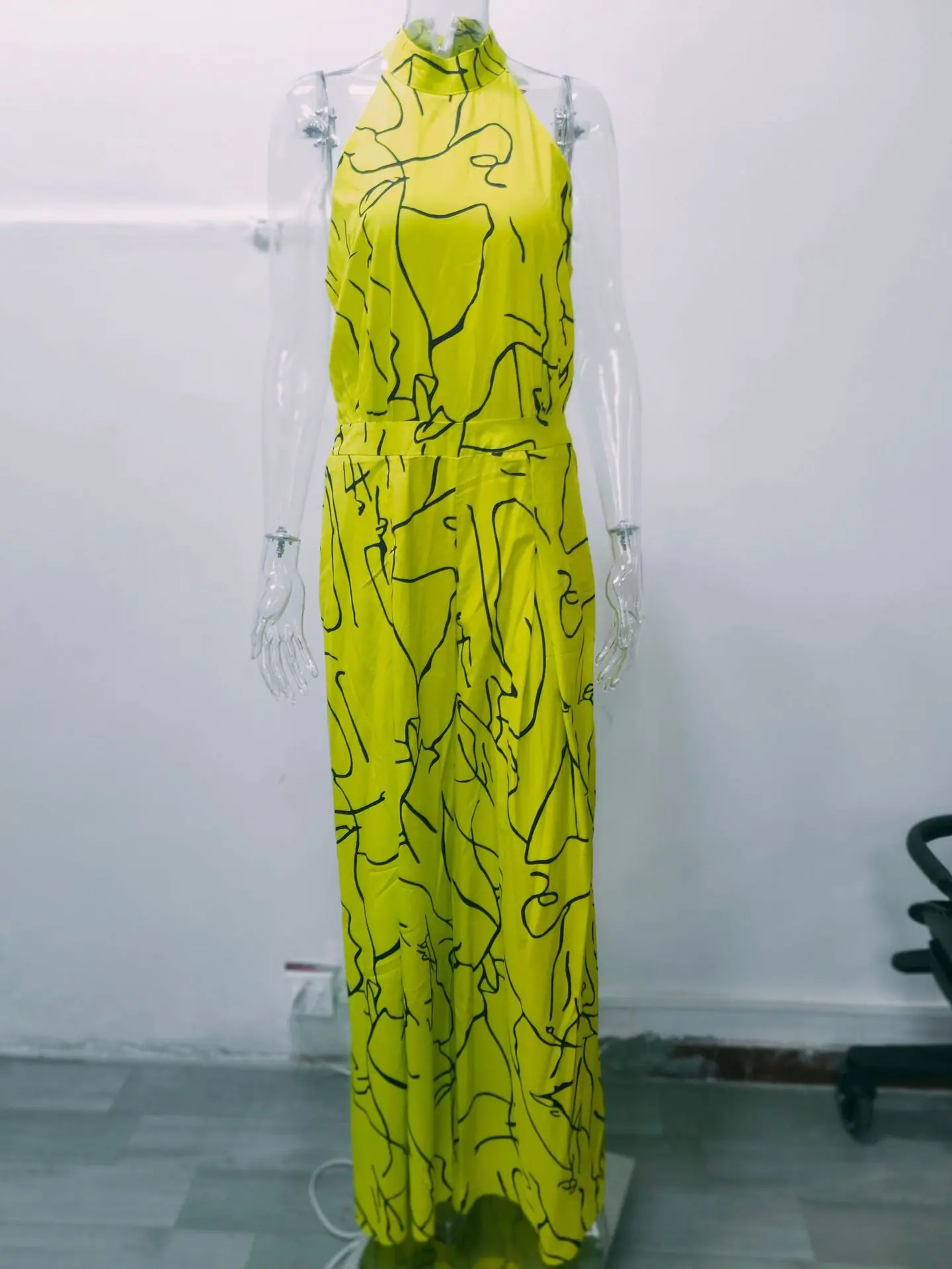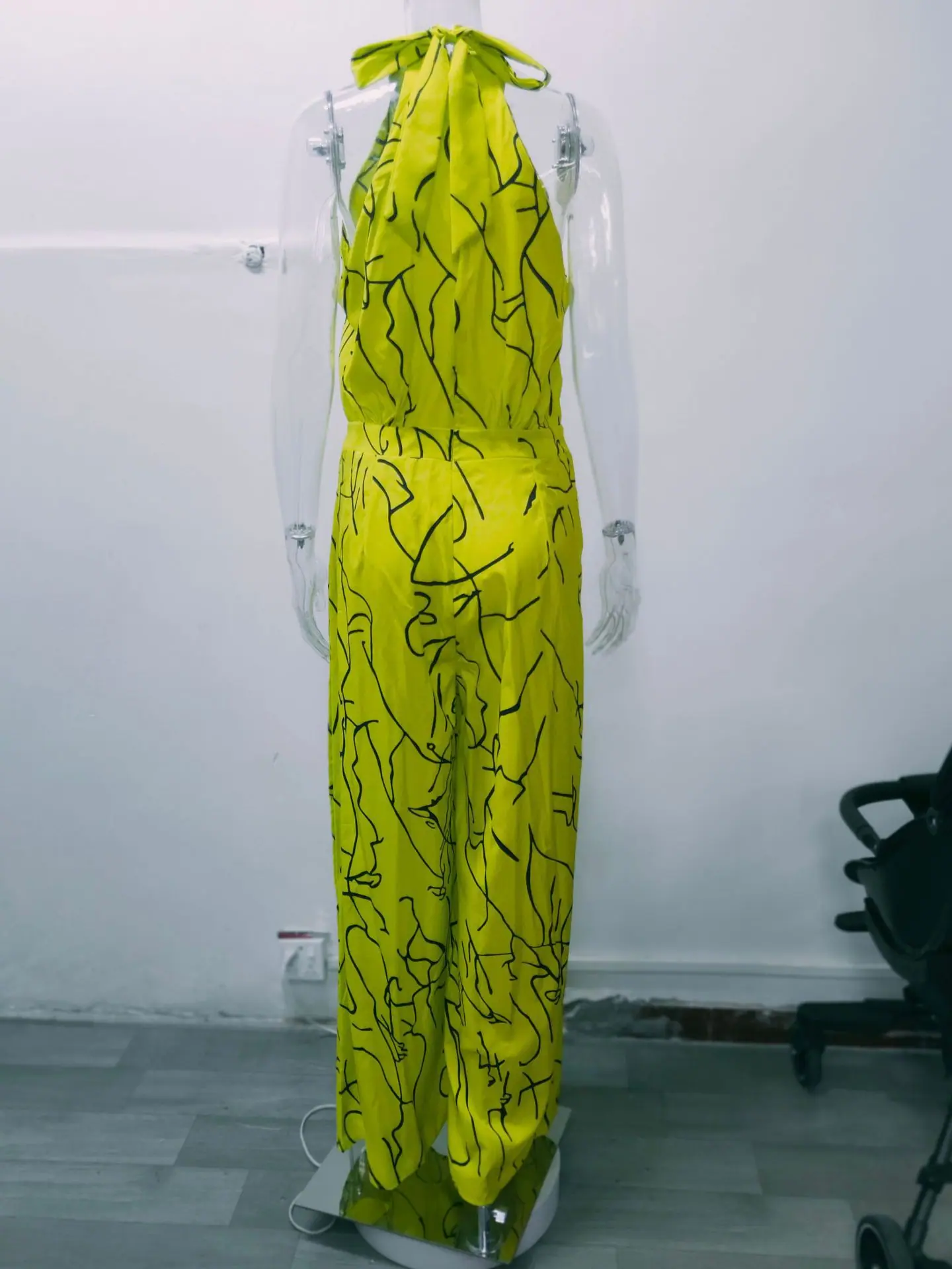 Ropa de Verano para Mujer Europea y Americana 2023 Amazon Elegante Cinturón Anudado Sin Mangas Cuello Halter Pantalón Largo Estampado Mono