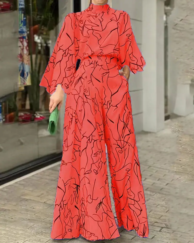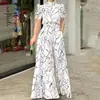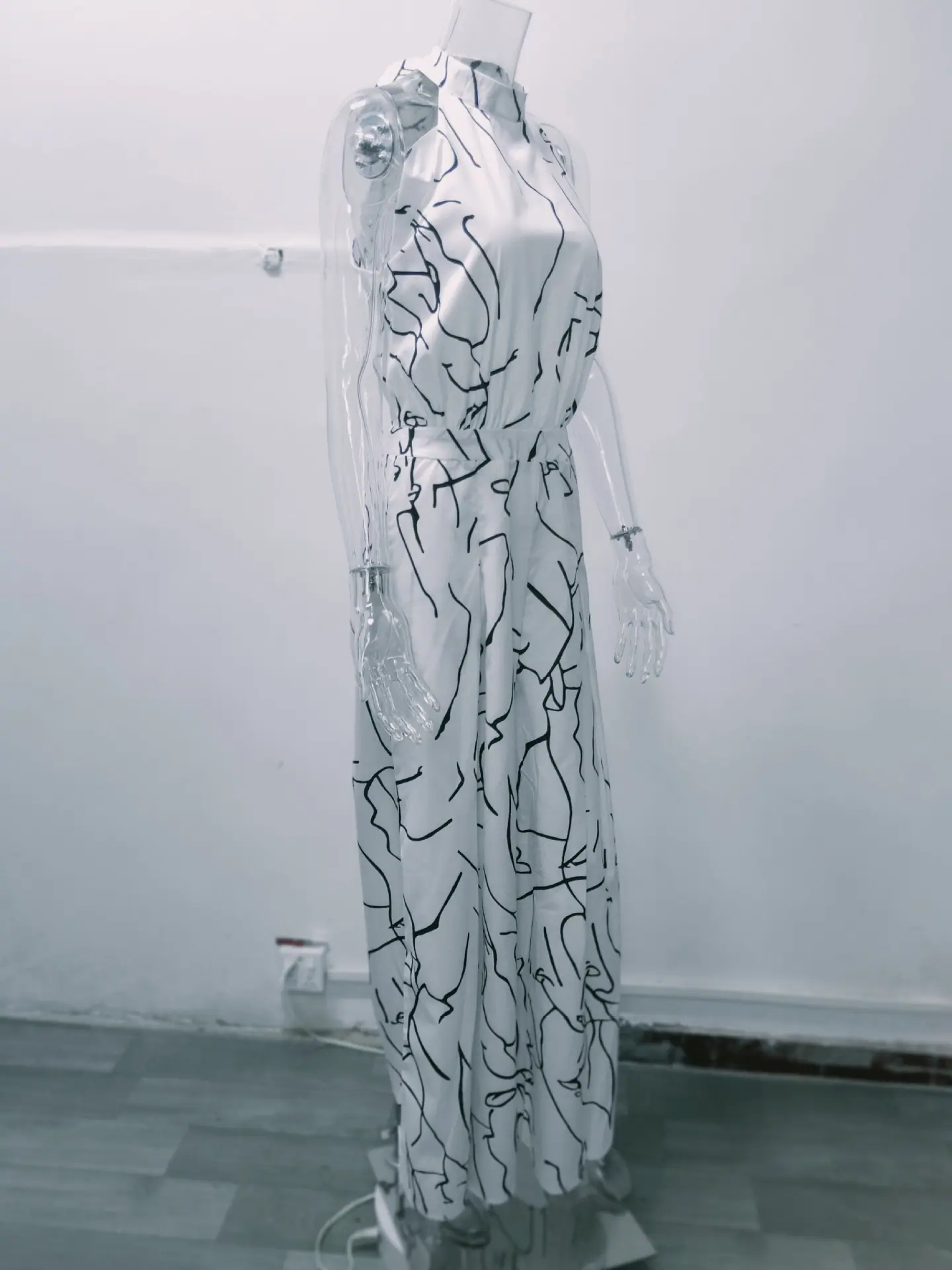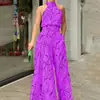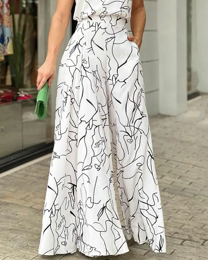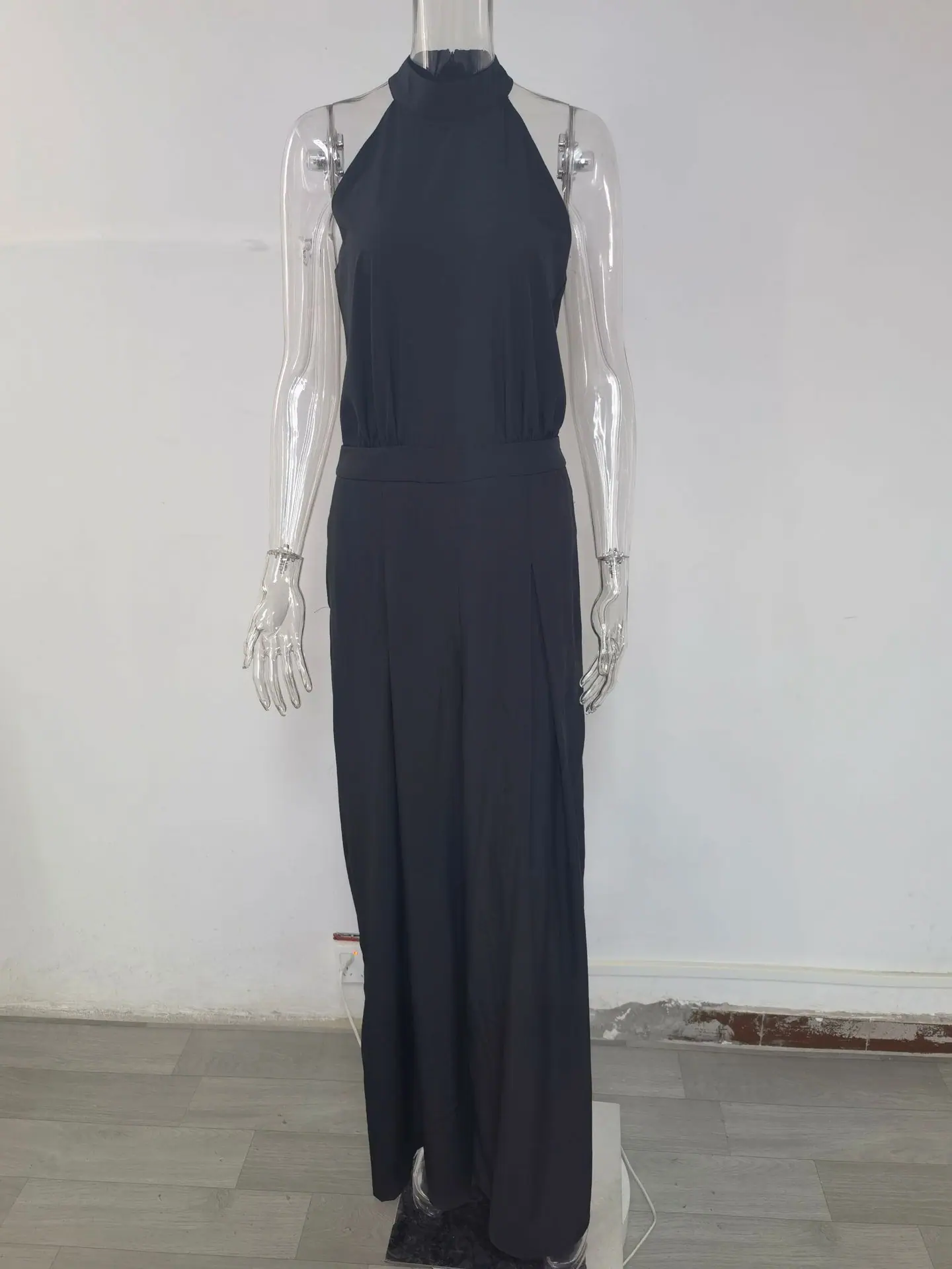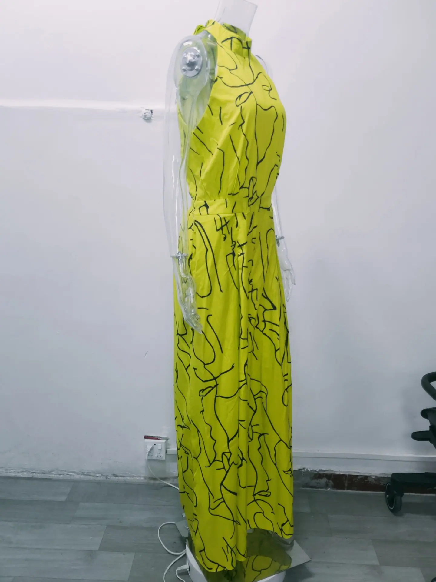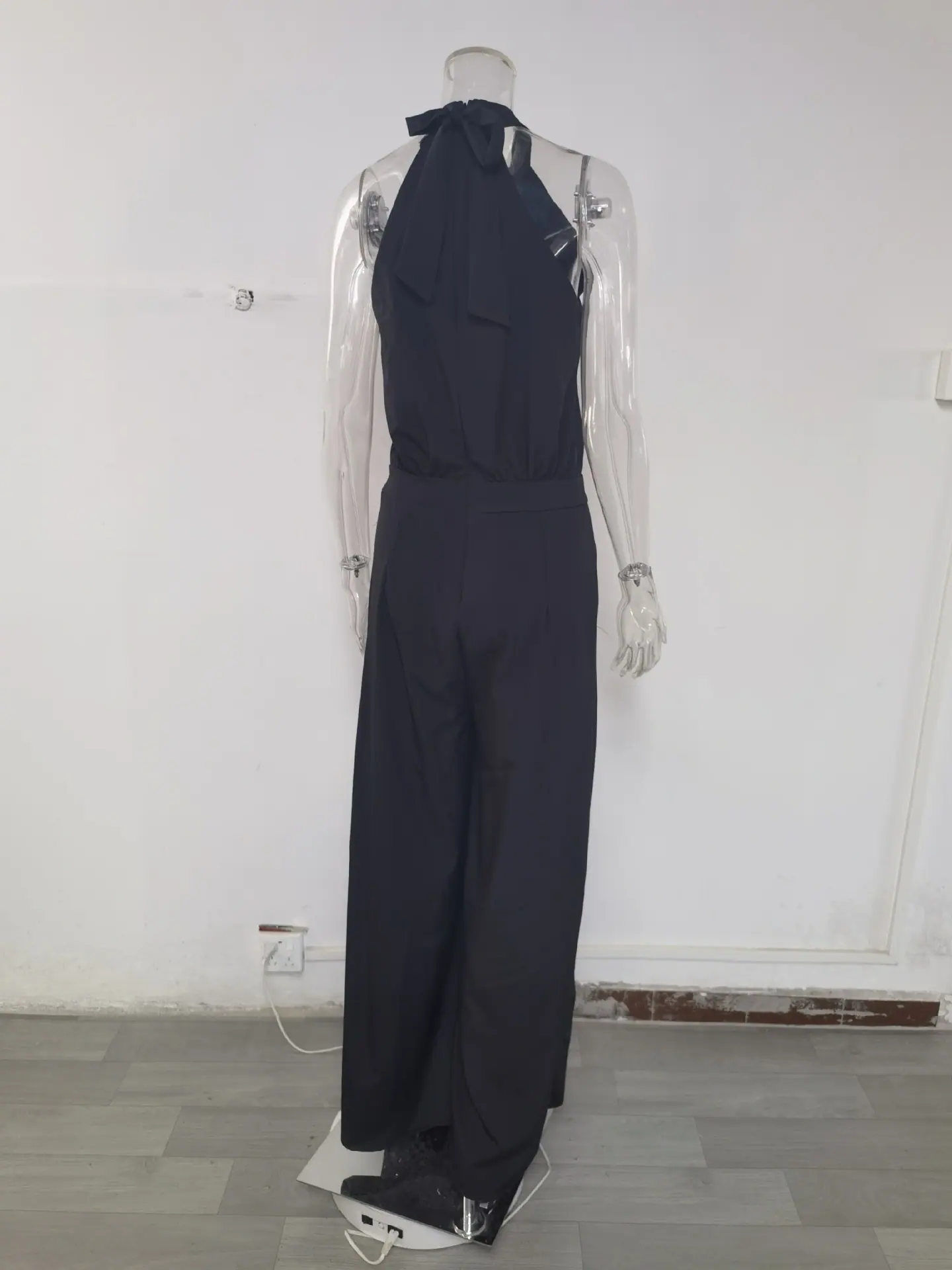 Ropa de Verano para Mujer Europea y Americana 2023 Amazon Elegante Cinturón Anudado Sin Mangas Cuello Halter Pantalón Largo Estampado Mono