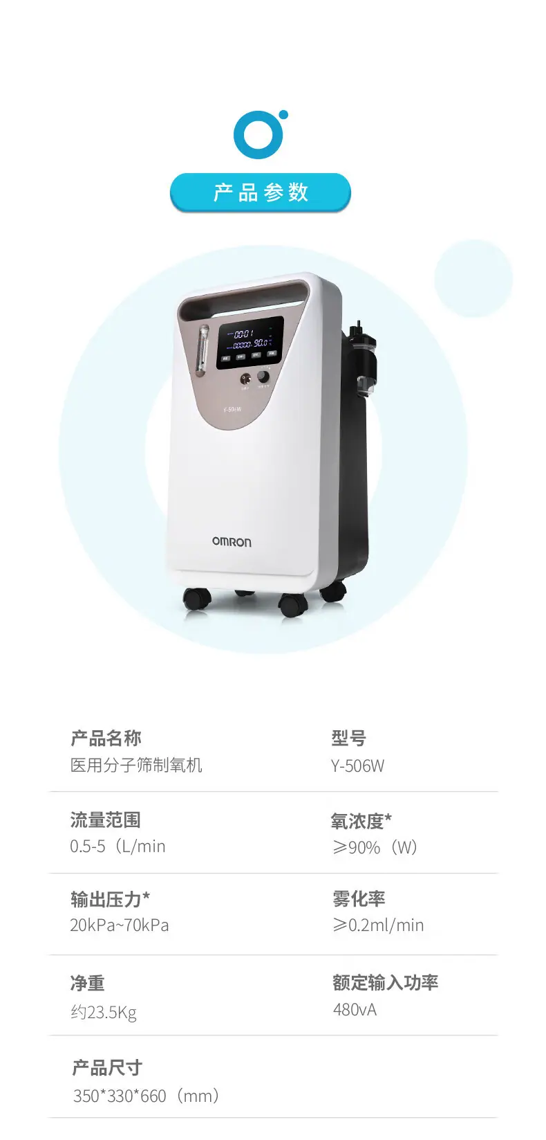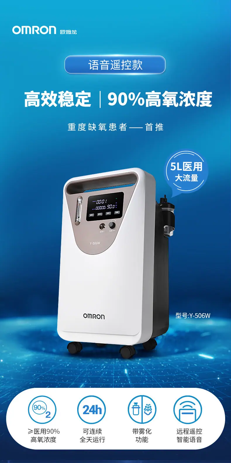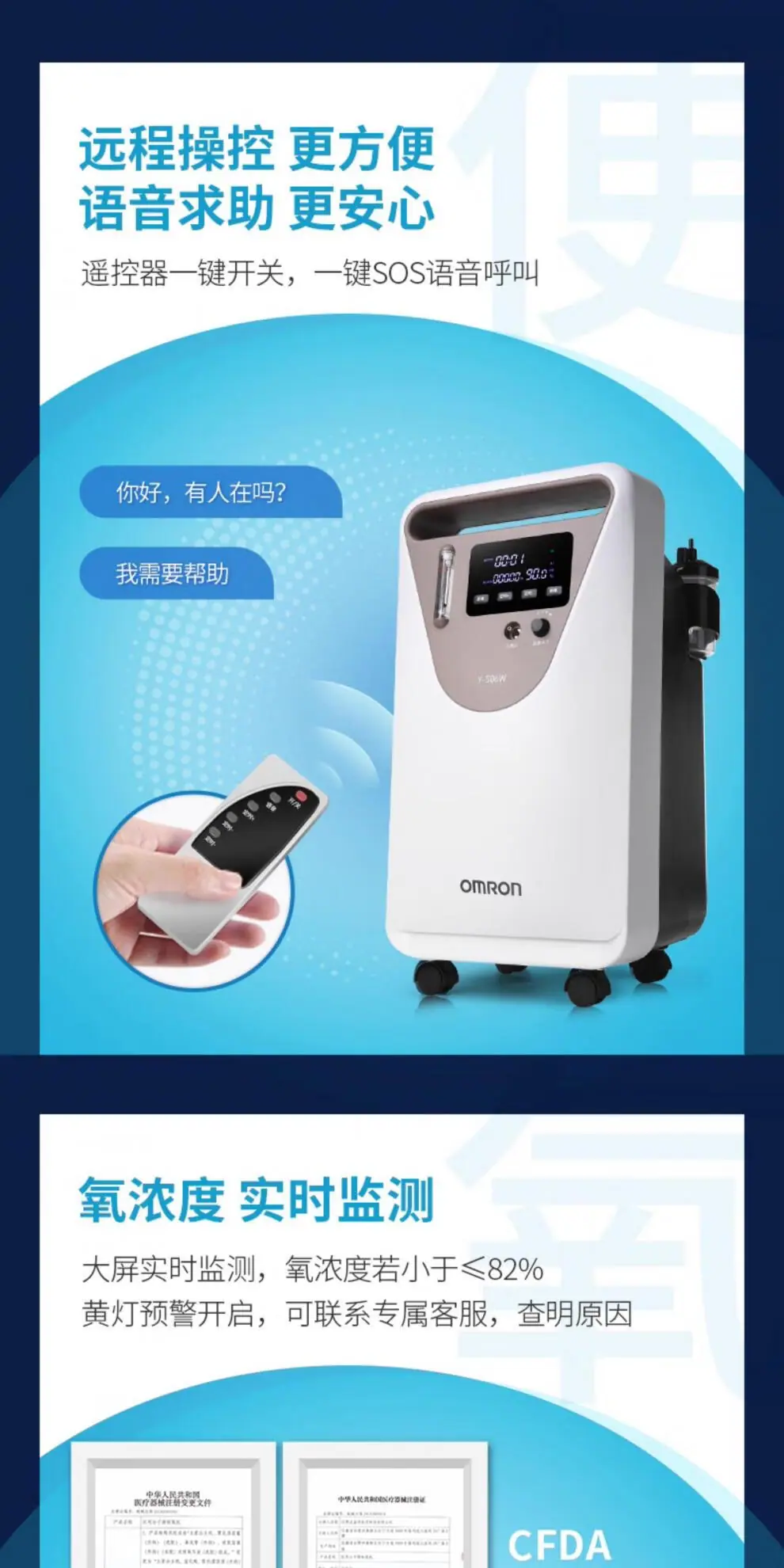 Concentrador de Oxígeno de Alto Flujo Omron 5L 506W Uso Doméstico Inhalador de Oxígeno de Alto Flujo Tamiz Molecular Médico