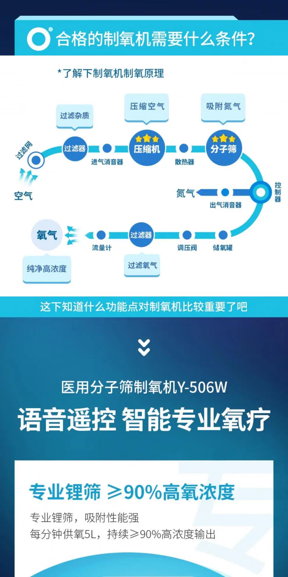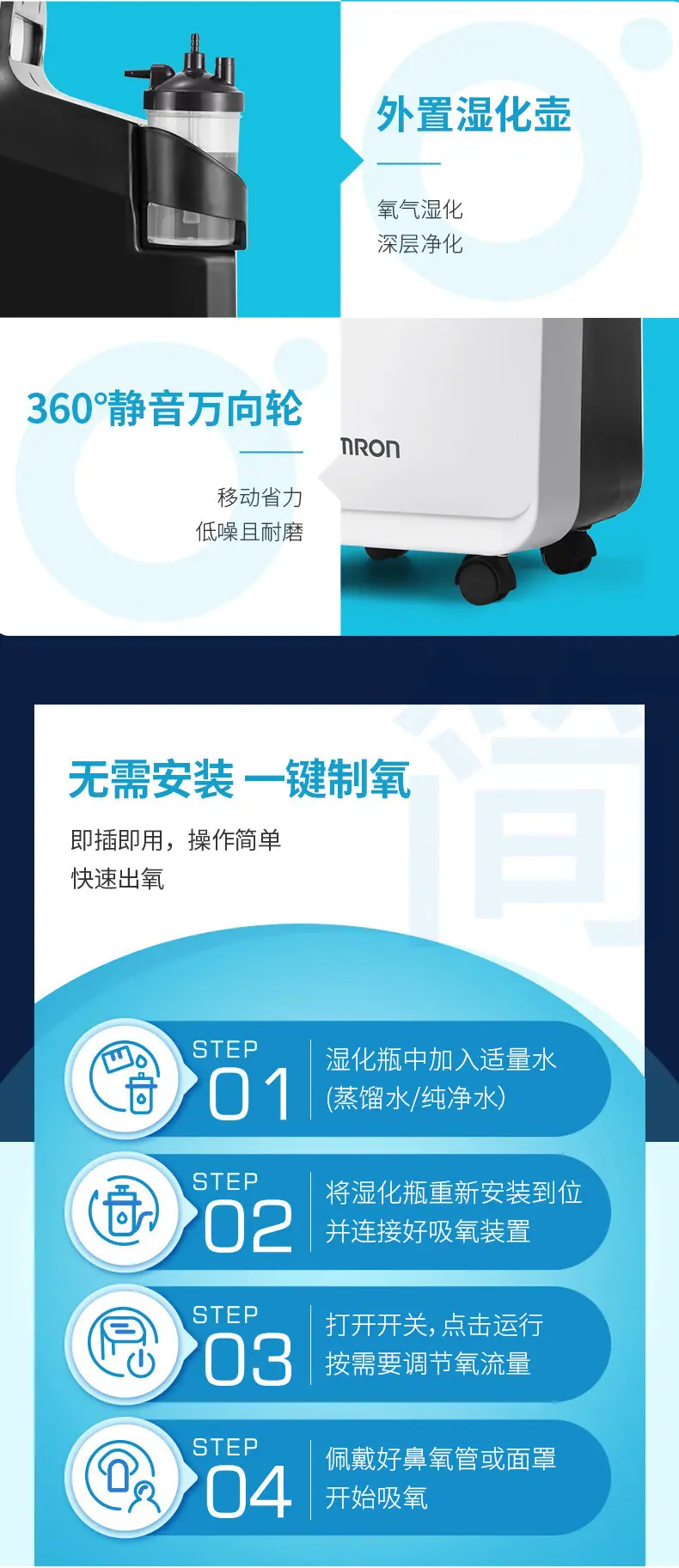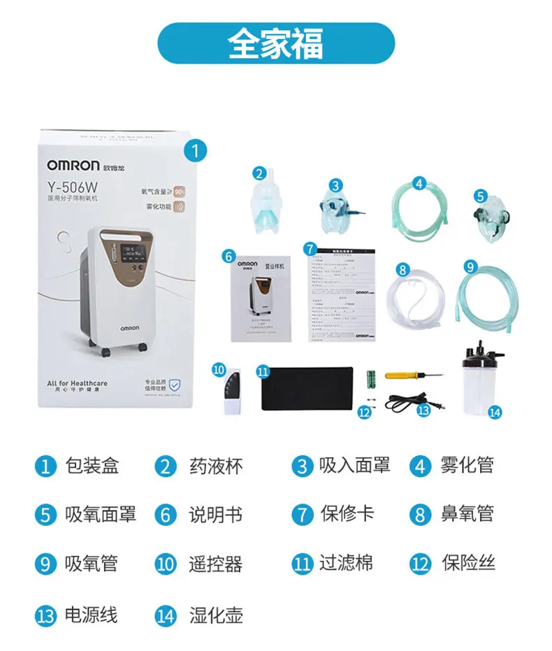 Concentrador de Oxígeno de Alto Flujo Omron 5L 506W Uso Doméstico Inhalador de Oxígeno de Alto Flujo Tamiz Molecular Médico