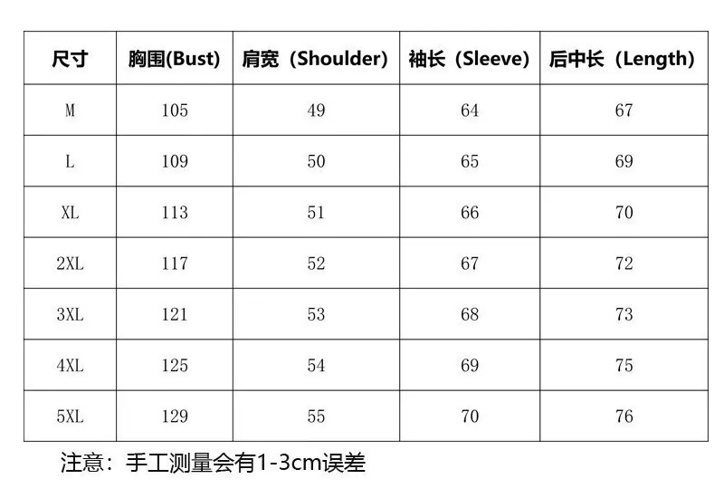 S, M, L, XL, XXL, 3XL, 4XL, 5XL