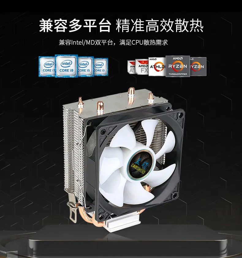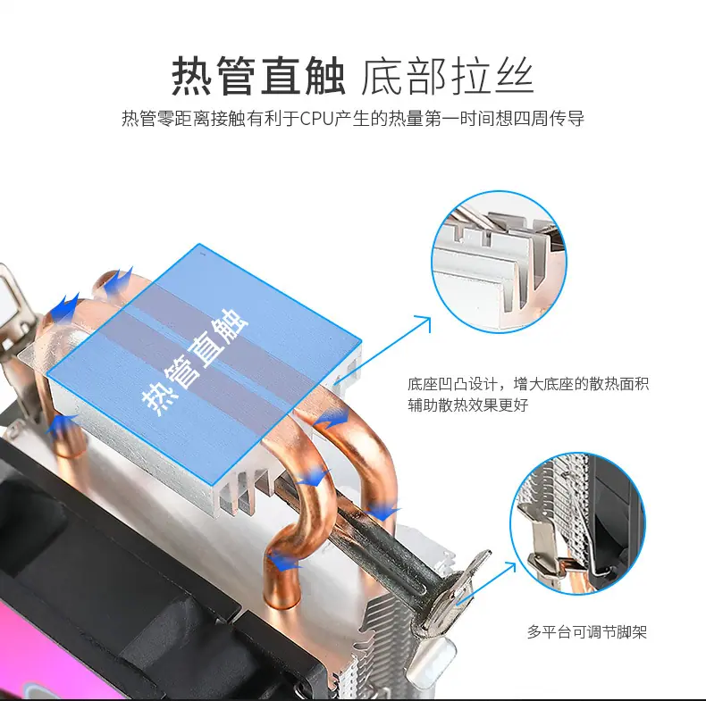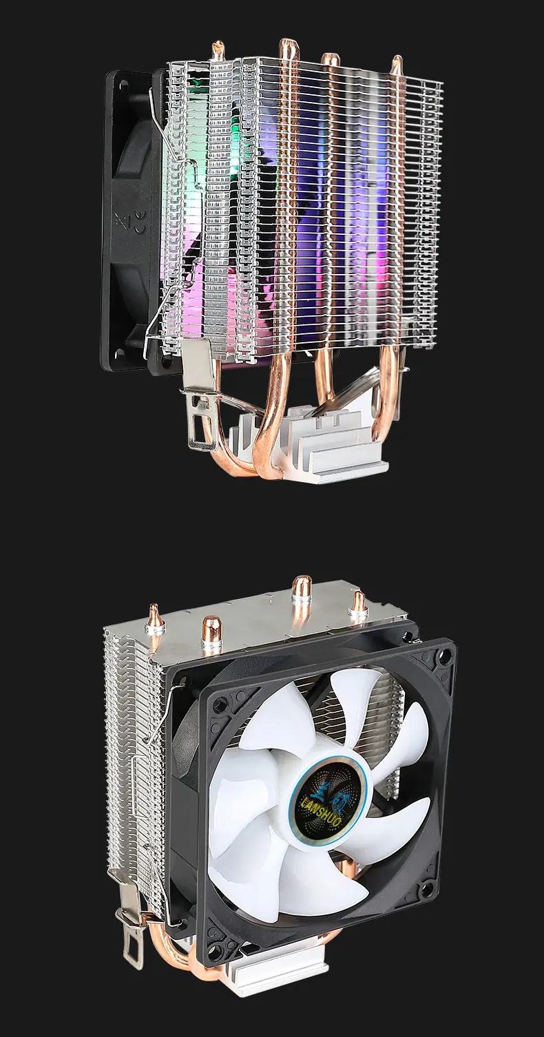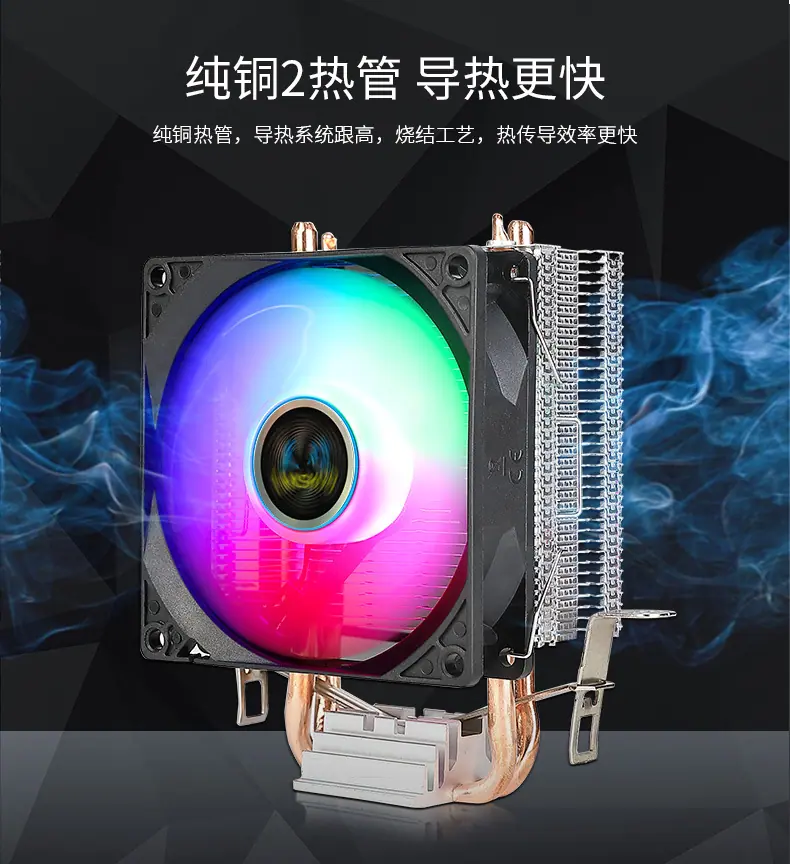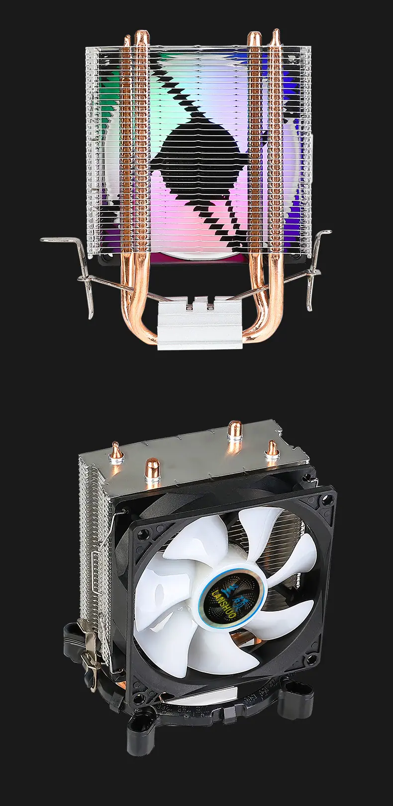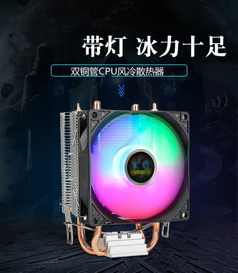 Compra Con lámpara ventilador de 2 tubos de calor ventilador de refrigeración de CPU tubo de cobre doble refrigeración fuerte radiador de host de computadora multiplataforma al por mayor en Joom.pro