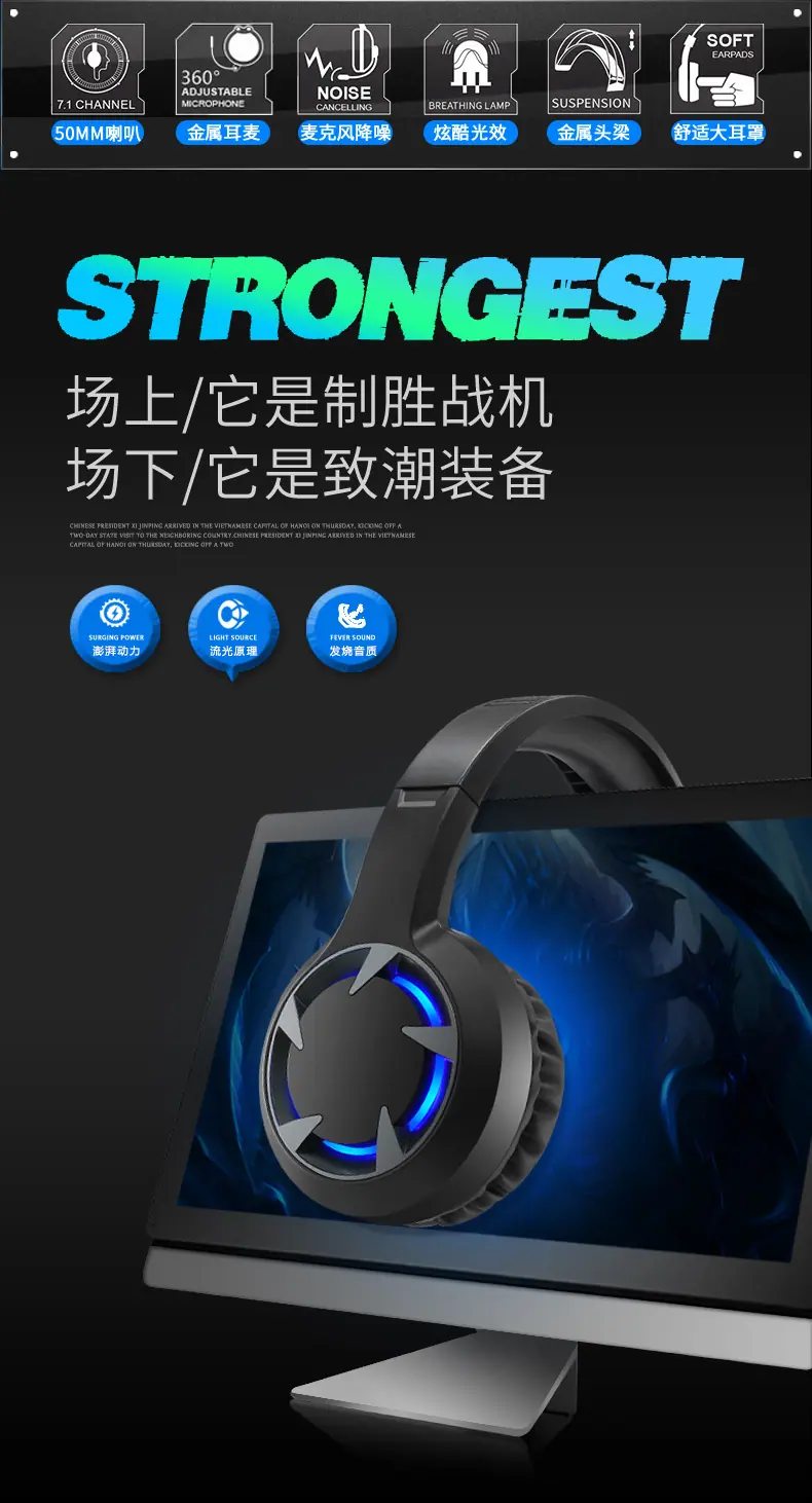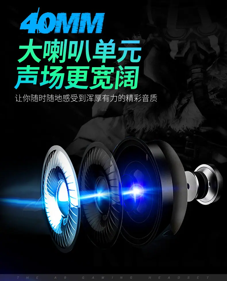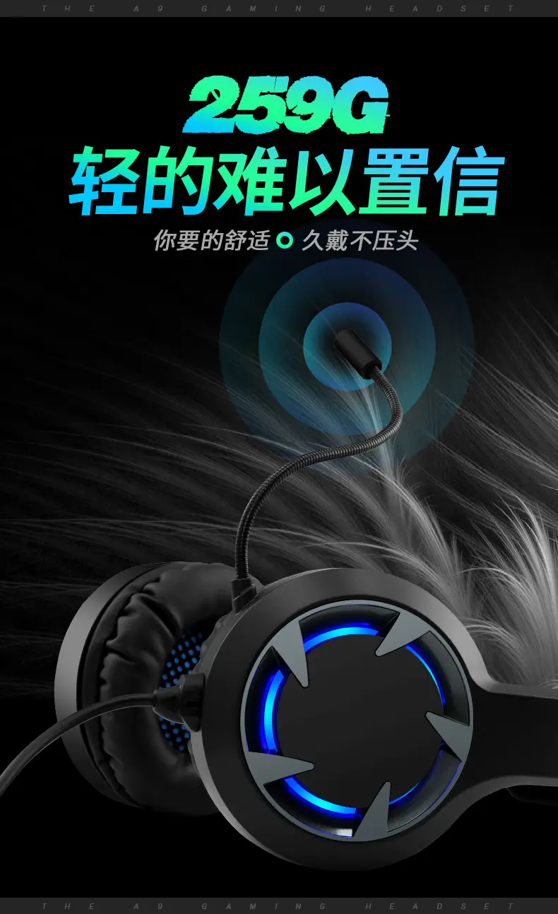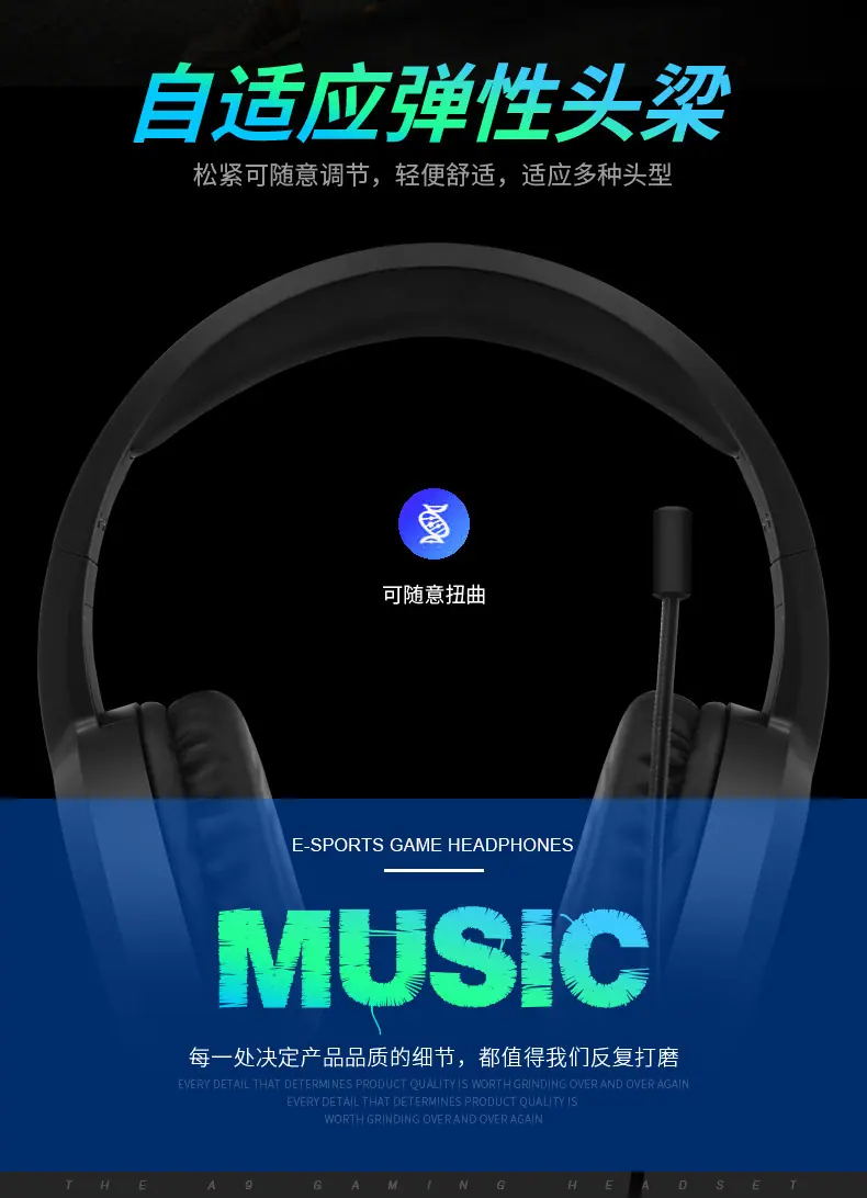 Compra Explosiones transfronterizas detectan computadora de cabeza A9 juego PS4 auriculares e-sports para comer pollo con cable subwoofer luminoso al por mayor en Joom.pro