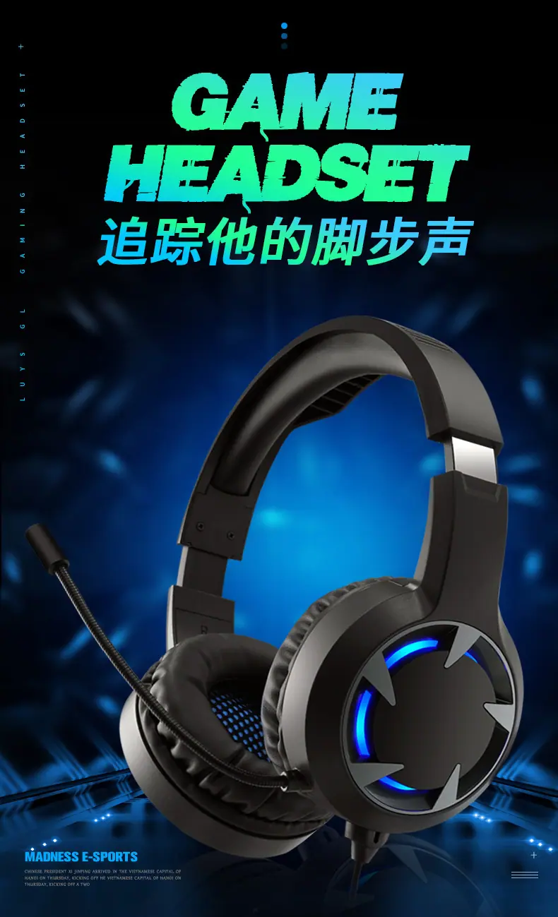 Explosiones transfronterizas detectan computadora de cabeza A9 juego PS4 auriculares e-sports para comer pollo con cable subwoofer luminoso