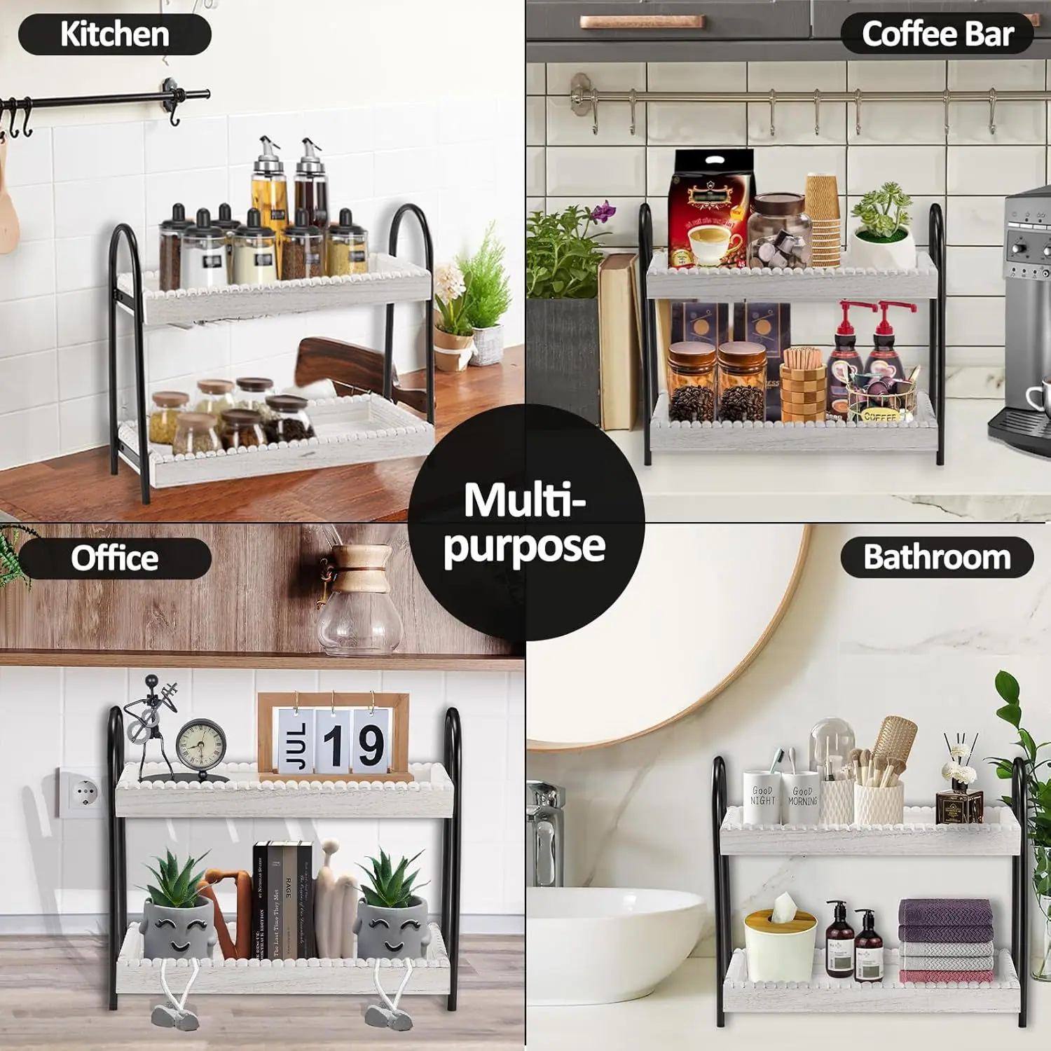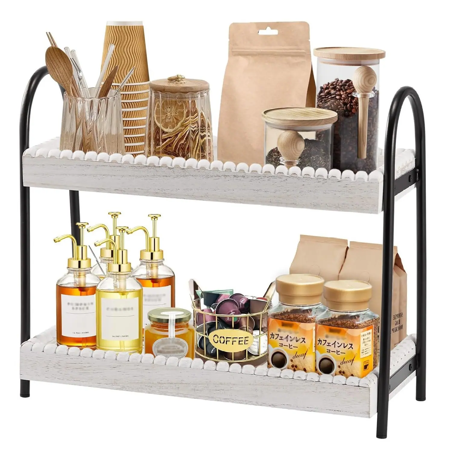 Estante de Almacenamiento de Barra de Café de Madera Estante de Almacenamiento de Condimentos de Cocina Estación de Café de Oficina Estante de Almacenamiento de Encimera