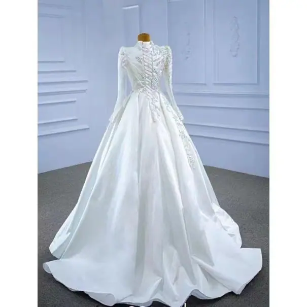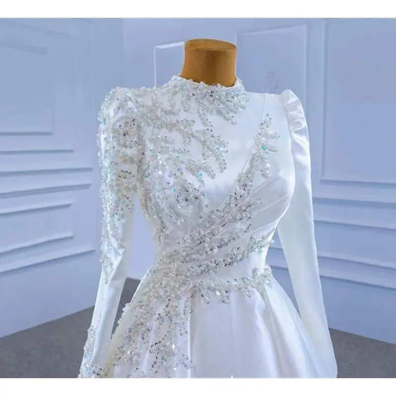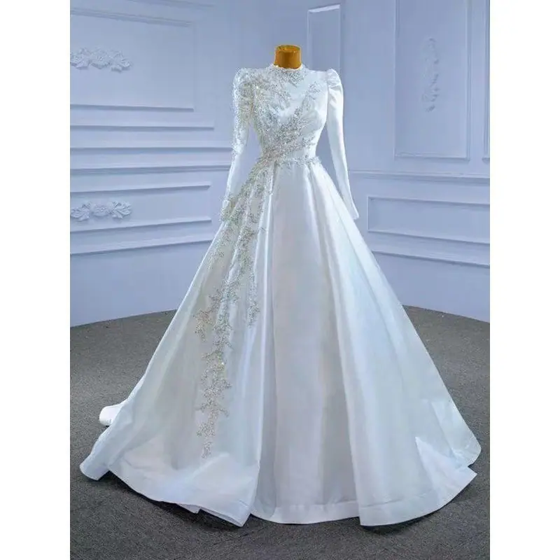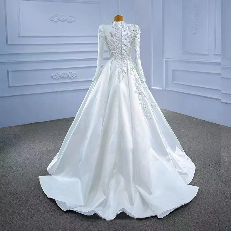 Vestido de Novia Cola Transfronteriza Vestido de Noche 2025 Nuevo Amazon Vestido de Manga Larga Espalda Descubierta Sexy Vestido de Novia