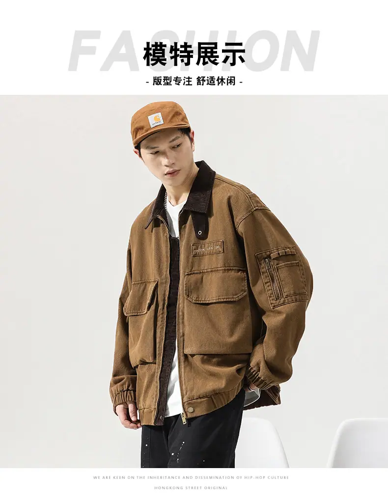 Compra 2024 otoño e invierno nuevo abrigo de mezclilla de algodón puro retro americano para hombre, holgado, talla grande, sobretodo, marca de moda juvenil al por mayor en Joom.pro
