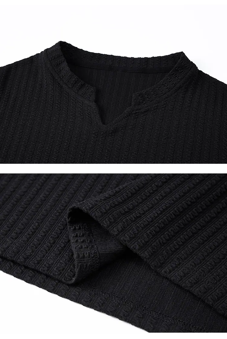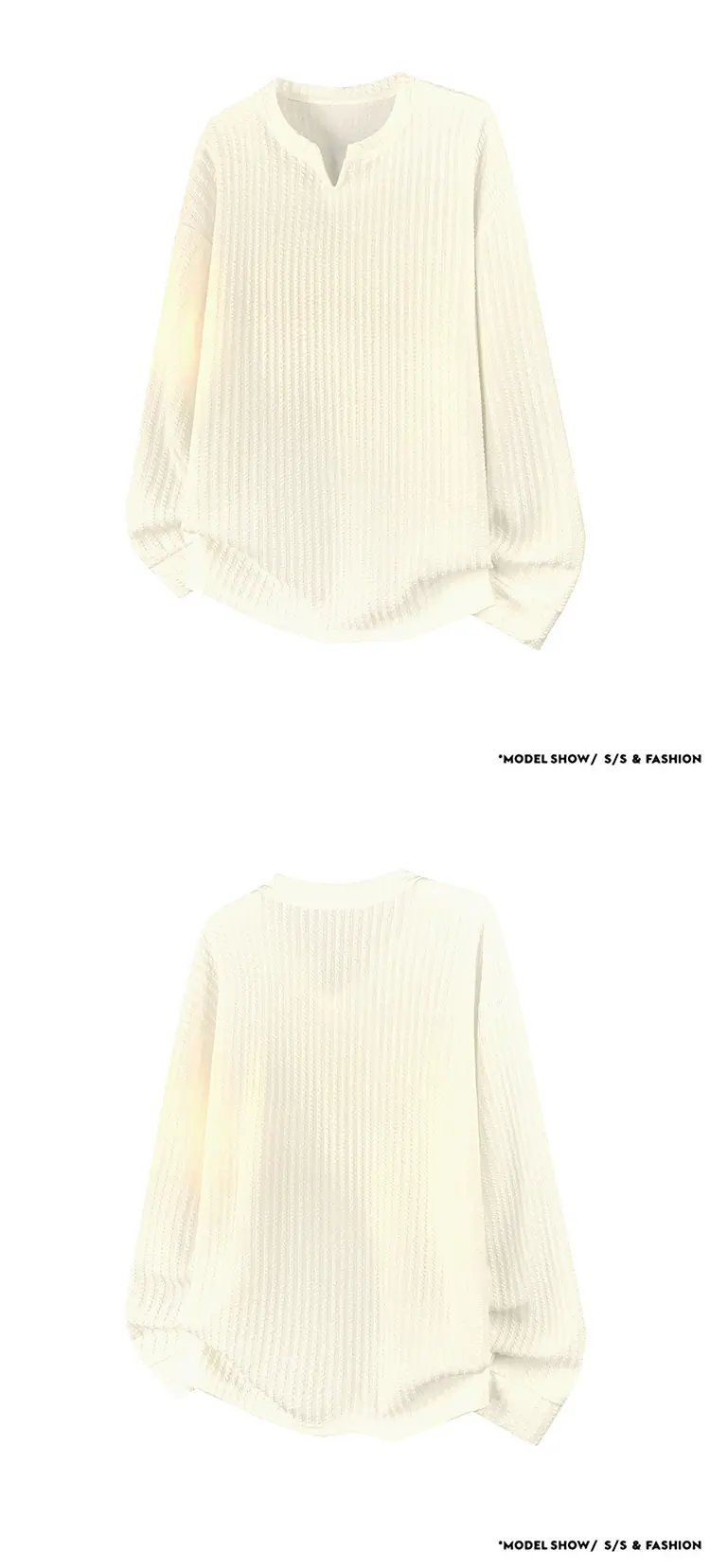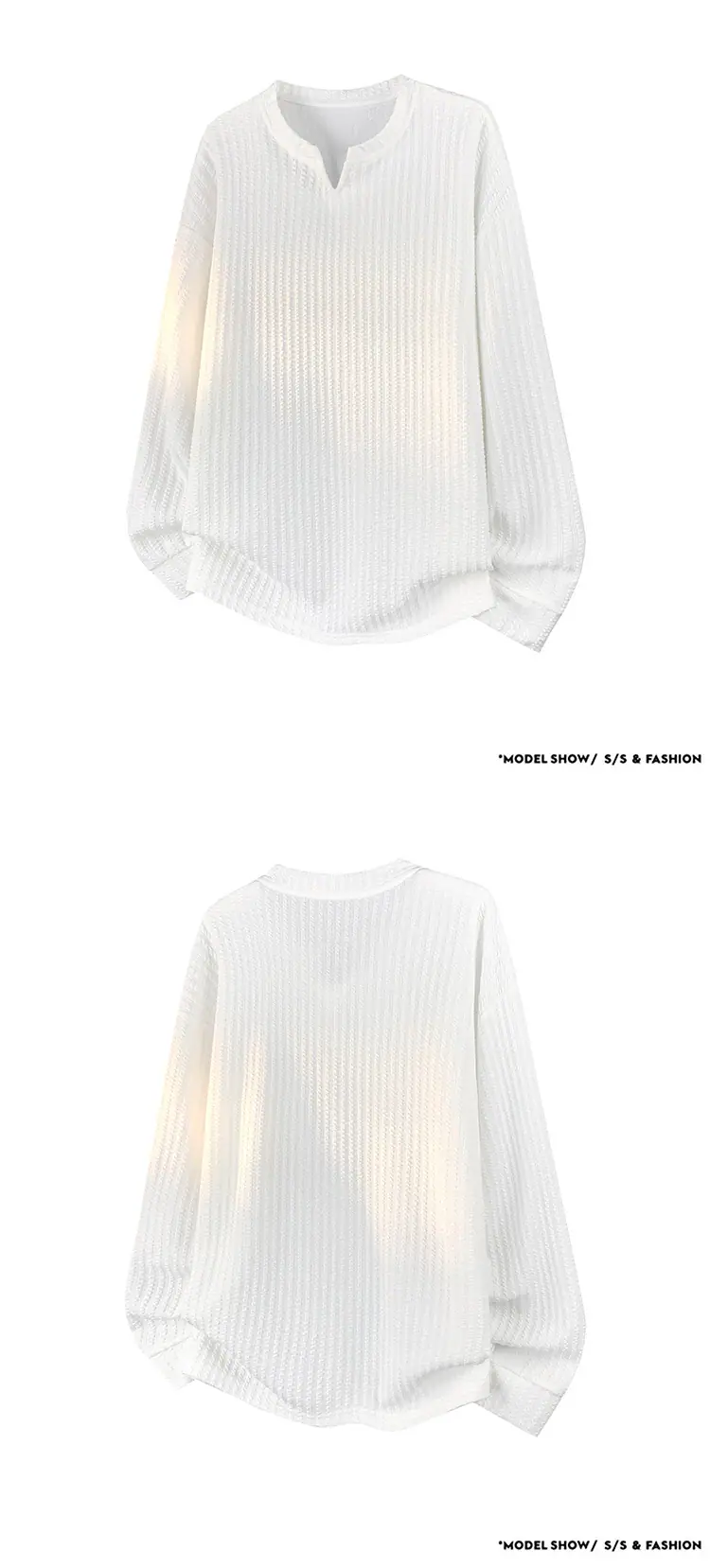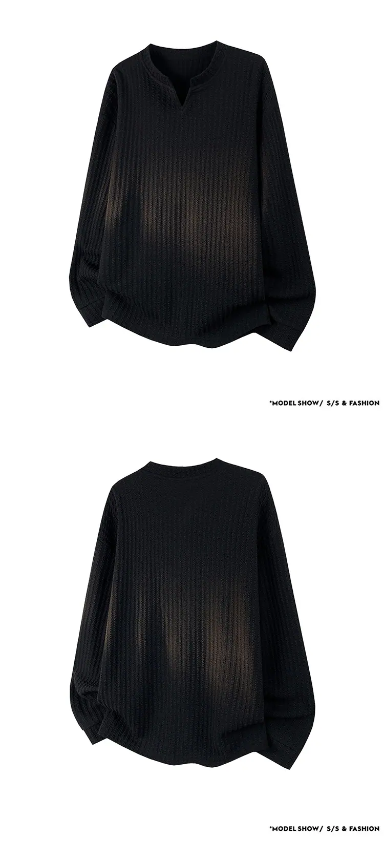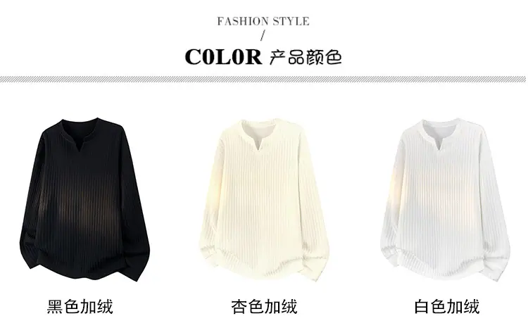Invierno 2025 Nueva Camiseta de Felpa de Manga Larga con Cuello en V Suelta de Color Sólido para Hombre Moda Juvenil Casual Deportiva Capa Base