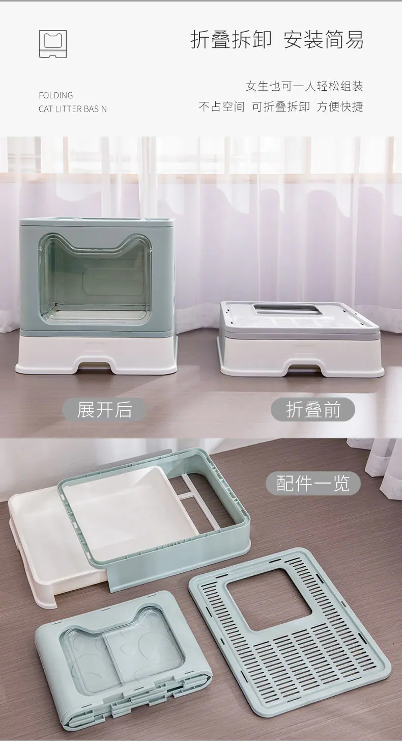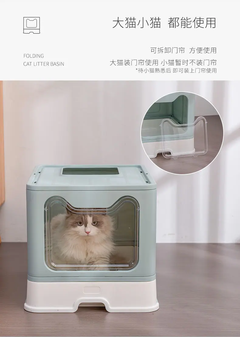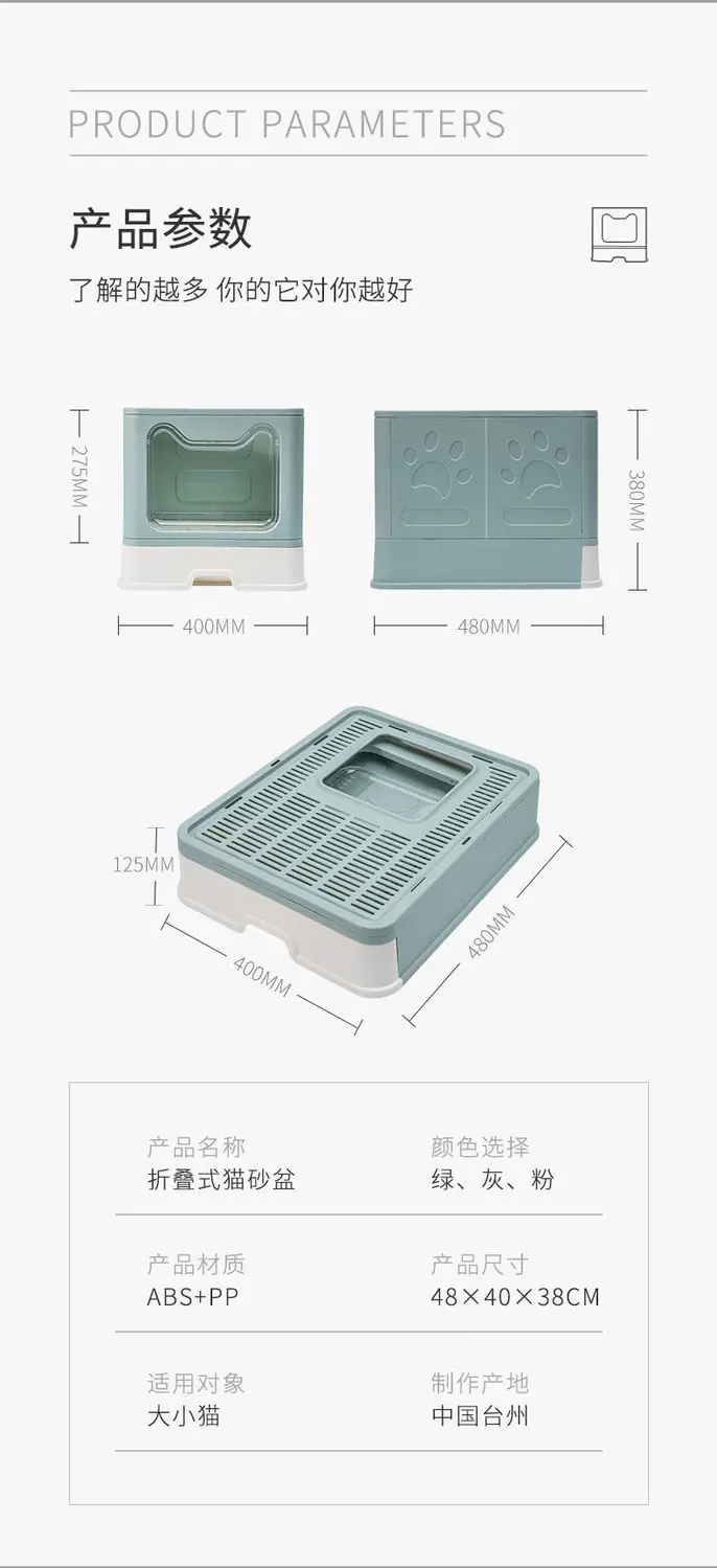 Cat face litter box: Gray, Cat face litter box: Green, Cat face litter box: Pink, Collapsible litter box: Gray...
