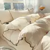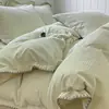 Juego de cama de cuatro piezas de algodón lavado de clase A de alta gama 100% algodón puro sábana funda de edredón ropa de cama de tres piezas