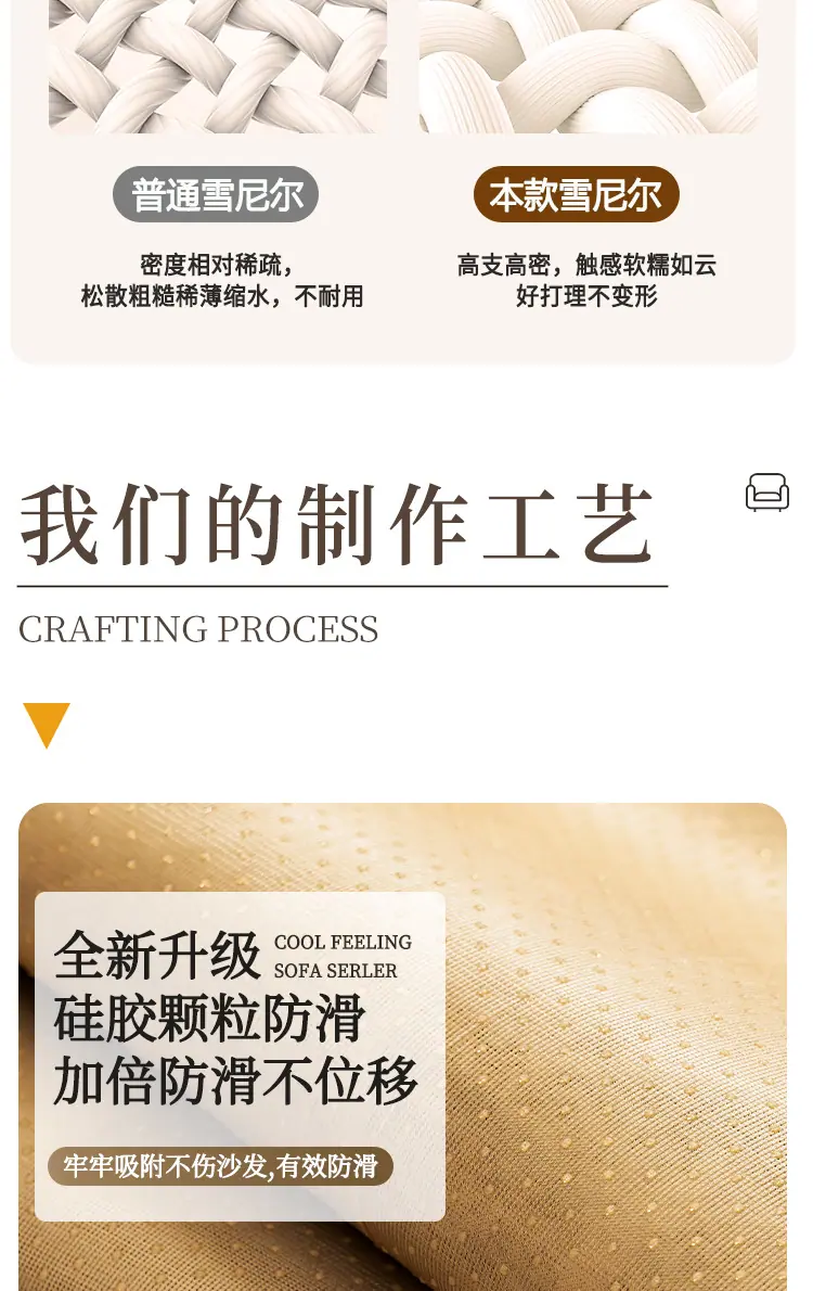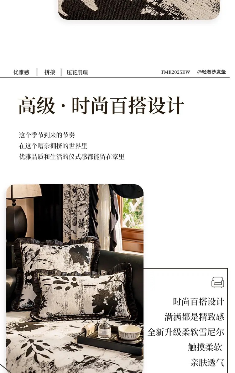 Nuevo Cojín de Sofá de Cuero Moderno Lujo Ligero 2025 Nuevo de Una Pieza Fila Recta Antideslizante Funda de Sofá de Chenilla Tela Cojín de Asiento