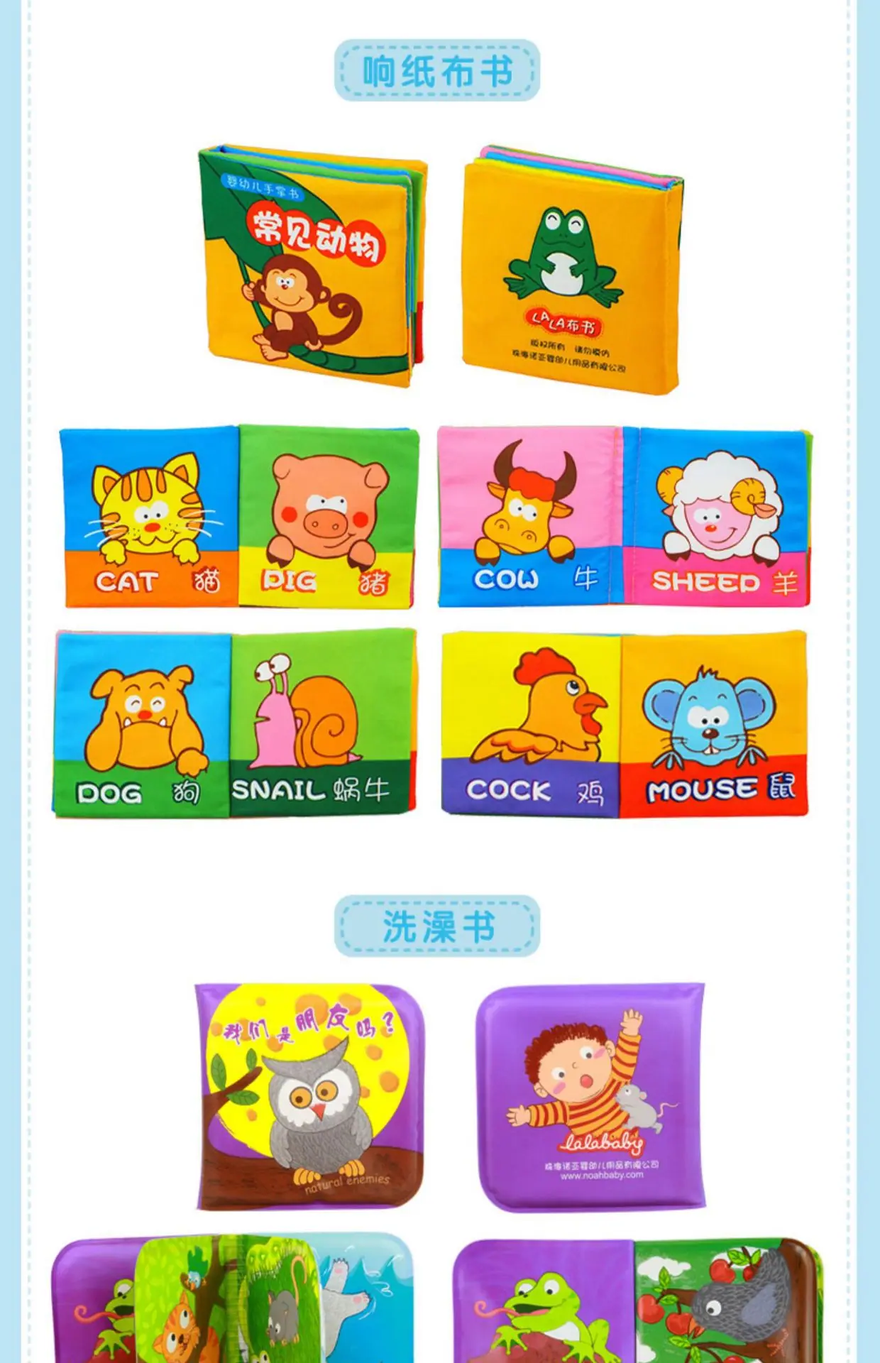 Runben Libro de Tela Educativo para Bebé Ilustración Libro de Baño Iluminación a Prueba de Desgarros Papel Crujiente 0-2 Años Educación Temprana Masticable Libro de Tela para Niños