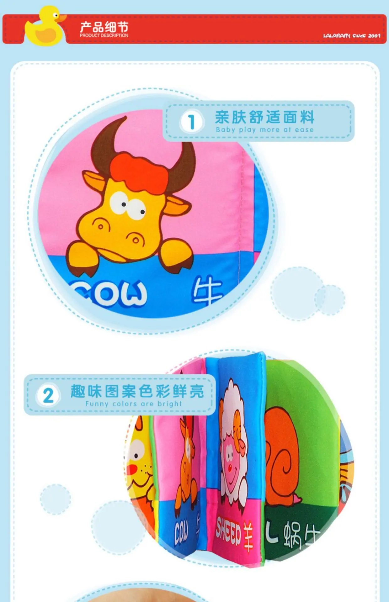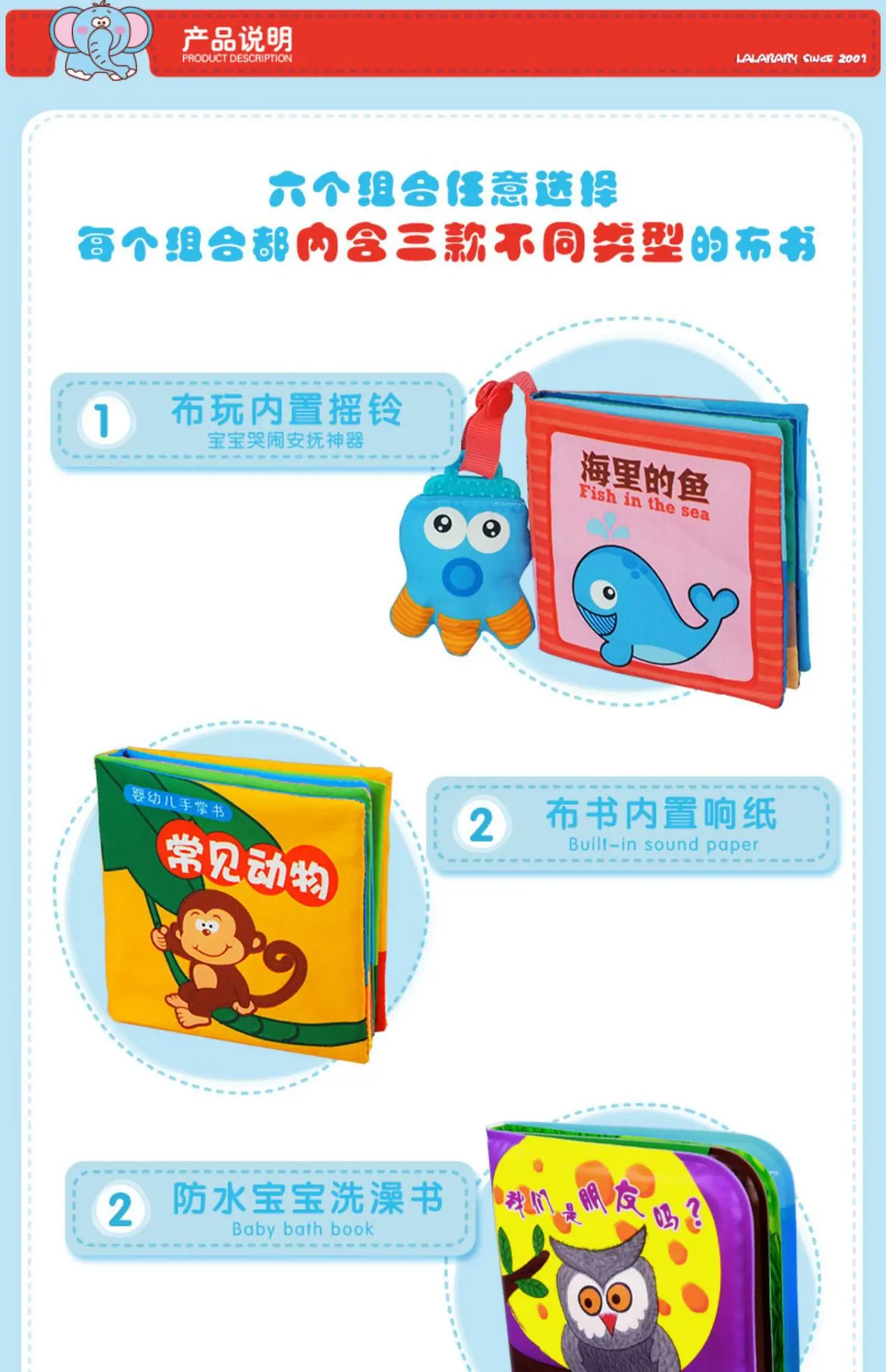 Runben Libro de Tela Educativo para Bebé Ilustración Libro de Baño Iluminación a Prueba de Desgarros Papel Crujiente 0-2 Años Educación Temprana Mordisqueable Libro de Tela para Niños