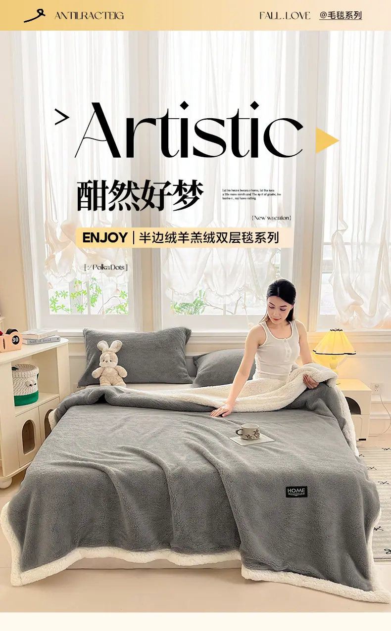 Compra Manta de terciopelo de leche engrosada cálida para siesta en la oficina chal de forro polar de coral de cordero cubierta de sofá manta para cama al por mayor en Joom.pro