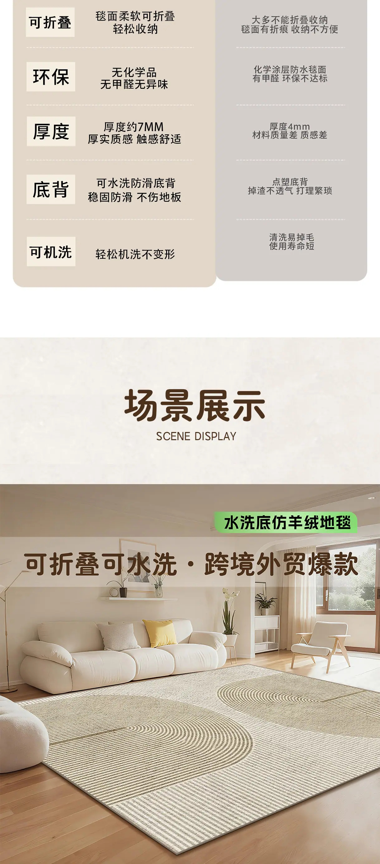 Alfombra lavable plegable transfronteriza con fondo antideslizante para sala de estar, resistente a las manchas, fácil de cuidar, manta para sofá, mesa de centro, tapete de noche para dormitorio