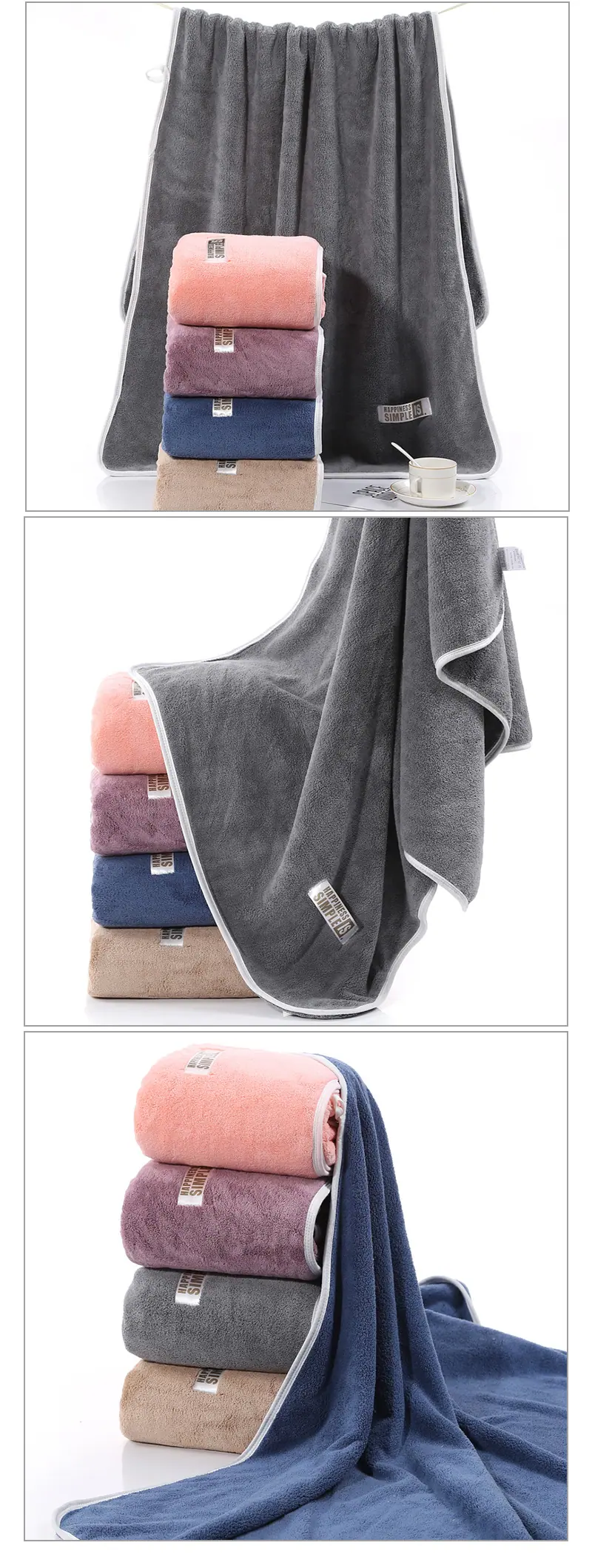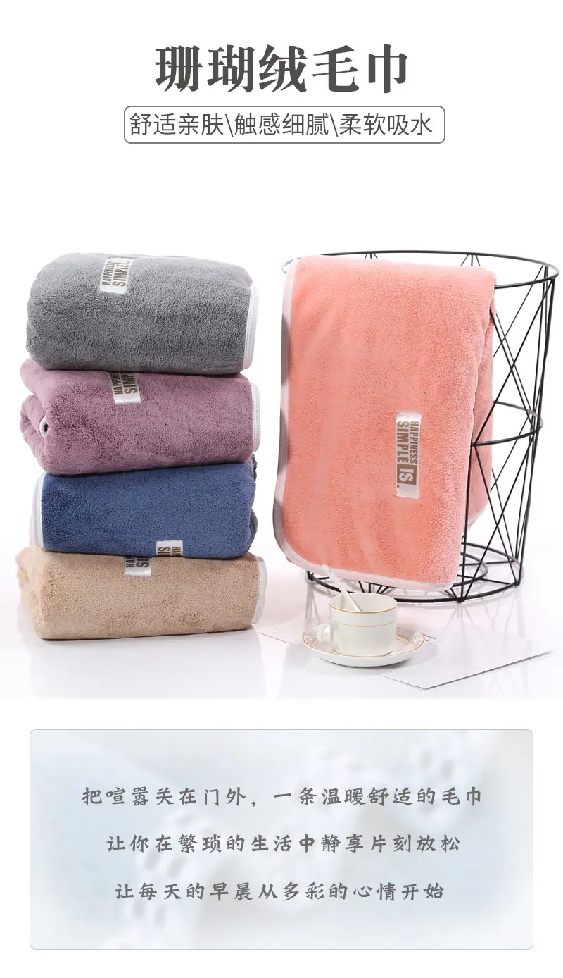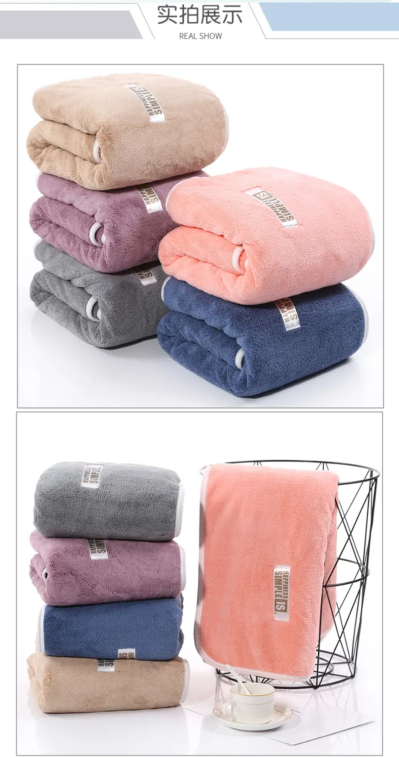 Compra Toalla de baño gruesa de vellón coral de 480 g, envolvente, para adulto, suave, absorbente, que no suelta pelusa, toalla grande al por mayor en Joom.pro