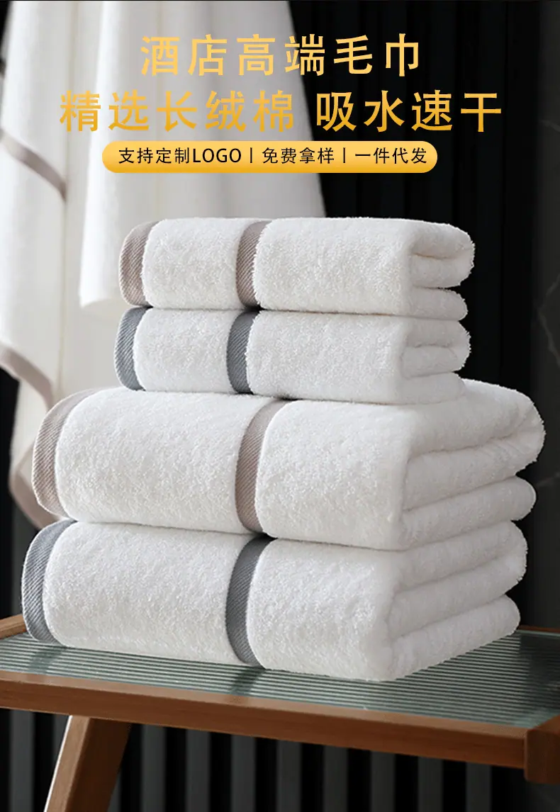 Venta al por mayor de fábrica Toalla blanca de hotel de algodón puro Todo algodón Espesor Absorbente B&B Paño de baño Lavado Logotipo personalizado