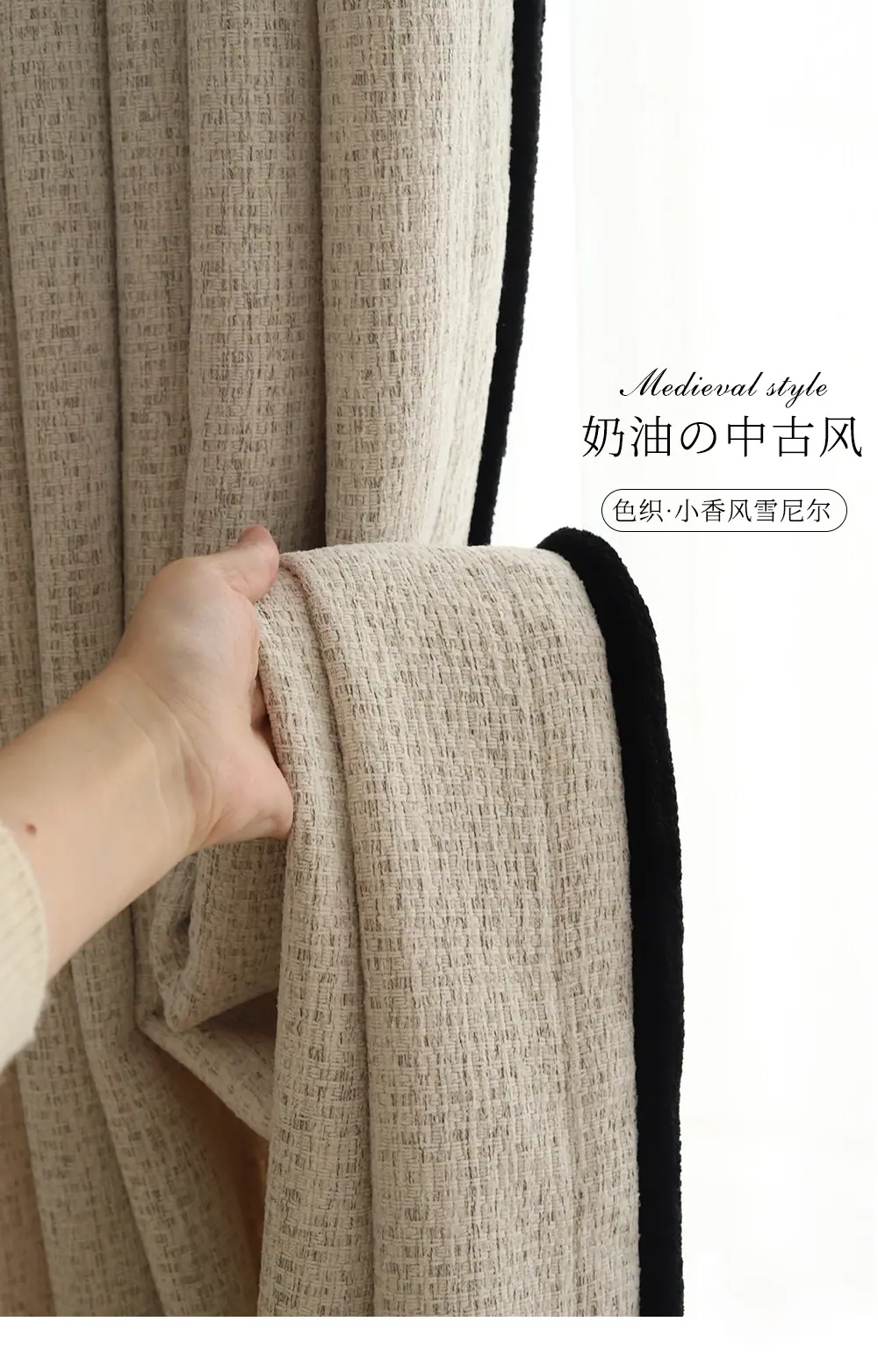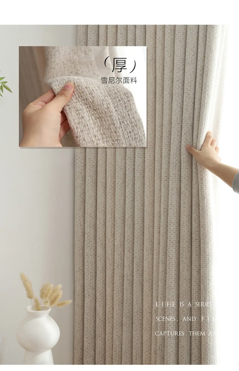 Cortinas Blackout Jacquard Chenille Crema Estilo de Alta Gama Balcón Dormitorio Sala de Estar Shaoxing Keqiao Tela para Cortinas Francesas