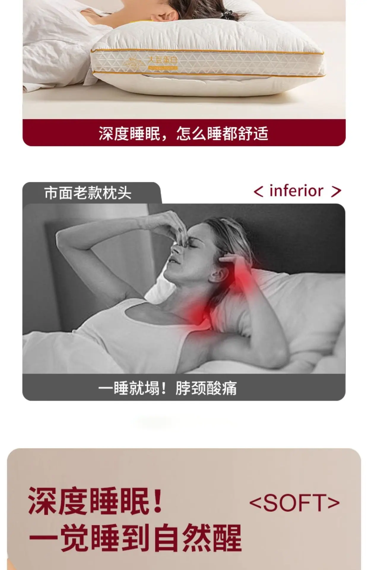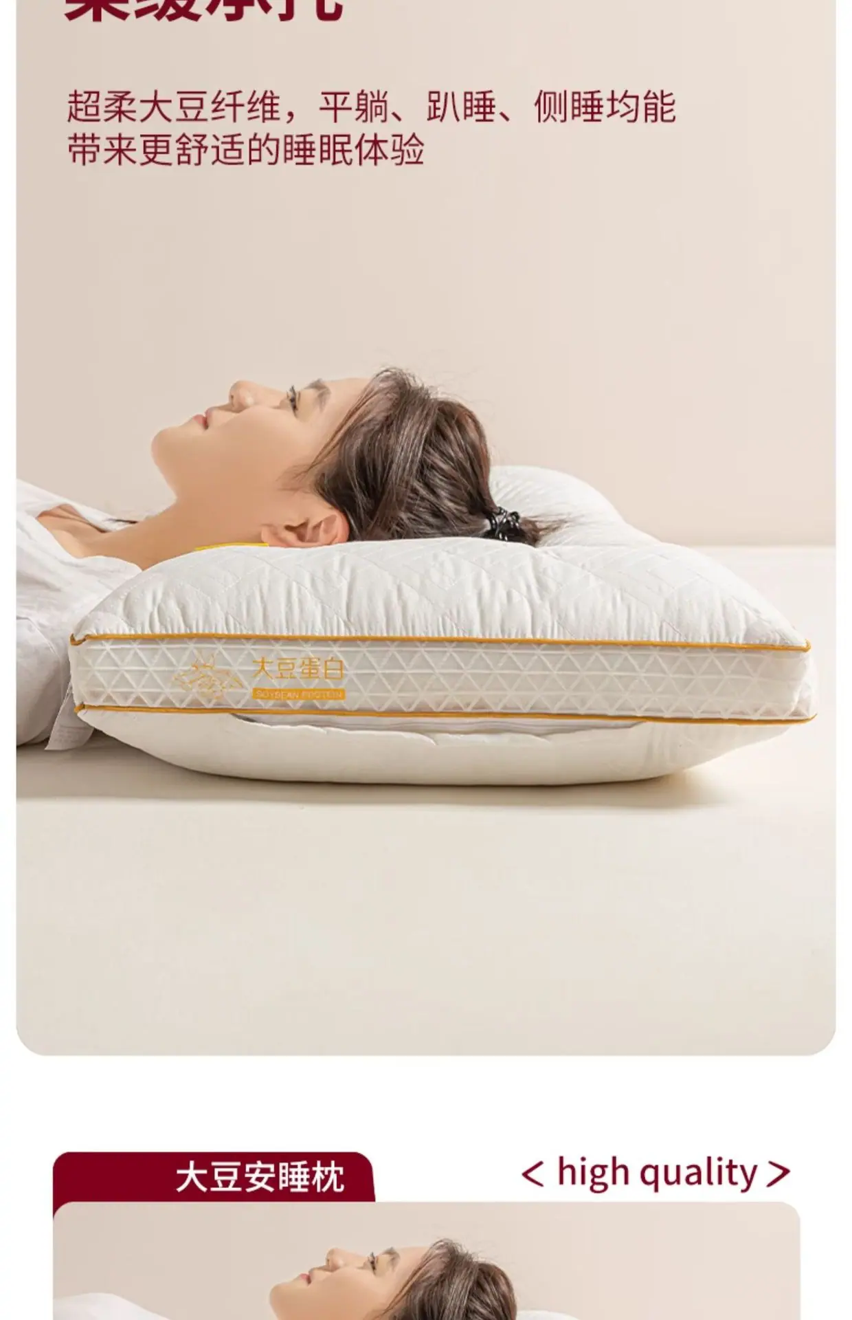 Class A Sleep Aid - Soybean Protein Single-Sided Low Pillow [Single Piece], Class A Sleep Aid - Soybean Protei...
