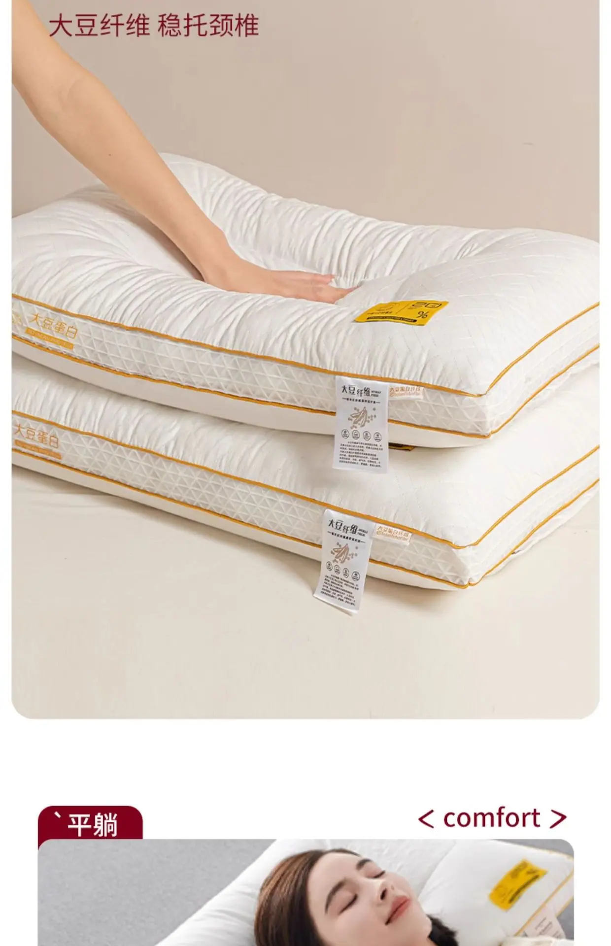 Almohada de Fibra de Soya Soporte para el Cuello Ayuda Adulto Almohada para Dormir Núcleo Par Estudiante Residencia Universitaria Núcleo de Almohada Hogar Cabeza Entera Hombre
