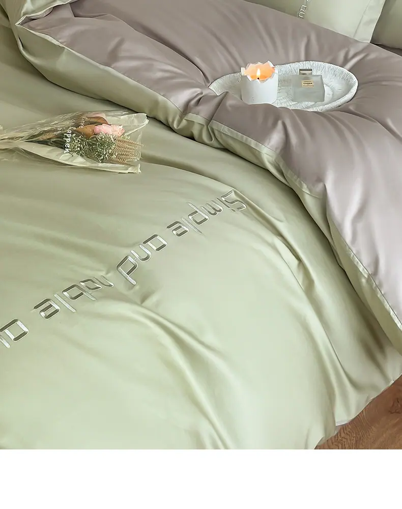 Set de cuatro piezas de algodón puro de algodón de fibra larga 2025 nuevo dormitorio sensación sábana funda nórdica juego de tres piezas