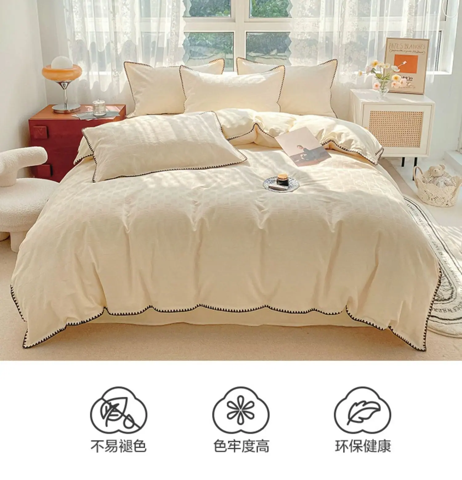 Juego de cama de cuatro piezas de algodón lavado de clase A de alta gama 100% algodón puro sábanas funda de edredón ropa de cama de tres piezas