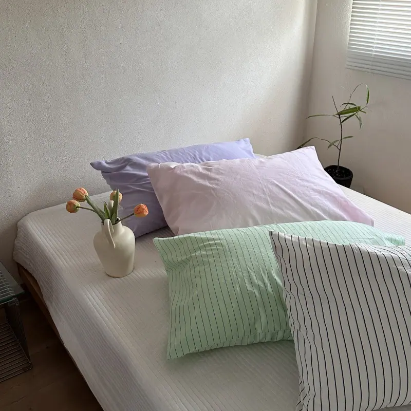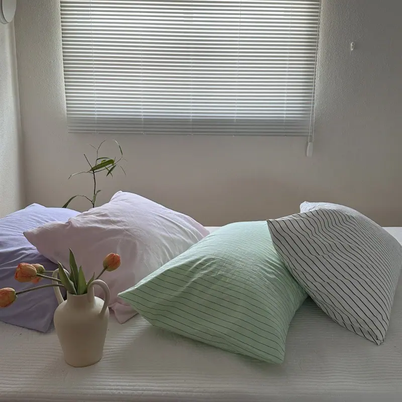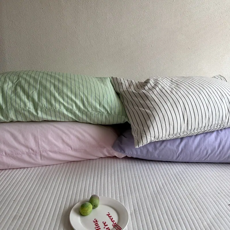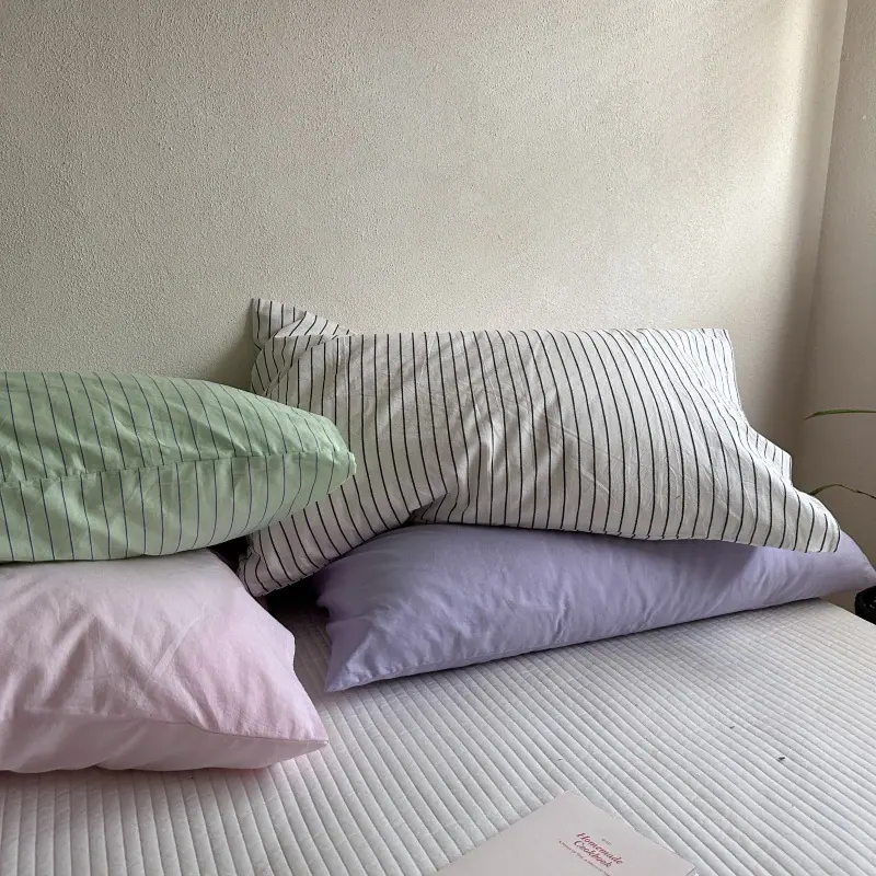 Compra Funda de Almohada de una Pieza a Rayas de Color Sólido, Funda de Almohada 100% Algodón, Cubierta de Inserción de Almohada Estilo Sobre 48*74 Juego de una Pieza al por mayor en Joom.pro