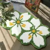 Alfombra de Sala de Estar con Flocado y Borlas de Flores Verdes y Blancas, Manta para Mesita de Noche de Dormitorio, Felpudo Absorbente para Baño, Felpudo para Puerta de Entrada