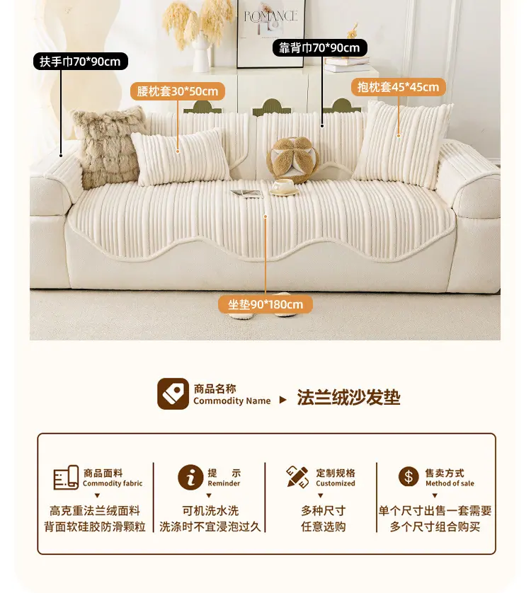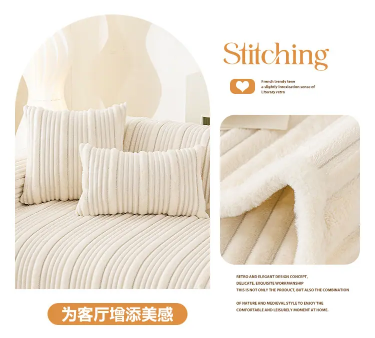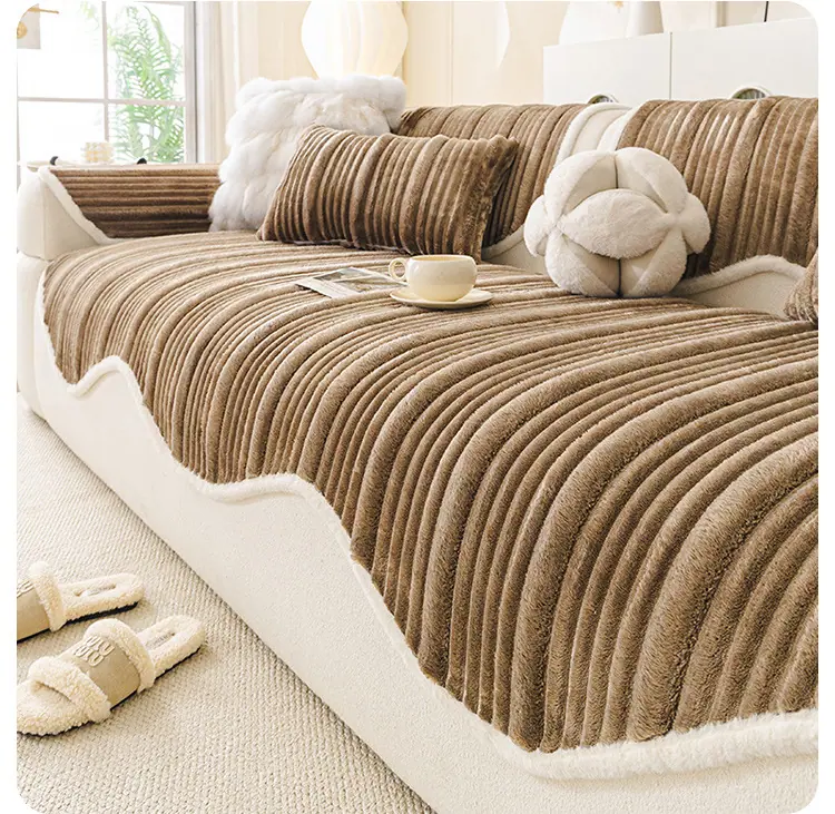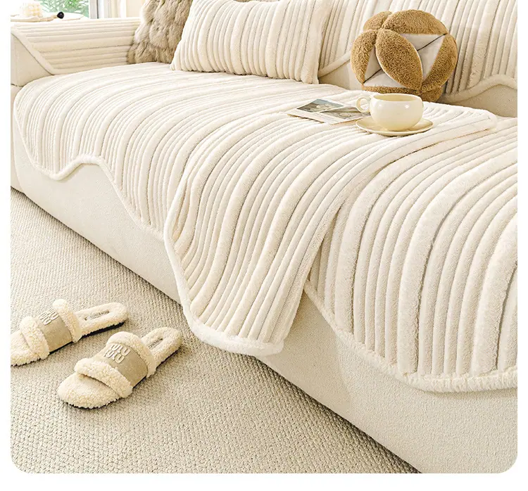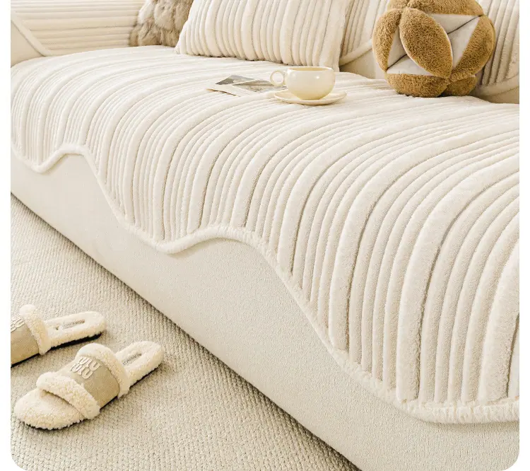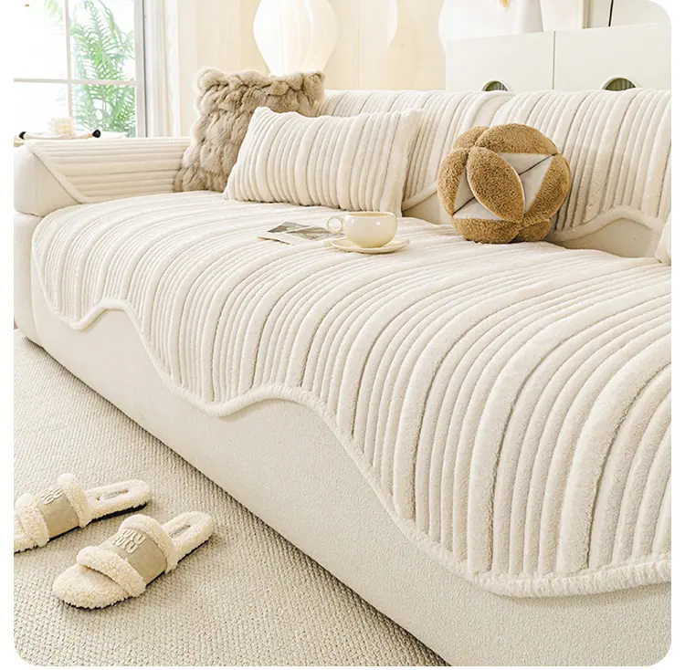Cojín de Sofá de Felpa Estilo Crema Invierno Engrosado 2025 Nuevo Fijo Antideslizante Cojín de Asiento de Una Pieza Cubierta de Tela