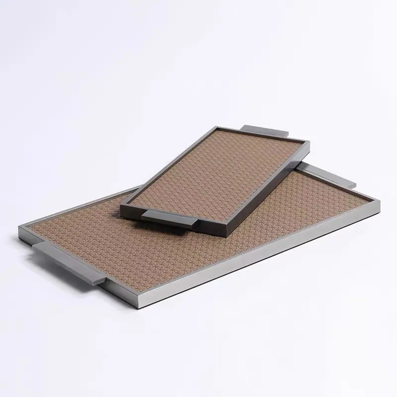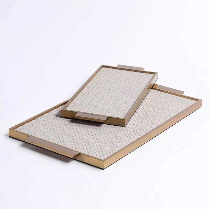 Casual Moderno Elegante Metal Cuero Geométrico Bandeja Modelo Habitación Oficina de Ventas Decoración Adornos Sala de Estar Mesa de Centro Almacenamiento