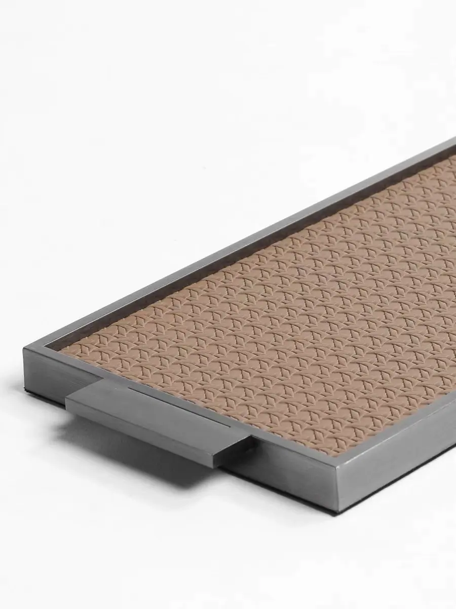 Compra Casual Moderno Elegante Metal Cuero Geométrico Bandeja Modelo Habitación Oficina de Ventas Decoración Adornos Sala de Estar Mesa de Centro Almacenamiento al por mayor en Joom.pro