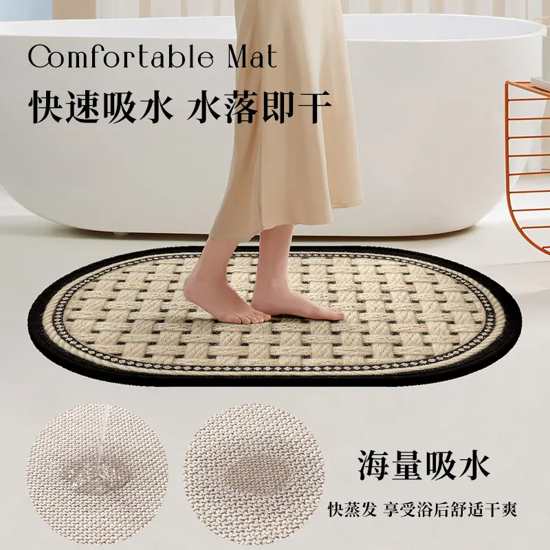 Alfombra de baño retro de punto de lana de imitación, tapete absorbente para inodoro, felpudo antideslizante para entrada de inodoro, alfombra de secado rápido