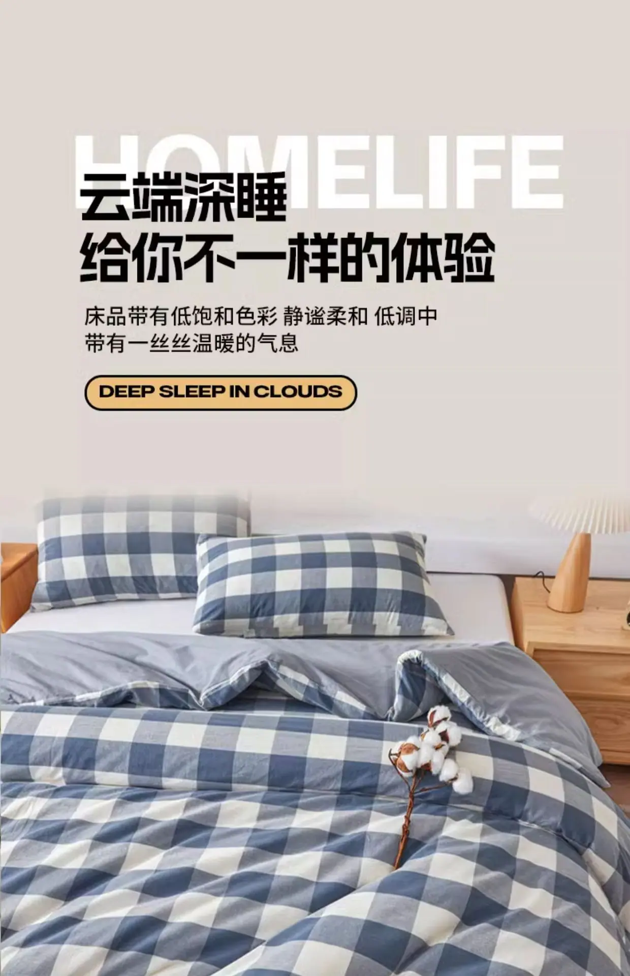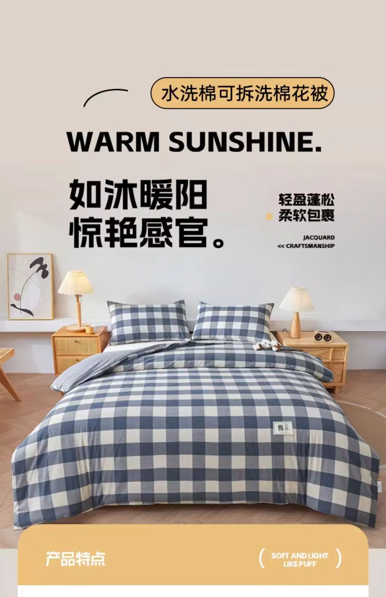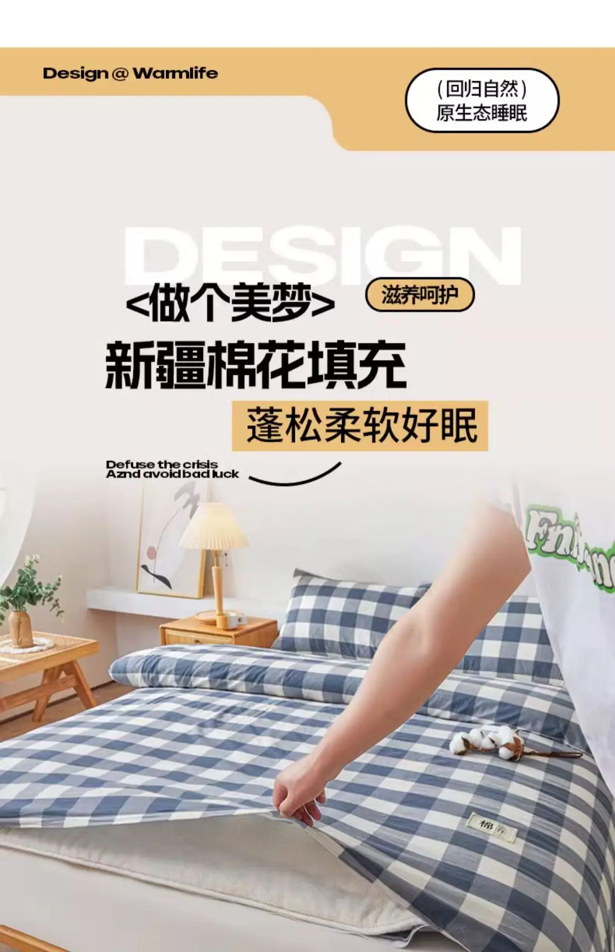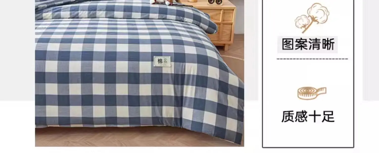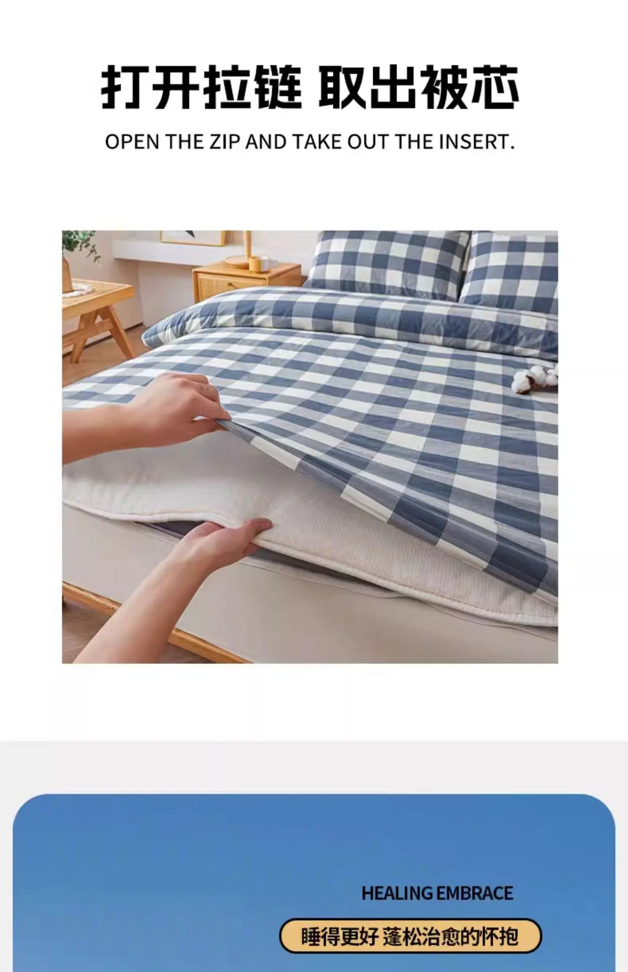 Blue Coffee Large Check【Removable and Washable Duvet Cover+Xinjiang Cotton Duvet Insert】, Upgrade Mother and B...