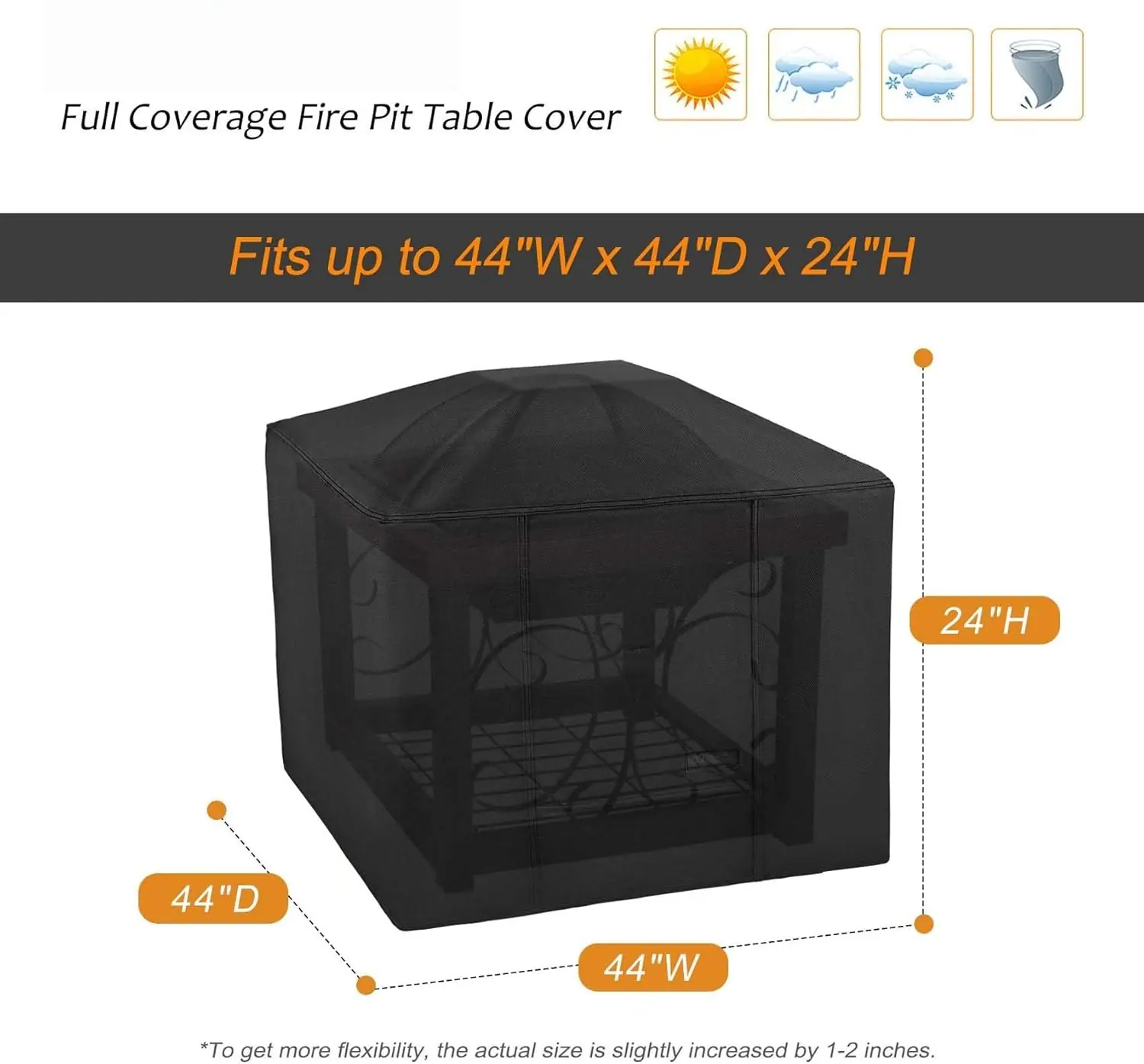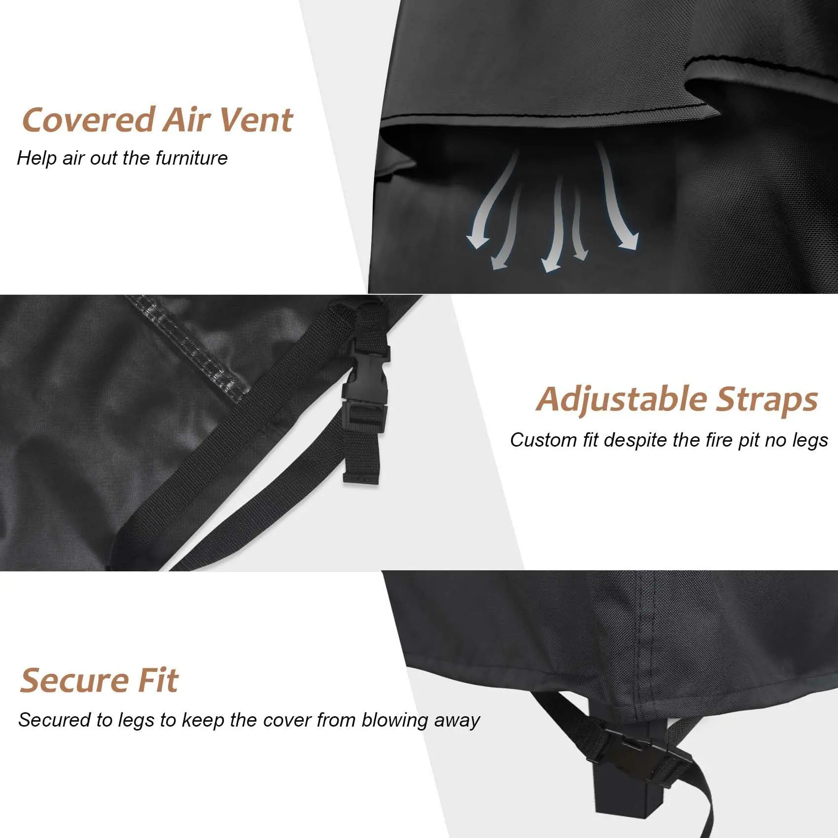 Ajuste Seguro: La parte inferior tiene dos correas ajustables y hebillas, ya sea que el pozo de fuego tenga patas o no, puede ajustar y apretar en la parte inferior para que quede ceñido y evitar que lo lleve el viento fuerte.